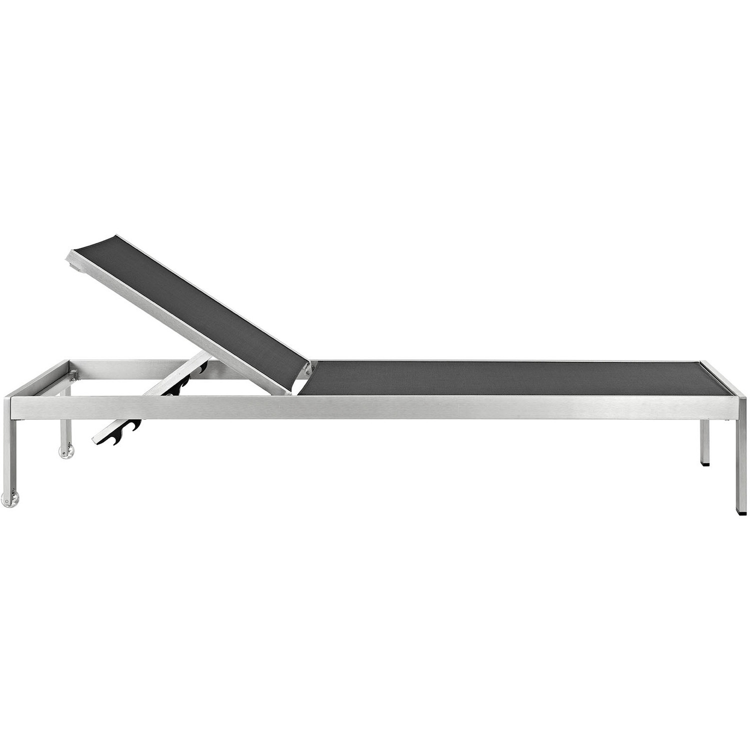 Maintain clean lines with the Shore Outdoor Patio Sun Lounger in Mesh. Strong and durable, relax in the Shore Outdoor Chaise Lounge as you choose from four available recline positions or sunbathe while lying flush. Made with an anodized brushed aluminum frame and tone-on-tone grays, Shore Patio Lounge Chair is a breeze to assemble, comes with clear wheels for easy mobility on the top end, and non-marking black plastic foot caps under the bottom two support legs. Chic and minimalist, the Shore Outdoor Sun Lounger in Mesh is a piece built to last with the comfort and versatility you’ve been looking for in an outdoor lounger.Recliner / Height Adjustable
