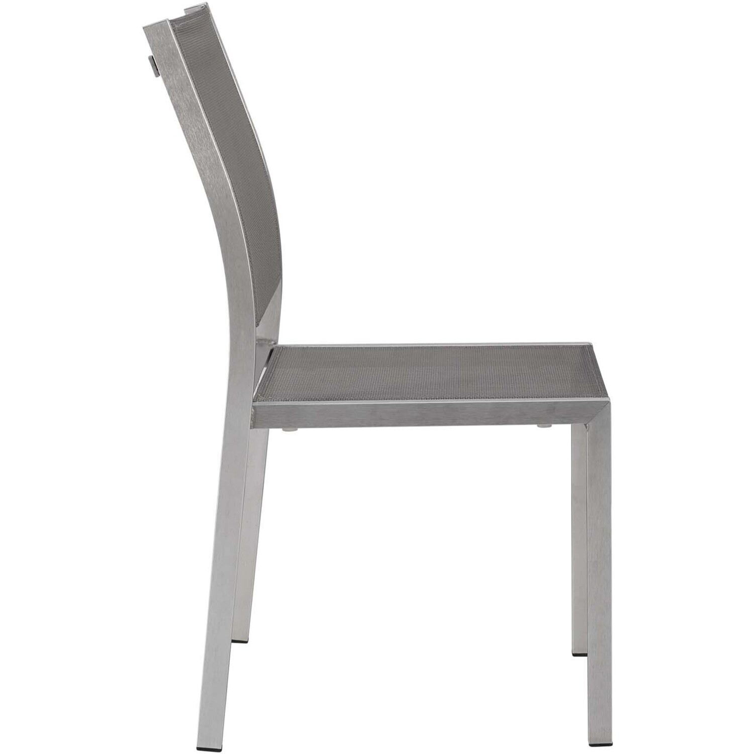 Enjoy your patio or backyard leisure time with the strong and durable Shore Outdoor Patio Dining Side Chair in Mesh. Made with an anodized brushed aluminum frame and breathable Textilene® mesh, Shore Patio Accent Chair is a breeze to assemble and comes with non-marking black plastic foot caps under the legs. Chic and minimalist, the Shore Outdoor Dining Chair complements your casual gatherings with a look and functionality that you can rely on.Modern Outdoor Dining Side Chair