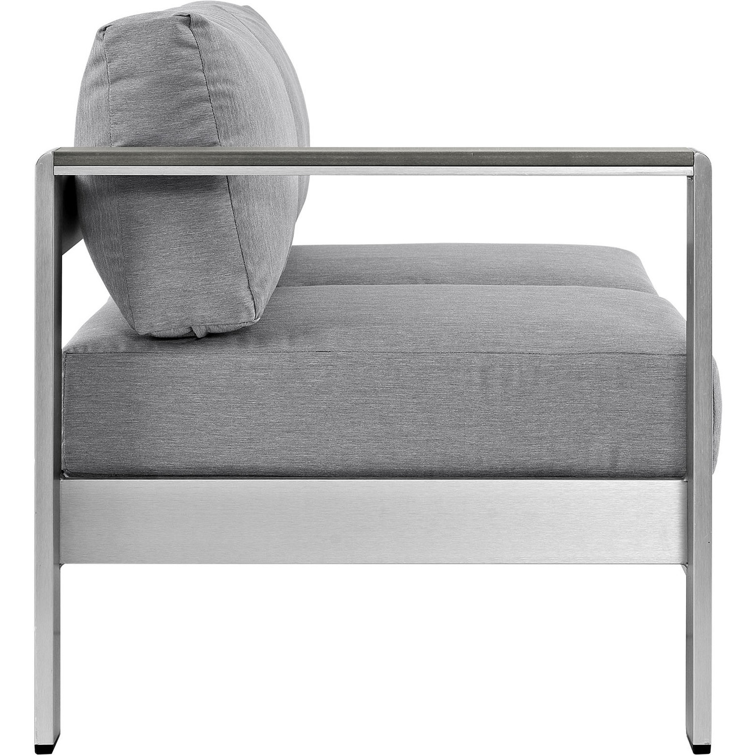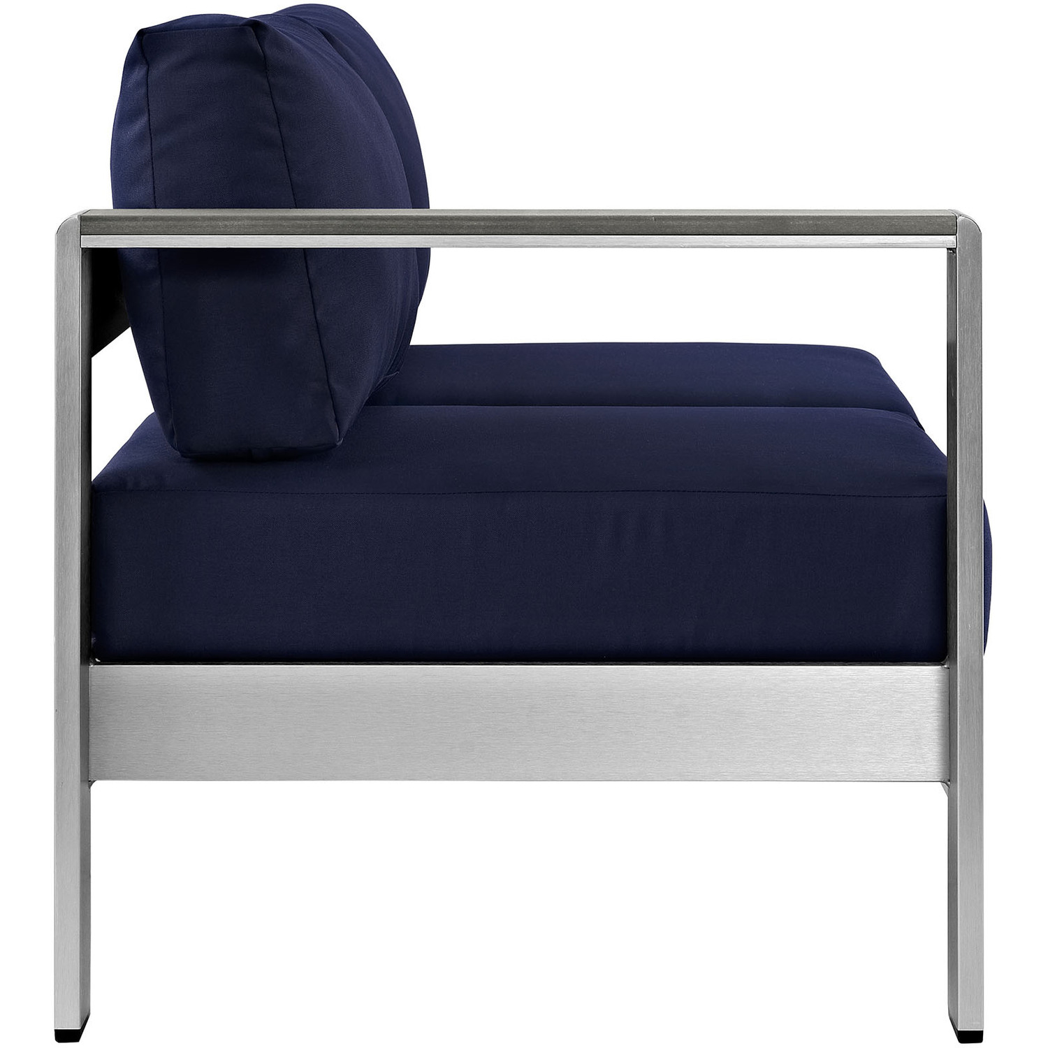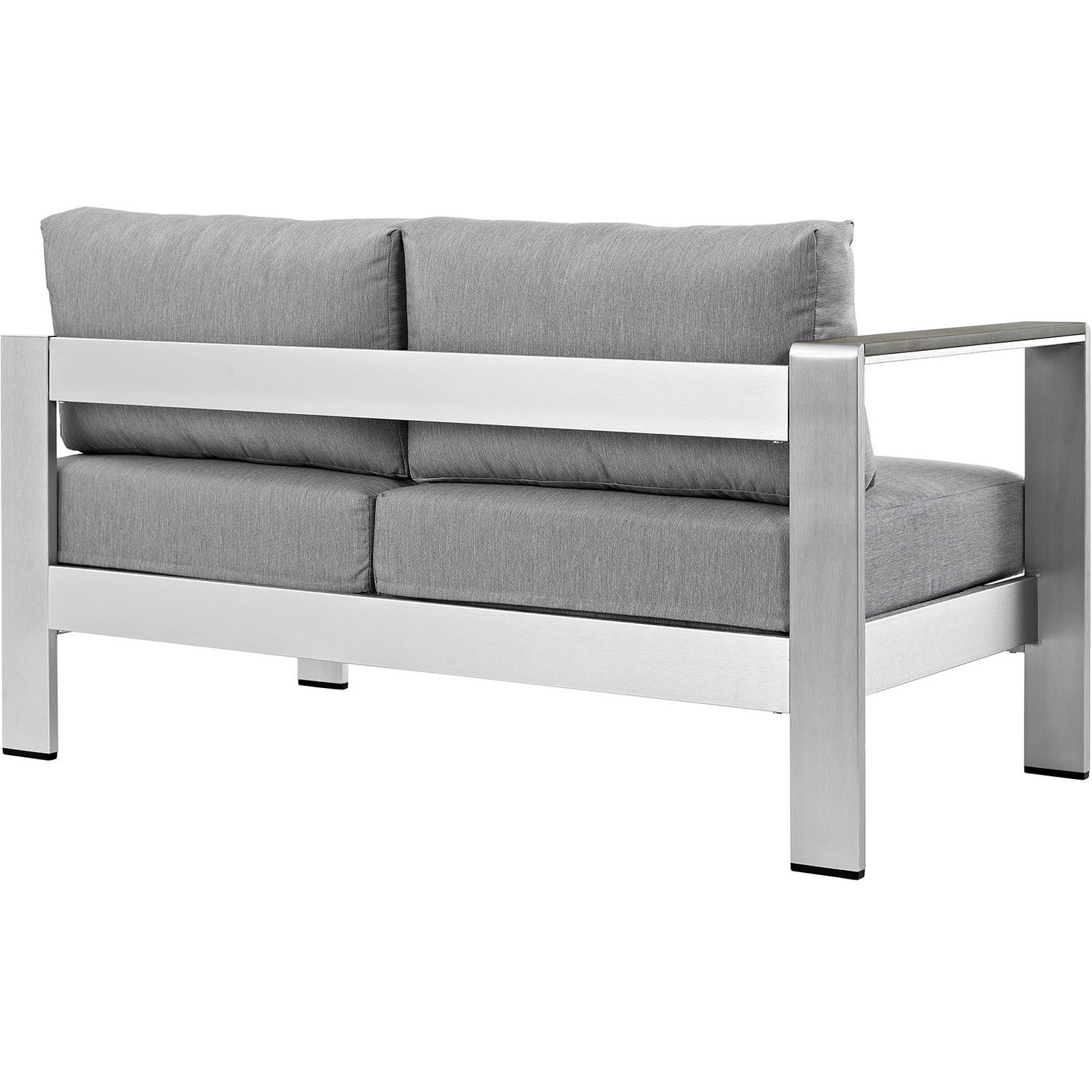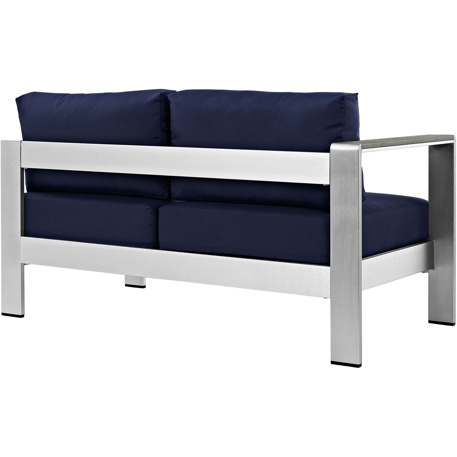 Enjoy your patio or backyard leisure time with the strong and durable Shore Outdoor Patio Left Arm Loveseat. Made with an anodized brushed aluminum frame and non-marking black plastic foot caps, Shore Outdoor Patio Loveseat comes outfitted with resilient fabric canvas tested to last through all weather conditions. The Shore Outdoor Patio Left Arm Loveseat complements your casual gatherings with a look and functionality you can rely on.Modern Outdoor Left-Arm Loveseat