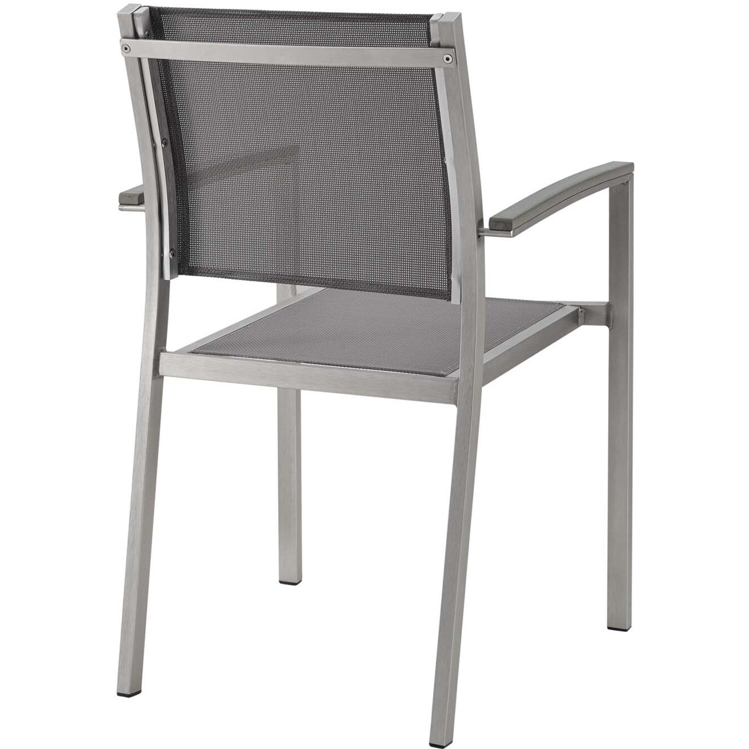 Enjoy your patio or backyard leisure time with the strong and durable Shore Outdoor Patio Dining Arm Chair in Mesh. Made with an anodized brushed aluminum frame and breathable Textilene® mesh, Shore Patio Dining Chair is a breeze to assemble and comes with non-marking black plastic foot caps under the legs. Chic and minimalist, the Shore Outdoor Dining Arm Chair complements your casual gatherings with a look and functionality you can rely on.Breathable Textilene® Mesh