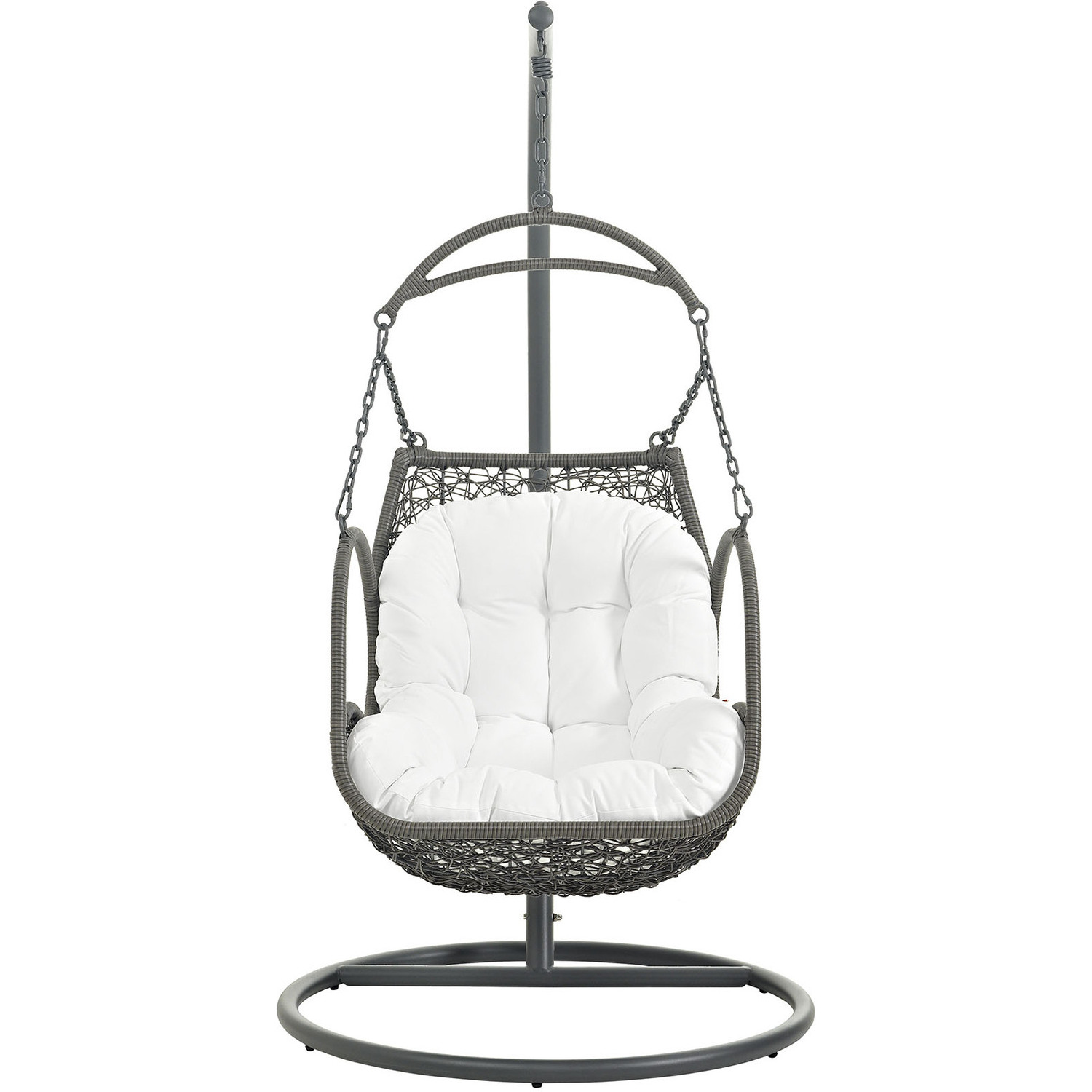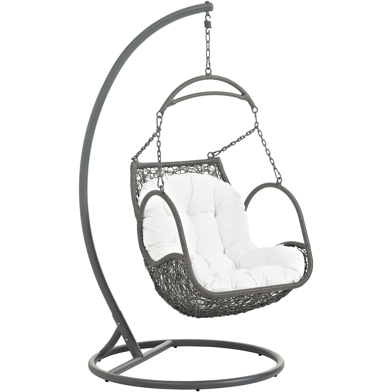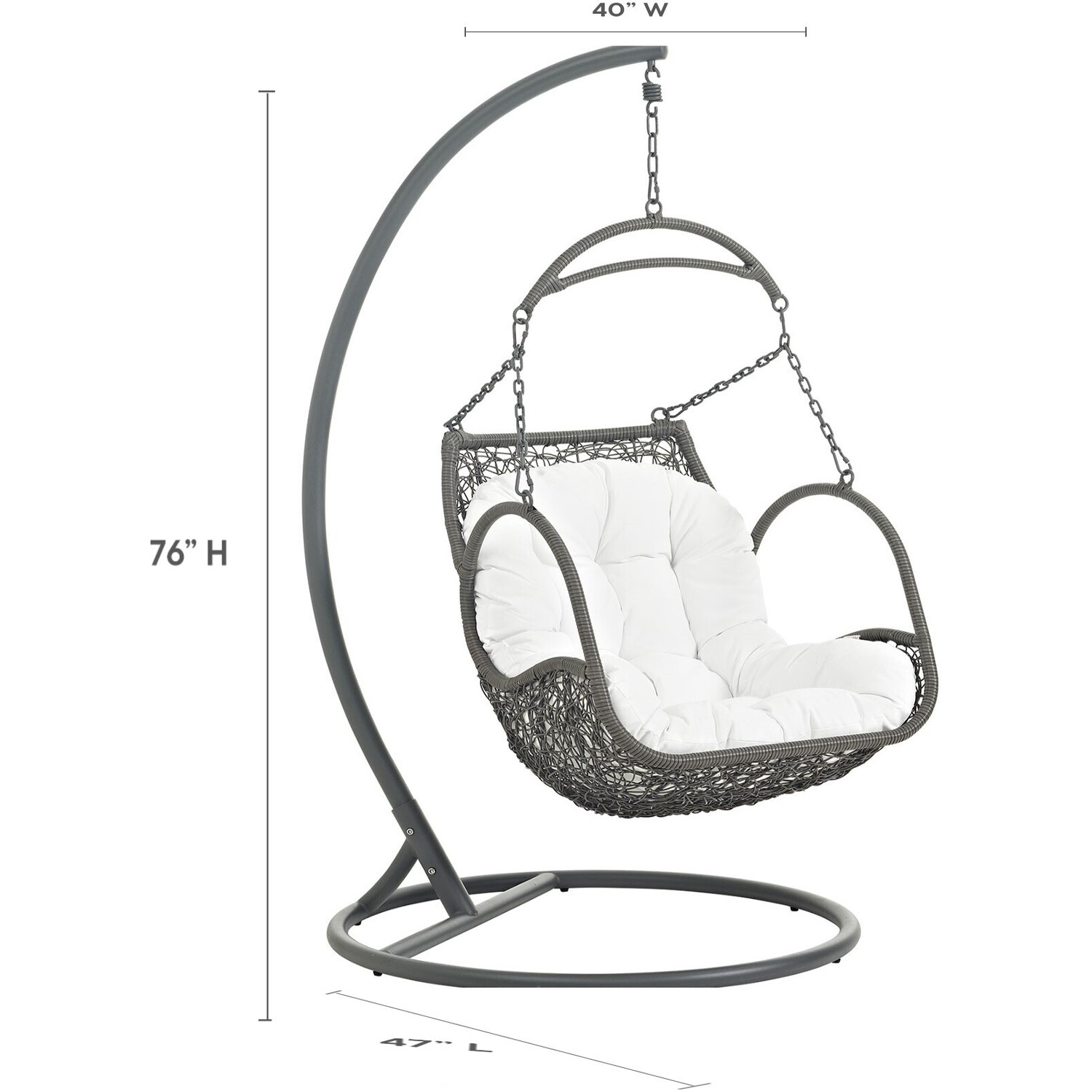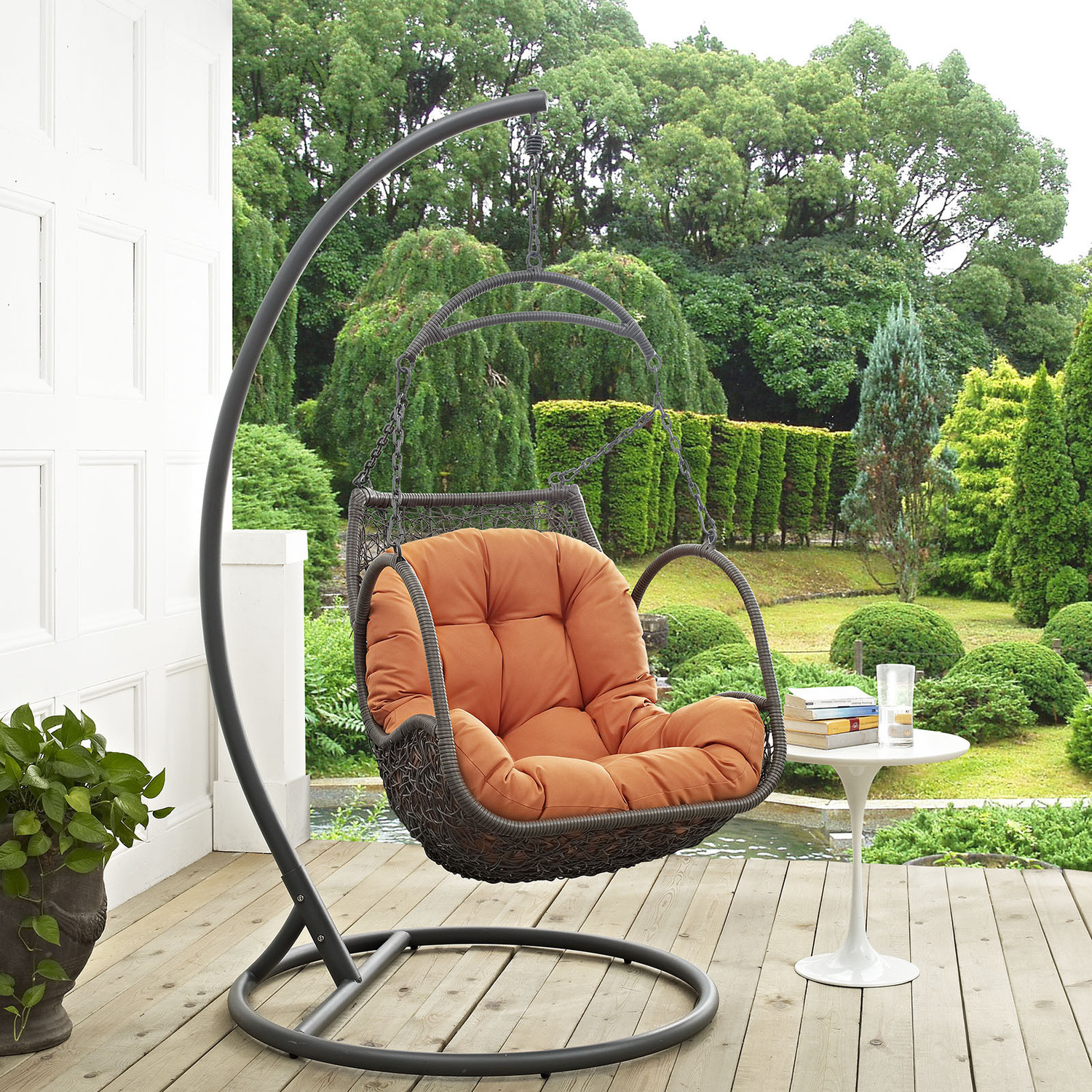 Actualize your inner ambitions with the Arbor Swing Chair. Made with an exotic outdoor recreation-themed design, Arbor Hanging Swing Chair comes outfitted with an all-weather synthetic rattan seat, water-resistant plush fabric cushion, and sturdy powder-coated steel frame with hanging chain apparatus. Inspired by adventure and discovery, Arbor’s look and utility work well in patios, backyards, or porches. Stand-alone swing chairs are also popularly used in indoor lounge, living, or bedroom spaces. Arbor is weather and UV resistant. Assembly Required.Stand-Alone Swing Hammock Chair