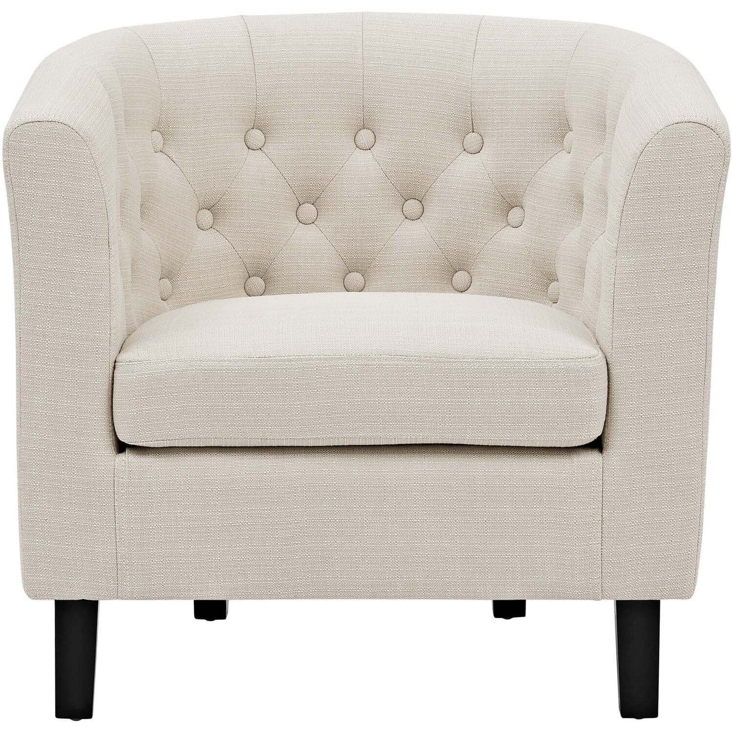 Intrinsically luxurious, Prospect is a throwback to the classic Chesterfield design, while delivering an engaging modern look filled with passion and drive. Button tufting and sweeping curves blend to form a contemporary lounge piece that all will be drawn to. This cozy armchair with espresso stained wood legs and non-marking foot caps features comfortable foam padding and a fabric polyester lining.Chesterfield Style Armchair