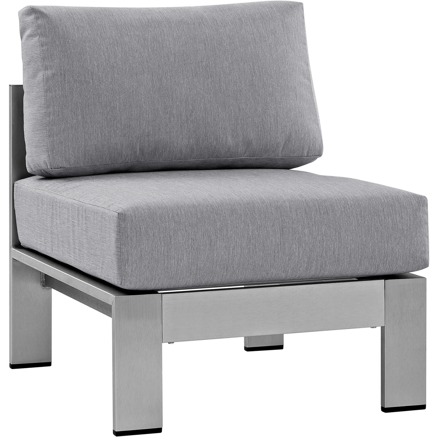 Enjoy your patio or backyard leisure time with the strong and durable Shore Outdoor Patio Collection. Made of anodized brushed aluminum frames and non-marking black plastic foot caps, Shore Outdoor Sectional Sofa pieces come outfitted with resilient fabric canvas tested to last through all weather conditions. The Shore Outdoor Patio Sectional Furniture Set complements casual gatherings with a chic look and ready versatility you can rely on.Modern Outdoor Patio Collection