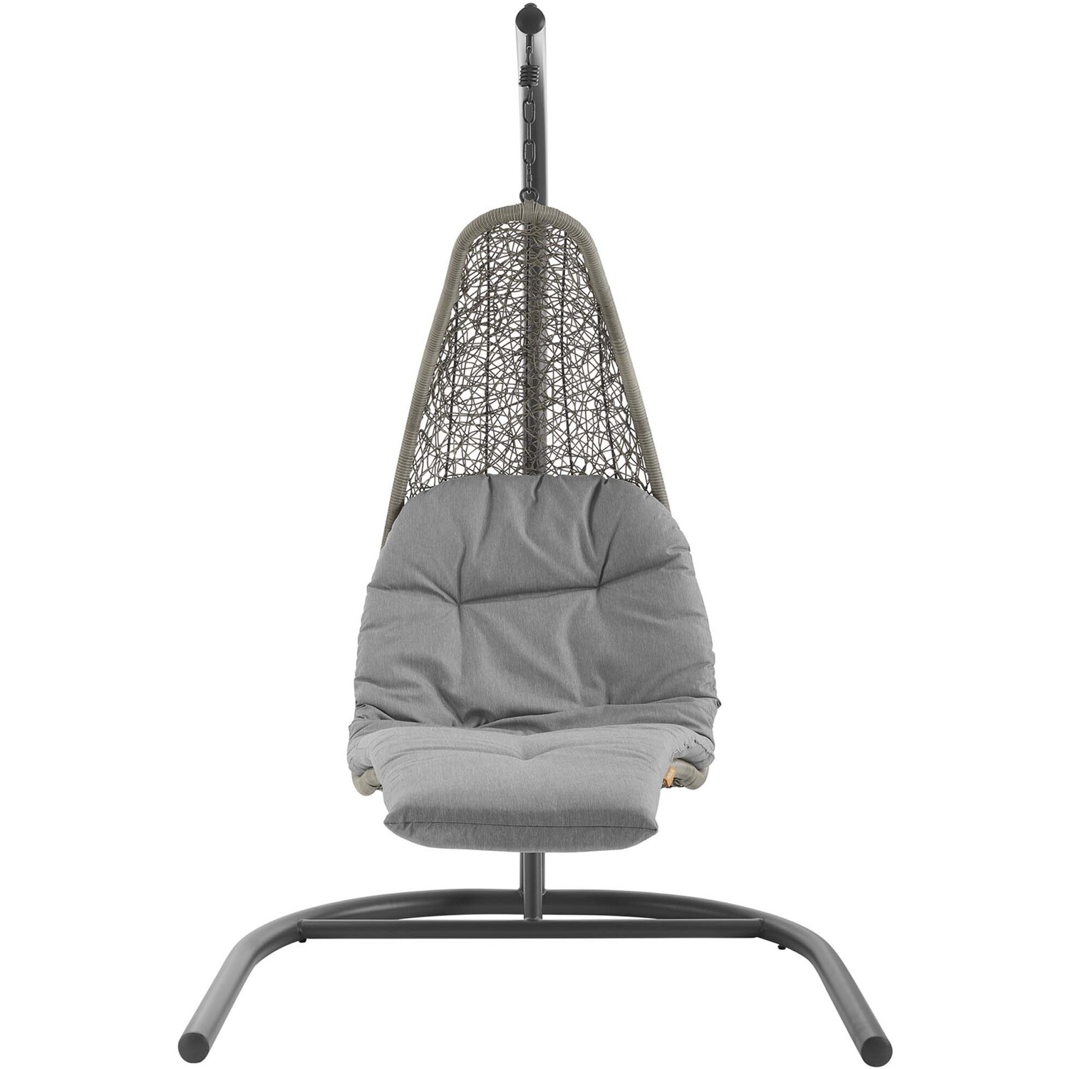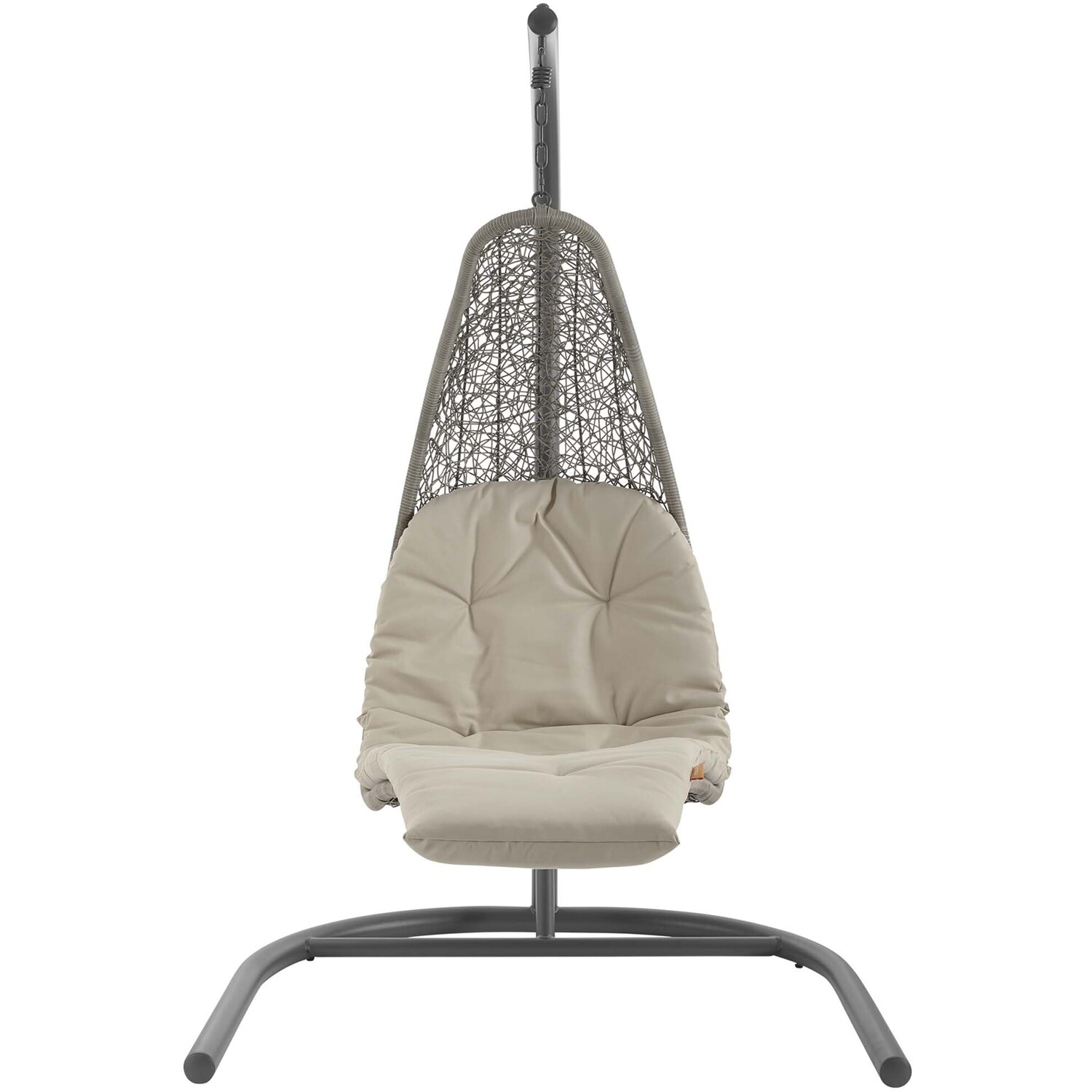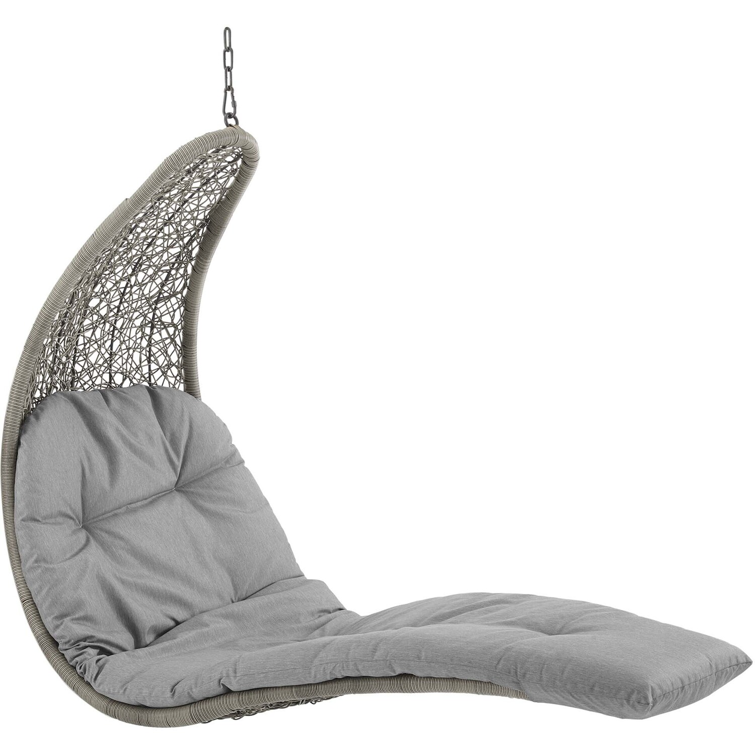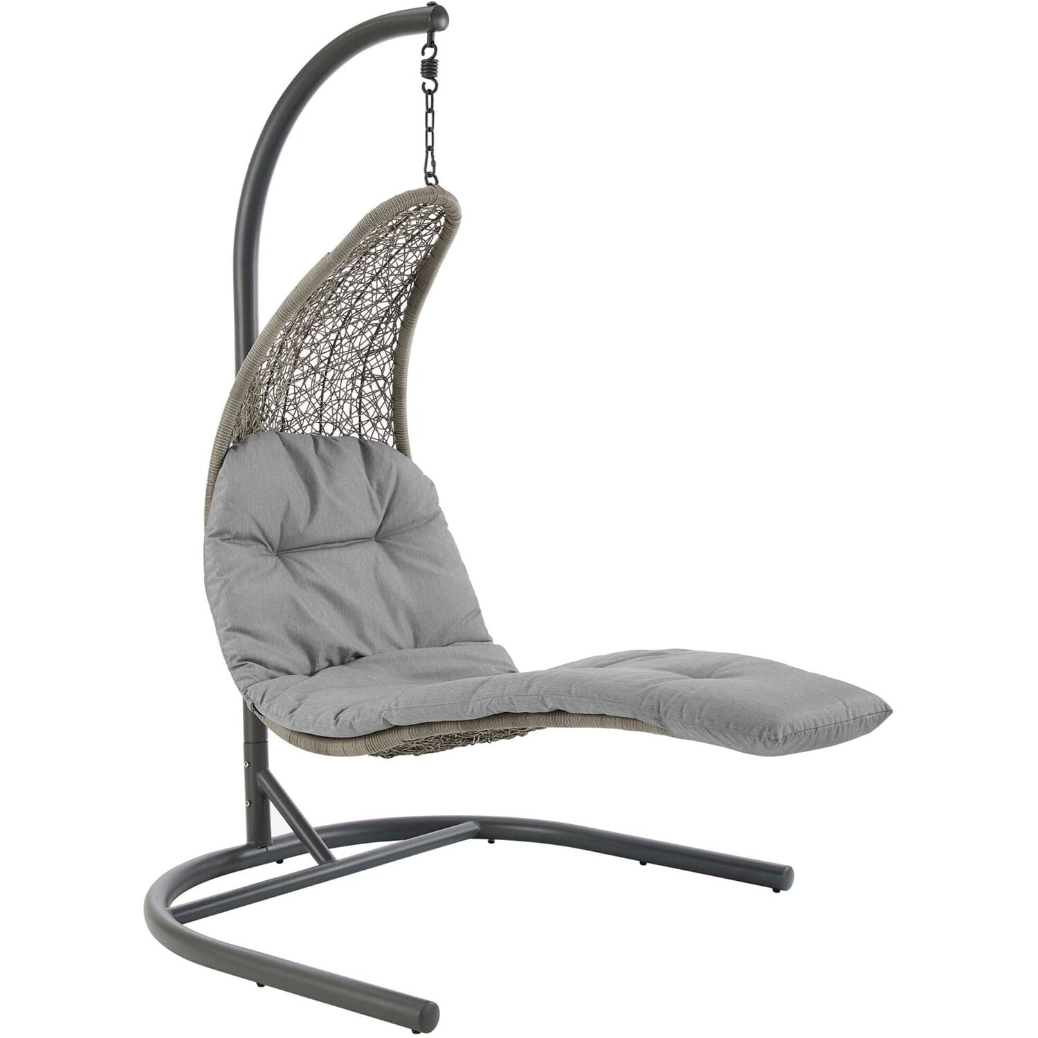 Escape to a place of relaxation with the Landscape Outdoor Patio Hanging Chaise Lounge Swing Chair. Wrapped with a textured synthetic rattan light gray and tan weave, this outdoor chaise lounger features a plush padded cushion upholstered in all-weather polyester fabric for lasting comfort. Hanging from a powder-coated steel frame, Landscape's organic design and sleek profile bring contemporary style to your outdoor patio, backyard, porch, or poolside. Sit back and relax with your feet up while enjoying warm weather and the calming movement of this outdoor porch swing. Includes stand and chain. Hanging Weight Capacity: 264 lbs.Outdoor Patio Chaise Lounge Swing Chair