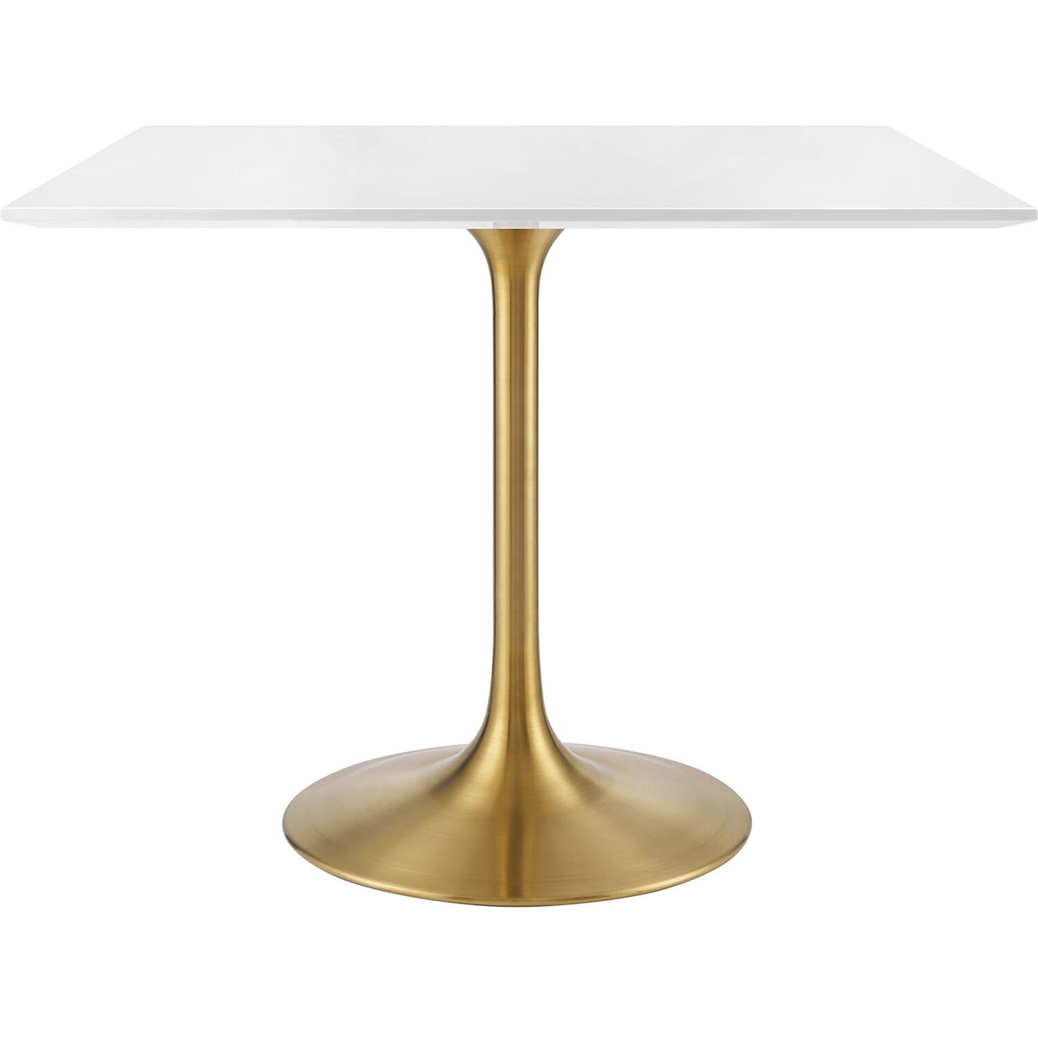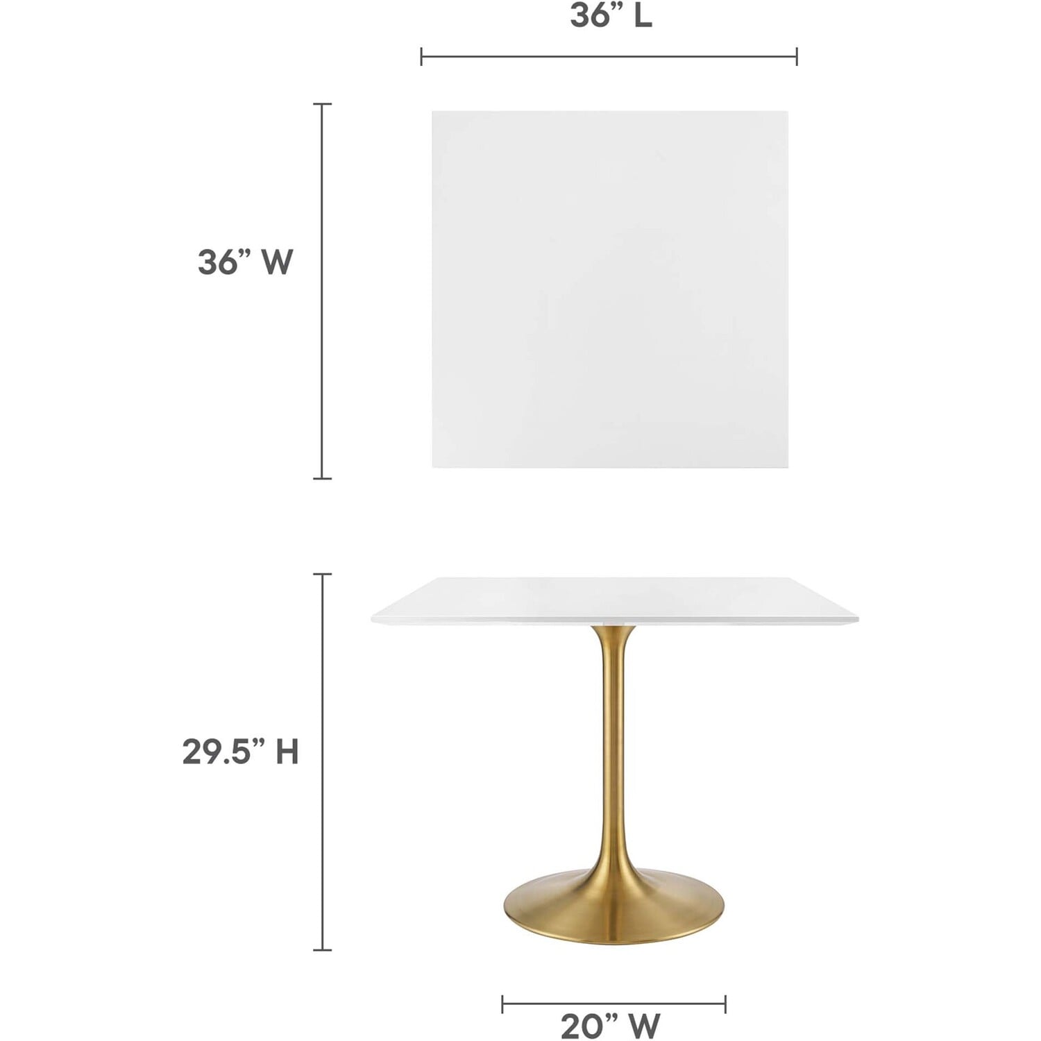 Let modern inspiration flow while gathered around the Lippa 36" Square Dining Table. Perfect for entertaining family and friends or everyday dining, this pedestal table comfortably seats four. Its square tabletop is crafted with MDF with a high gloss finish and beveled edge for a contemporary yet timeless design. Embodying an iconic mid-century silhouette, this pedestal dining table floats on a sleek tapered metal pedestal base with a chip-resistant brushed gold finish. Includes non-marking felt pad to protect flooring. Assembly required.Modern Dining Table