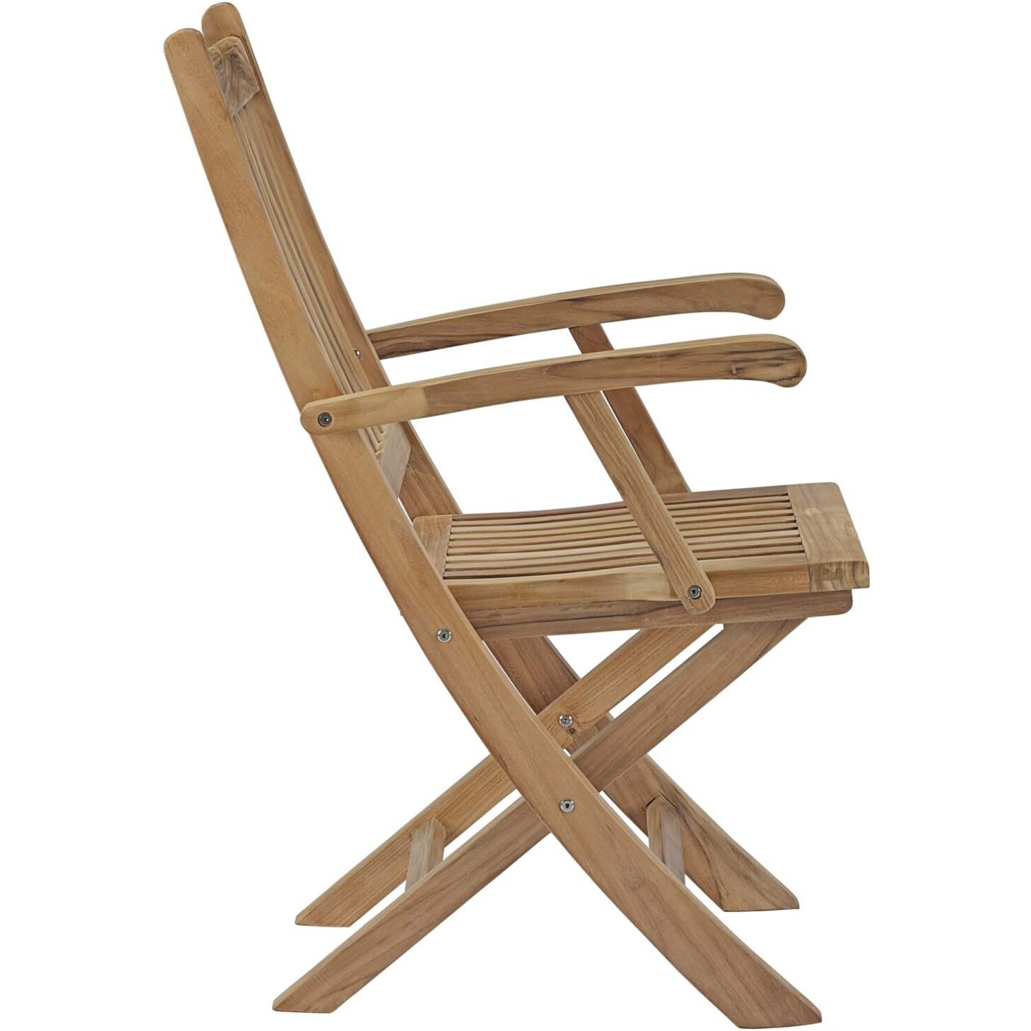 Harbor your greatest expectations with this luxurious solid teak wood outdoor set. Marina has a seating arrangement perfect for every member of your crew as you breathe the fresh, crisp air of a day spent with friends and family. Known for its natural ability to withstand extreme weather conditions, teak is the wood selection of choice for long-lasting outdoor furnishings. Now you can enjoy Marina’s durable construction and all-weather cushions, alongside a modern design that persistently looks new and welcoming. Assembly required.Outdoor teak dining table/folding armchair