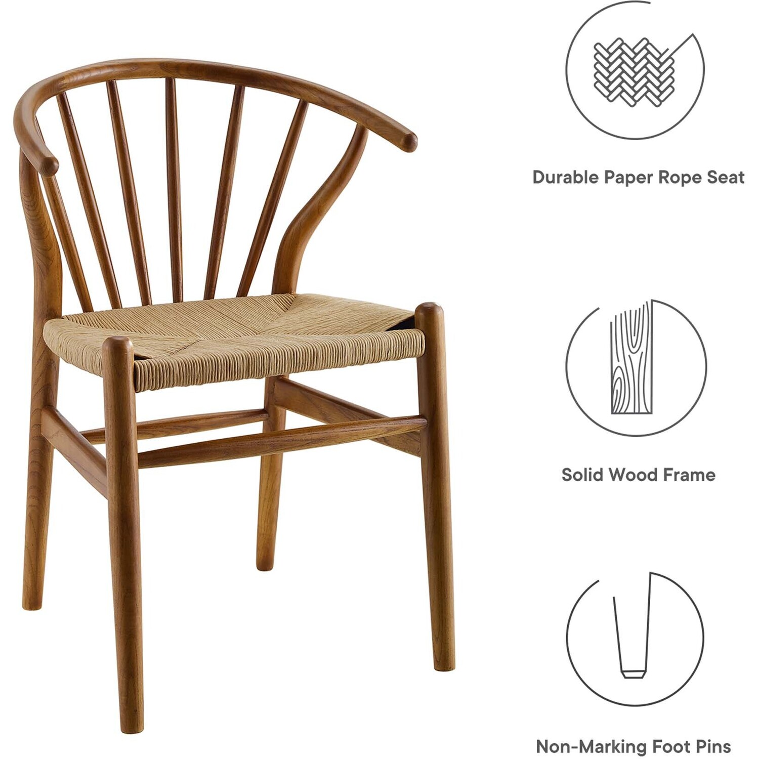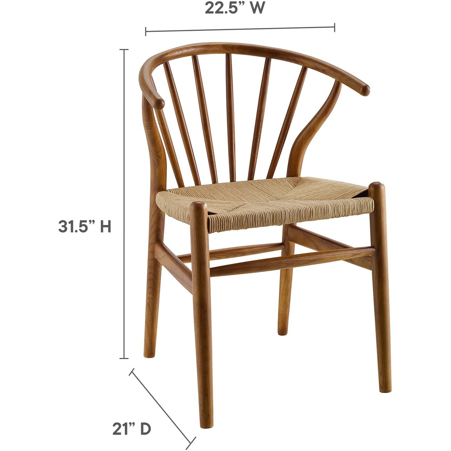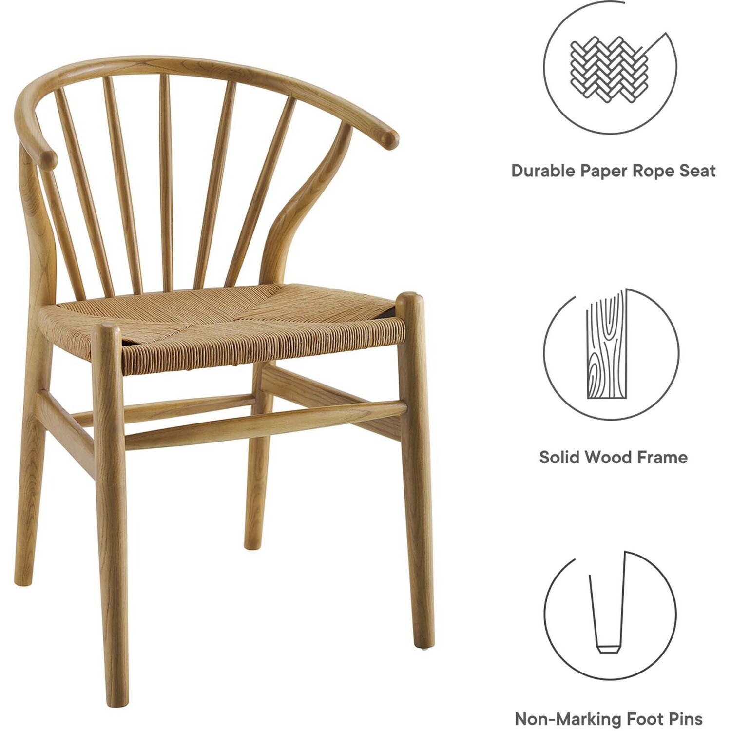 Bring Scandinavian style to your dining space with the Flourish Dining Side Chair. Featuring a sweeping curved back, tapered wood legs, and classic spindles, the modern farmhouse design of this dining chair gets a contemporary update with delicate craftsmanship and stylish detail. The seat is made of paper rope, a new twine that is soft, anti-static and durable, while providing beautiful contrast and a soft texture. Complete with a solid wood frame and support rods make this piece a lasting choice for the dining room, kitchen table, or living area. Complement a variety of décor settings from mid-century to contemporary modern with this wood dining chair. Weight Capacity: 286 lbs.Modern Farmhouse Dining Chair