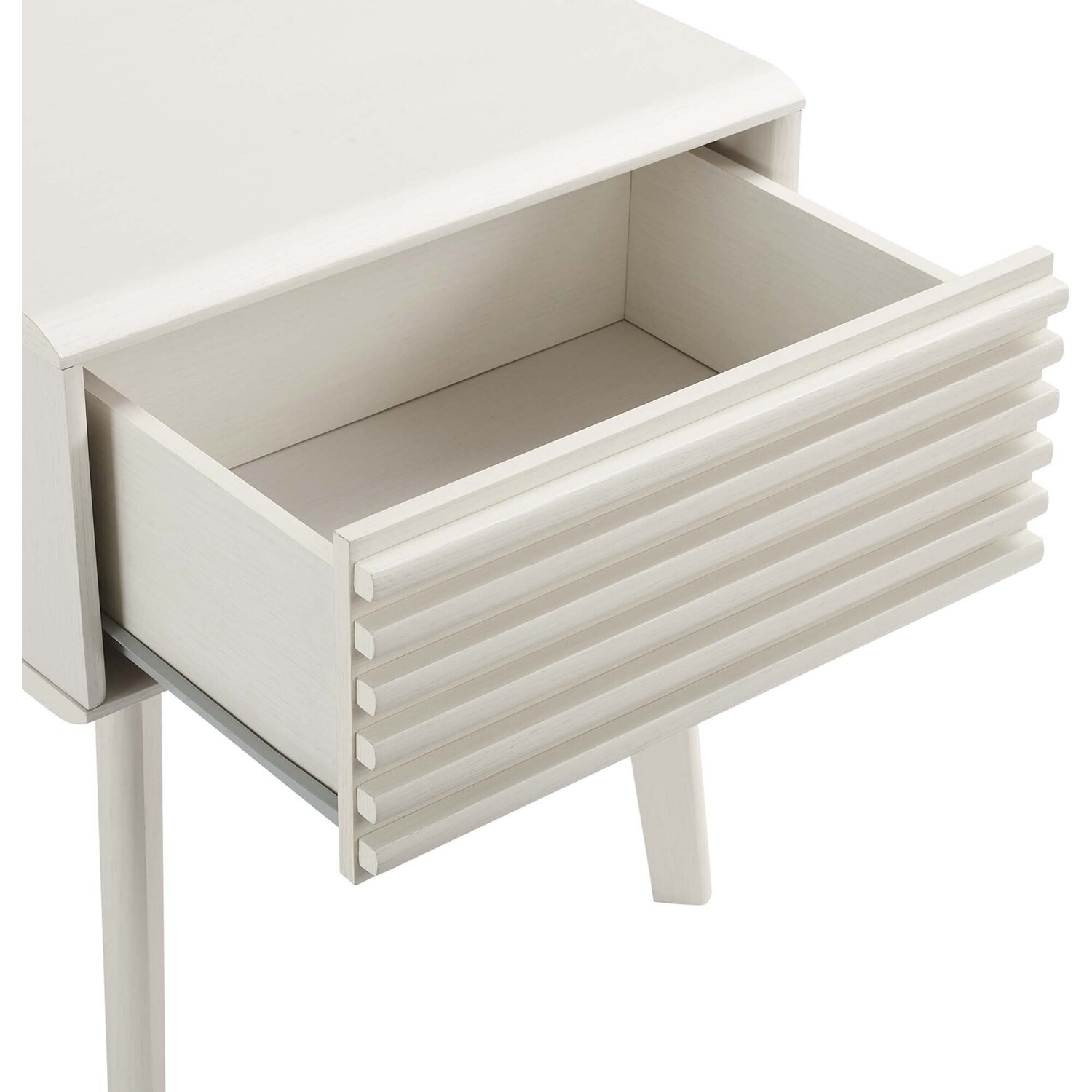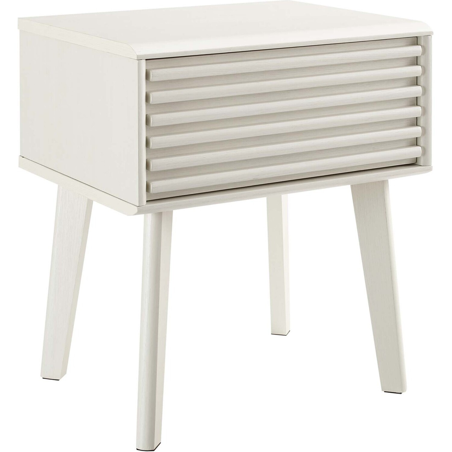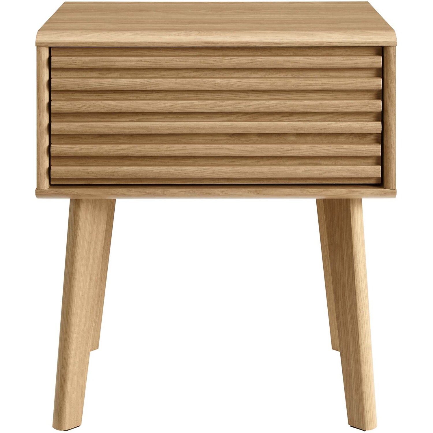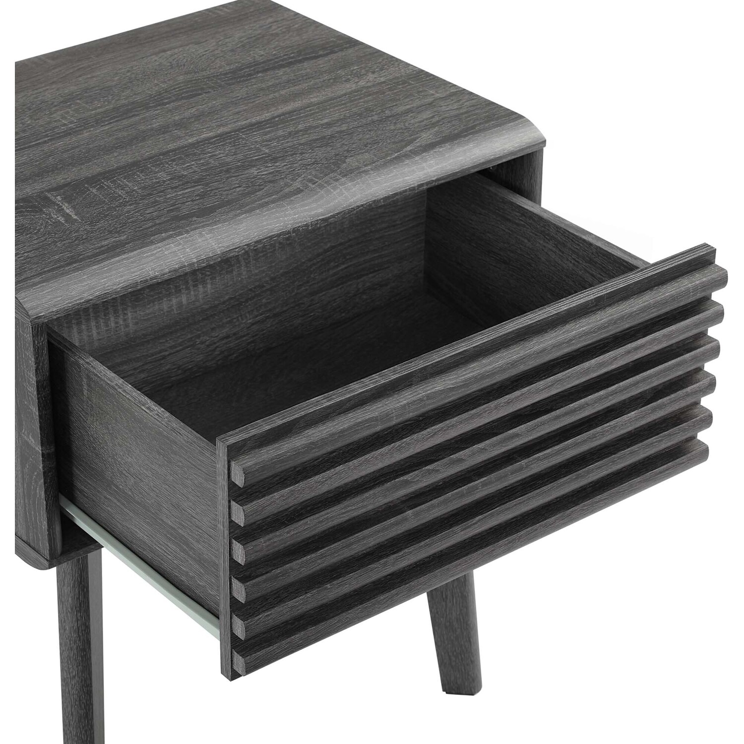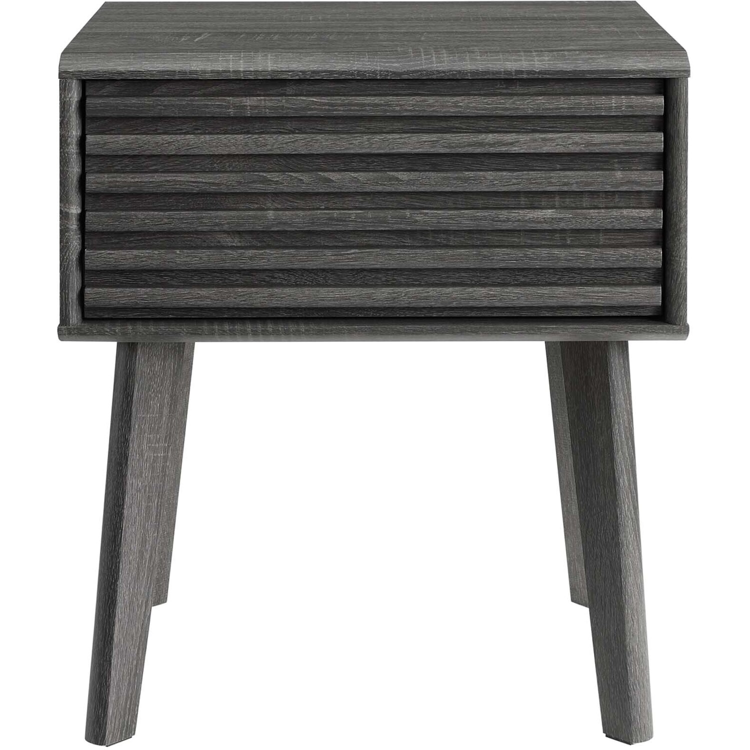 Tap into mid-century aesthetics with the Render End Table Nightstand. This bedside or living room side table features a durable particleboard frame with smooth walnut grain laminate, four tapered wood legs, and full-extension glide storage drawer. Boasting a mid-century modern style this accent table features a solid construction with a pleasing look and practical functionality.Mid-Century Nightstand