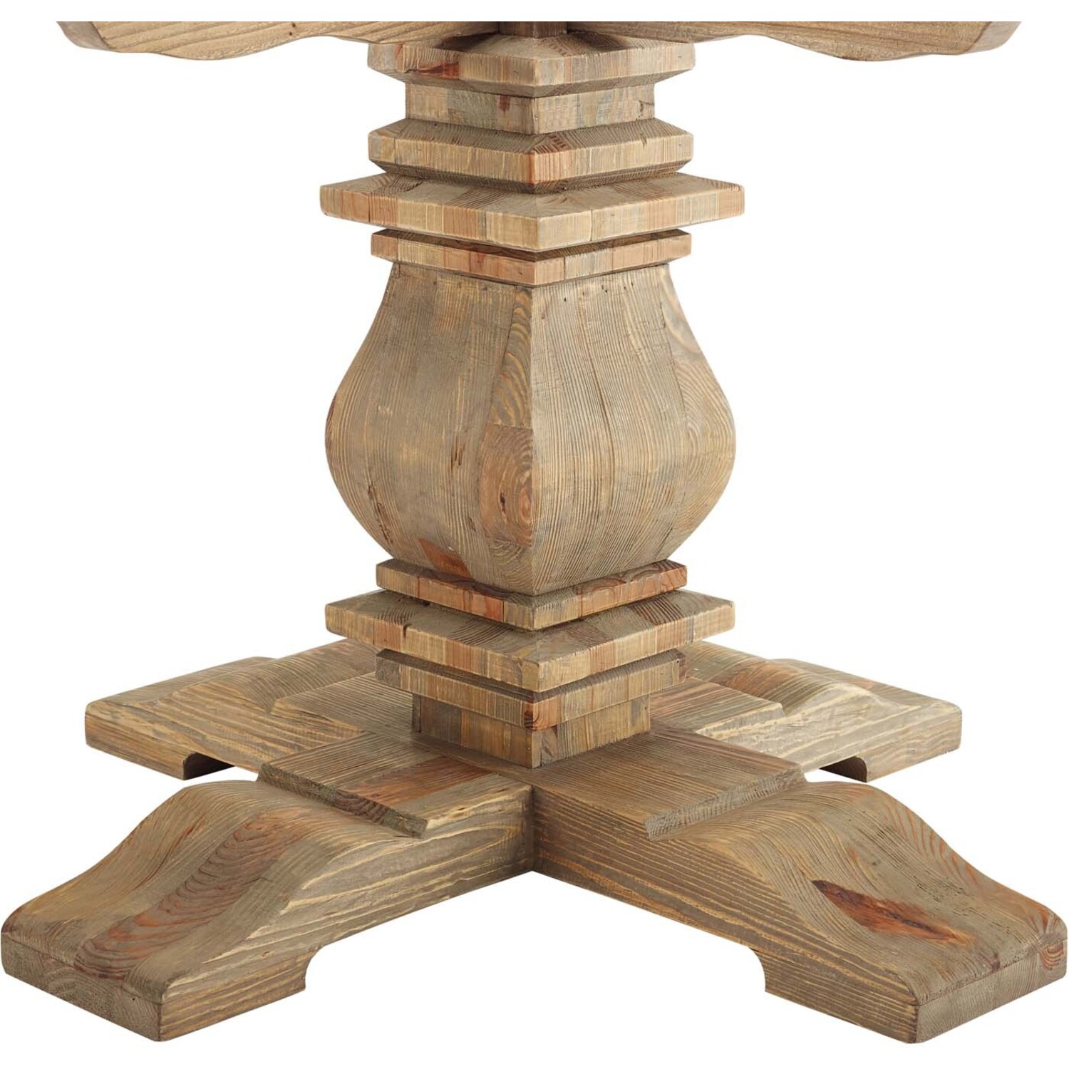 Gather family and friends for good food and good conversation with the Column Dining Table. A charming addition to a modern farmhouse, rustic, industrial, or ranch style home, Column boasts a rich wood grain texture, solid pine wood construction, and rests atop a sculpturally carved pedestal base. Complete with a 71-inch round table top for extra leg room, Column accommodates up to ten guests, making it the perfect choice for everyday dining or occasional entertaining.Rustic Dining Table