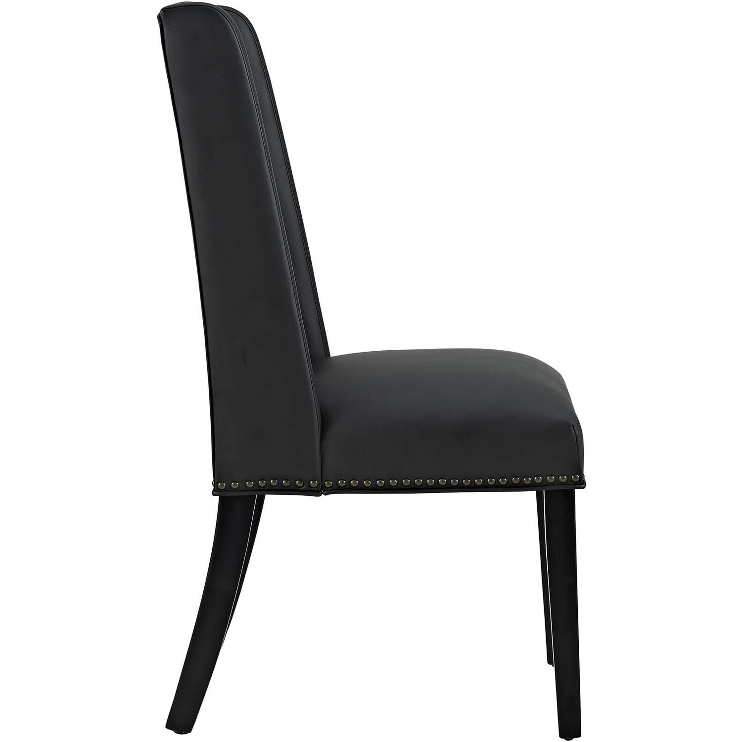Explore the vast riches of a treasured heritage with the Baron Dining Chair. Designed to resonate elegance, Barons features a charming back and antique copper nailhead trimmed seat with a dash of grace and noble appeal. Complete with dense foam padding, fine vinyl upholstery, solid wood frame and legs with non-marking foot glides, Baron is a stylish dining chair perfect for the modern home.Elegant Modern Dining Side Chair