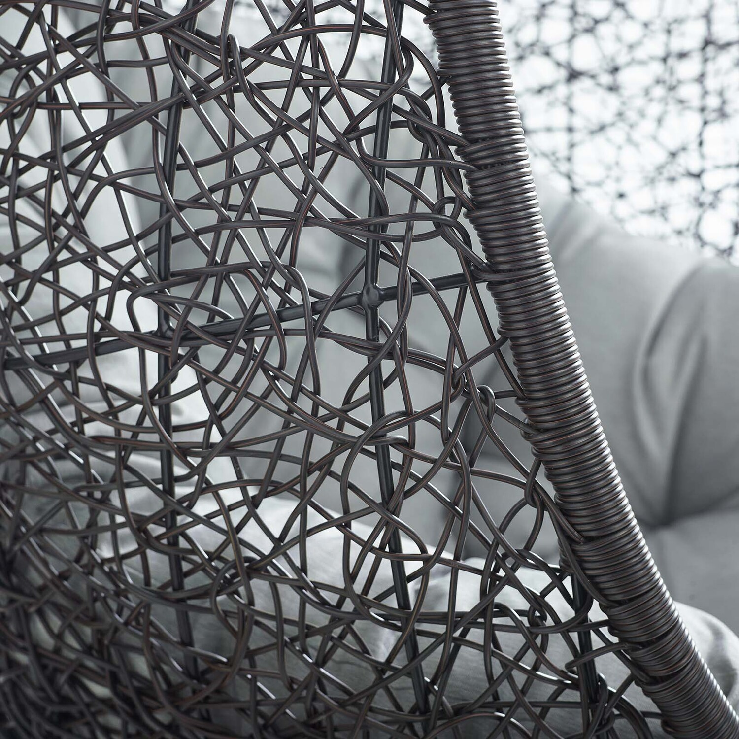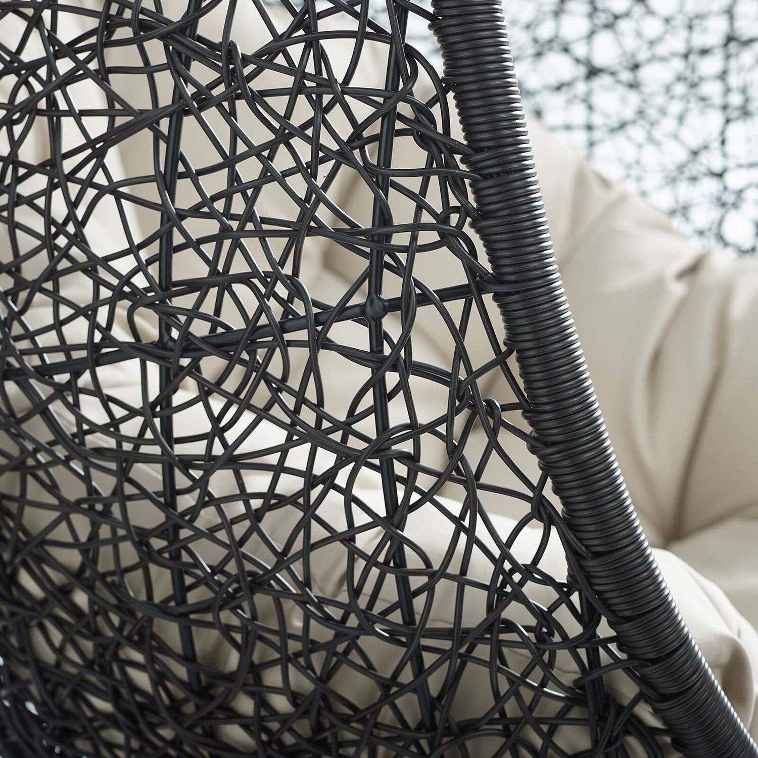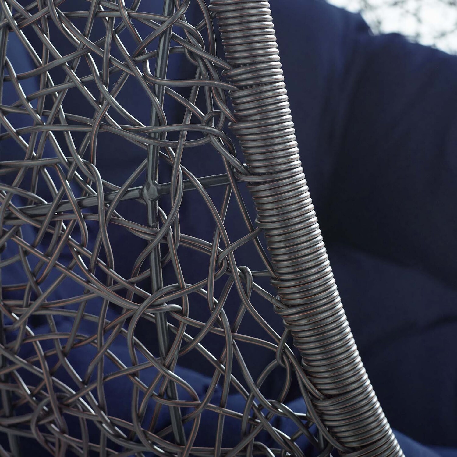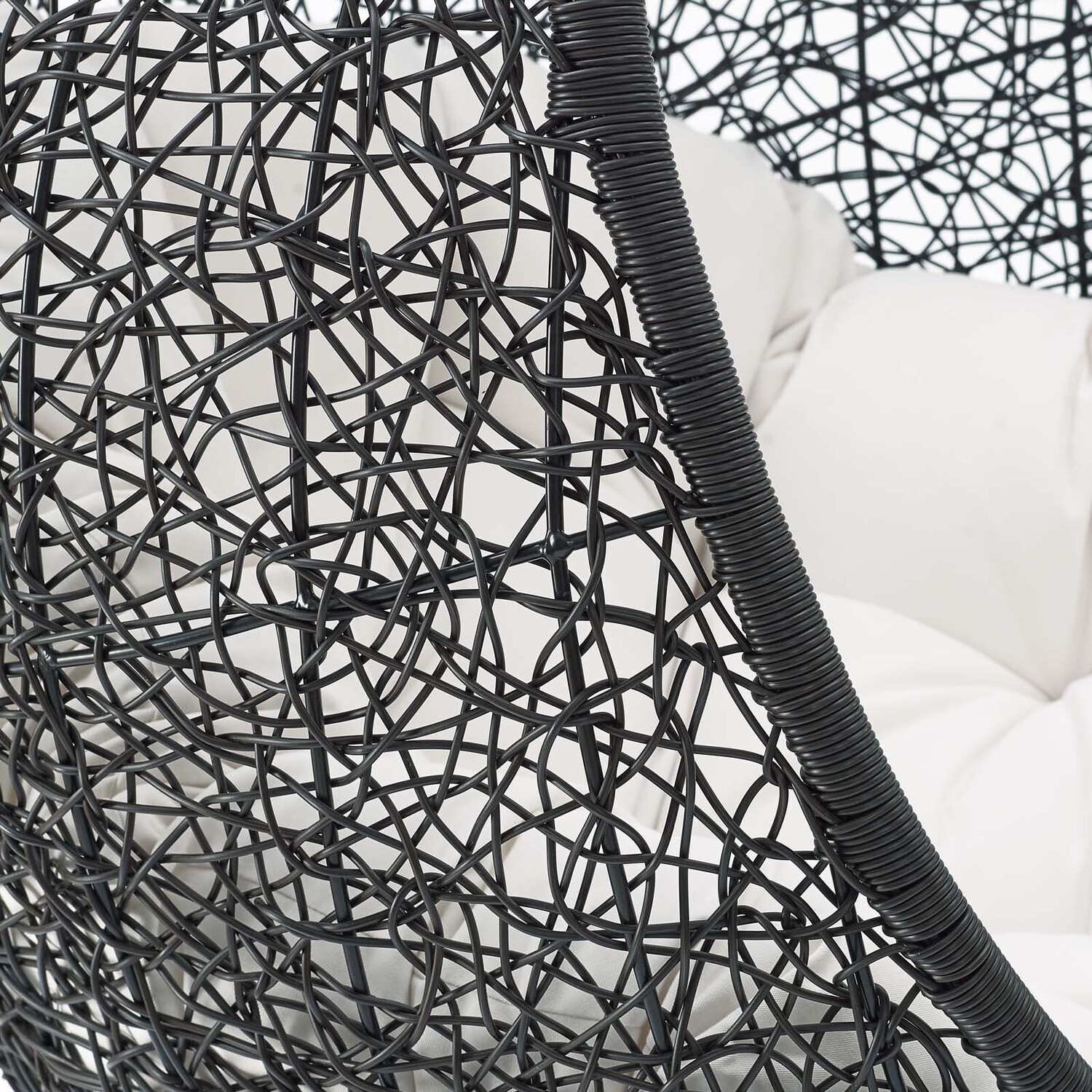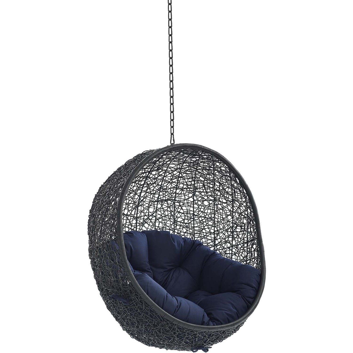 Escape to an exotic island of serenity with the Encase Outdoor Patio Swing Chair. Made with a luxurious synthetic rattan weave and plush all-weather fabric cushion, Encase Outdoor Hanging Chair makes it easy to immerse yourself in a good book. Encase Patio Swing Chair comes with a sturdy powder-coated steel frame and adjustable 78.5”" steel chain that works well to enliven your patio, backyard, porch, or poolside décor. Stand-alone hanging swing chairs are also popularly used in indoor lounge, living, or bedroom spaces. Hide Swinging Chair is weather and UV resistant.78.5” Adjustable Steel Hanging Chain