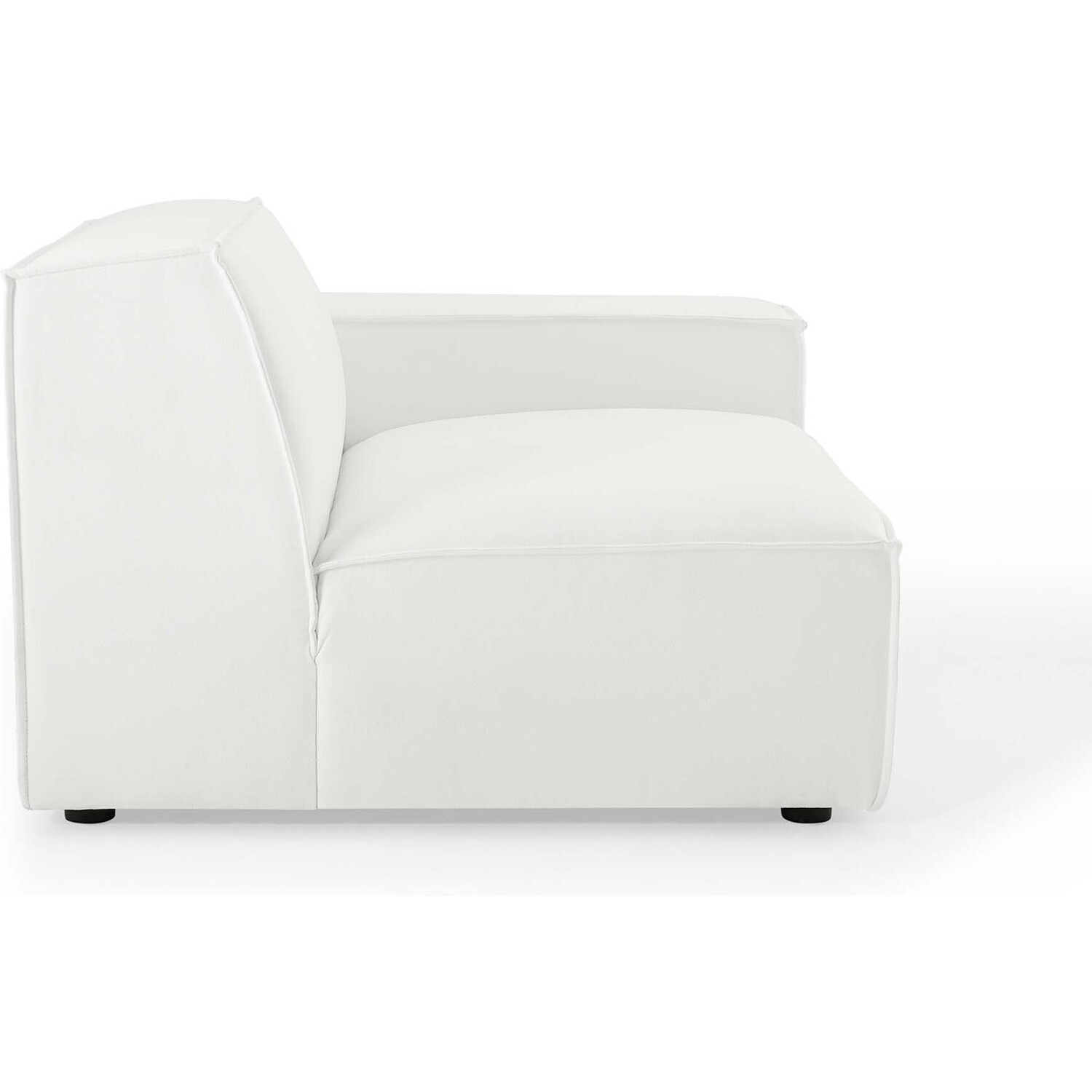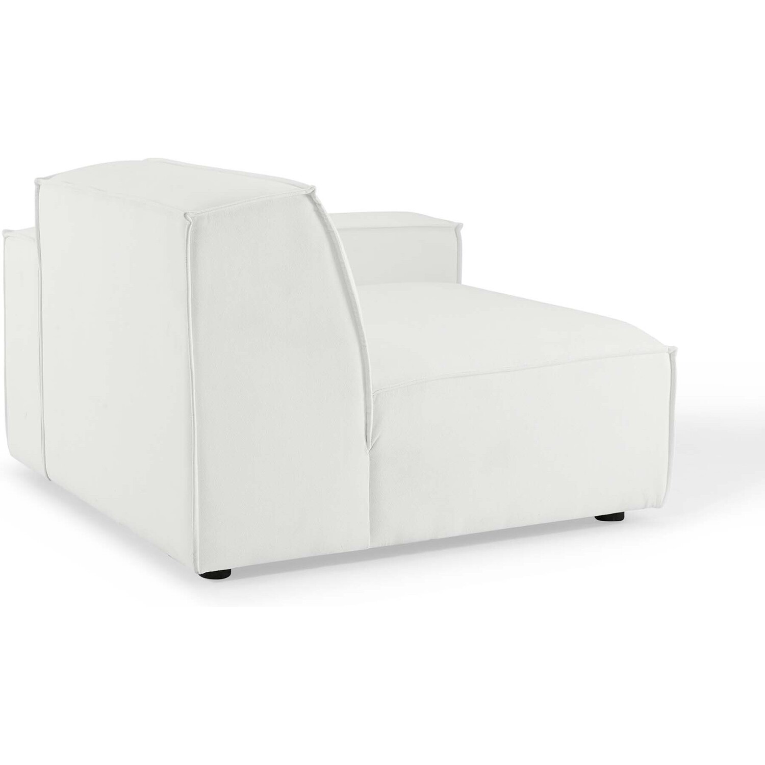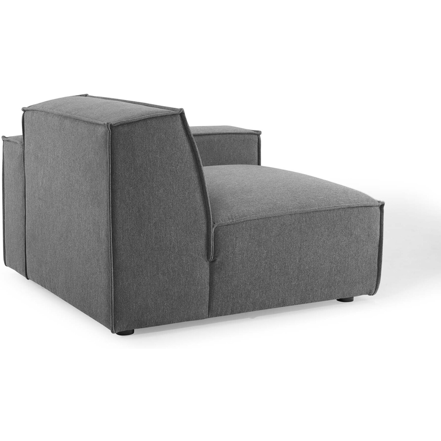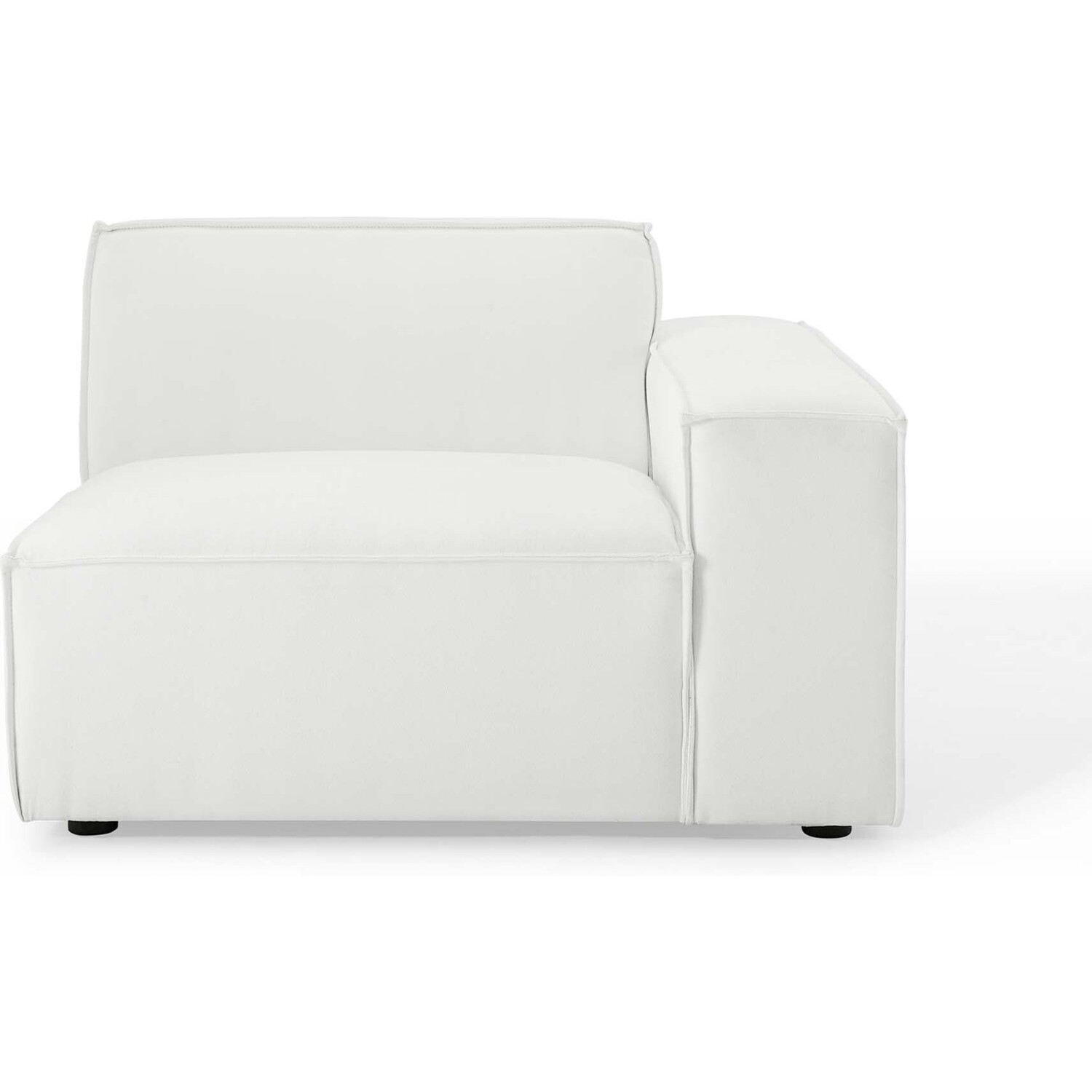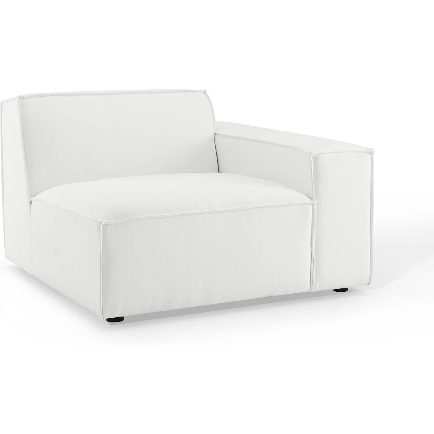 Create your custom living room and lounge area with the Restore Upholstered Fabric Right-Arm Sectional Sofa Chair. The Restore Right-Arm Chair appeals to minimalist elegance with a crisp design and broad lines accented with French piping details and polyester fabric upholstery. Dense foam padding and a pocket coil spring system in the cushions offer a luxe seating experience for your living room and lounge. The Restore Living Room Sofa Chair is solidly constructed from plywood and wood with non-marking foot caps to protect flooring and connectors between modular pieces. Chair Weight Capacity: 440 lbs.Right-Arm Sofa Chair