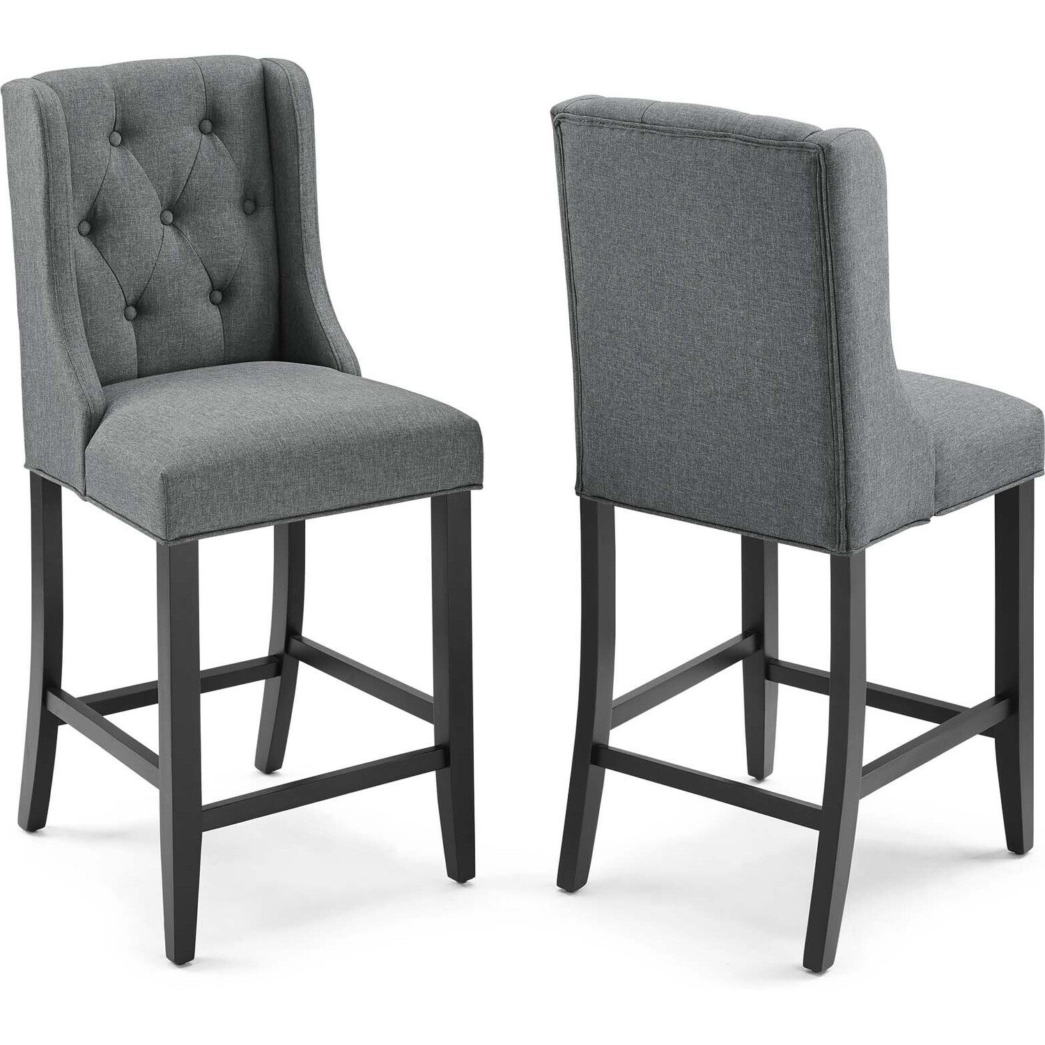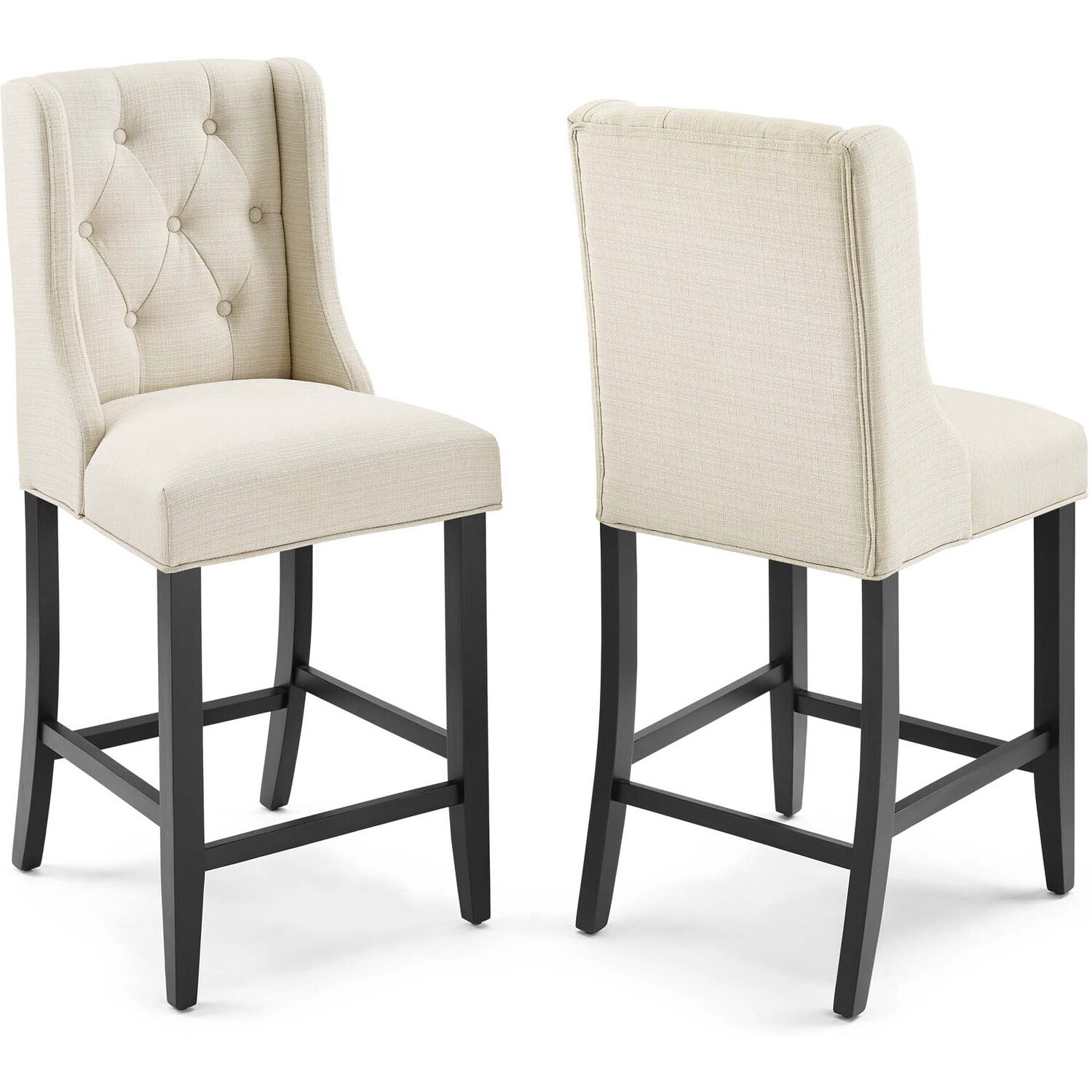 Bestow splendor with the Baronet Tufted Button Upholstered Fabric Counter Stool. Featuring dense foam padding, sinuous spring support, and soft polyester fabric upholstery, enjoy a luxe seating experience with this luxurious tufted button counter bar stool. Complete with sleek curves and dignified form, this modern counter stool with solid wood legs with stretcher supports and non-marking foot caps is the perfect choice for the dining seating area. Counter Stool Weight Capacity: 500 lbs.Tufted Button Counter Stool