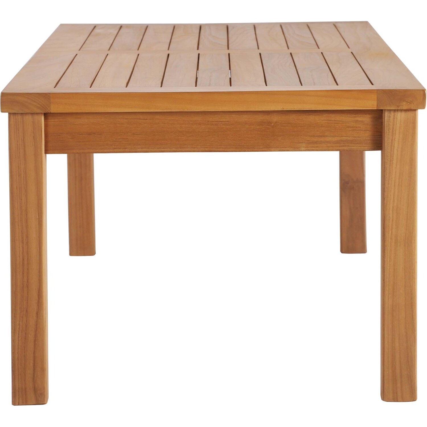 Refresh your outdoor décor with the Upland Teak Wood Outdoor Patio Furniture Collection. Boldly designed with eye-catching appeal, Upland Patio Coffee Table is made of solid teak wood and solidly build construction. The perfect choice for balconies, backyards, patios, gazebos, poolside or garden spaces, choose from matching armchair, loveseat, sofa, ottoman, side table, coffee table, and chaise lounge selections with this multi-purpose modern teak set. Known for its ability to withstand extreme weather conditions, teak is the wood selection of choice for long-lasting outdoor furnishings. Assembly required. This installment of the Upland Teak Wood Outdoor Patio Furniture Series is a patio coffee table.Modern Outdoor Teak Coffee Table