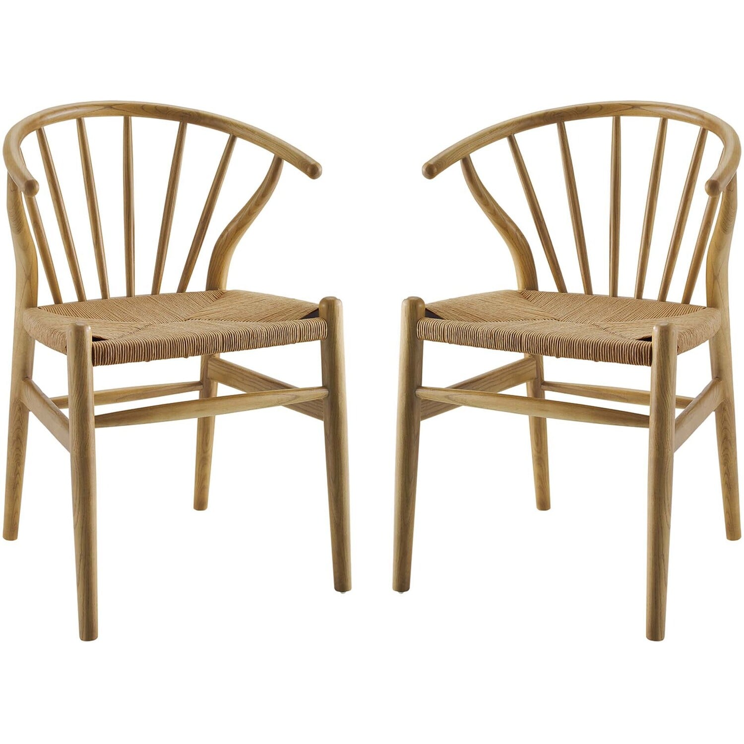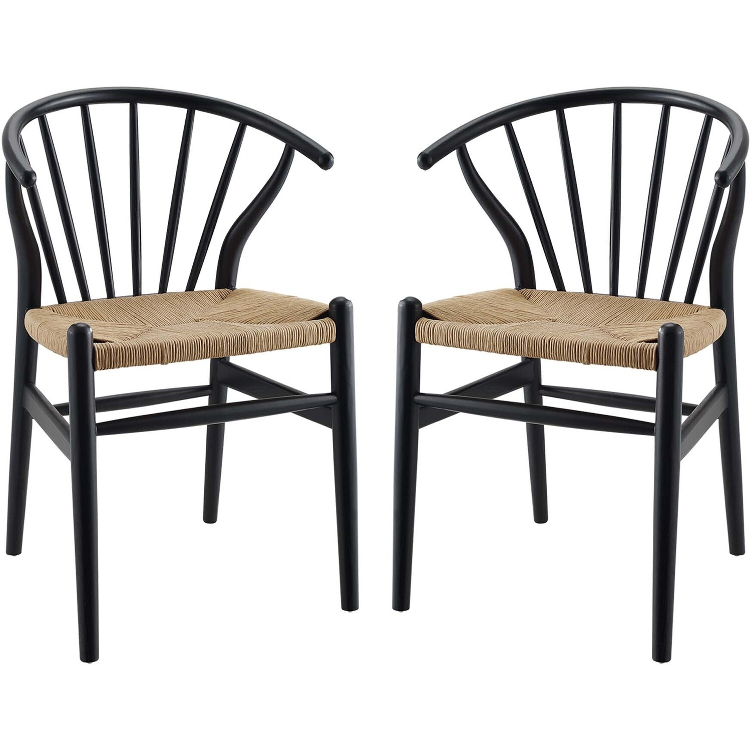 Bring Scandinavian style to your dining space with the Flourish Dining Side Chair Set of 2. Featuring a sweeping curved back, tapered wood legs, and classic spindles, the modern farmhouse design of this dining chair gets a contemporary update with delicate craftsmanship and stylish detail. The seat is made of paper rope, a new twine that is soft, anti-static and durable, while providing beautiful contrast and a soft texture. Complete with a solid wood frame and support rods make this piece a lasting choice for the dining room, kitchen table, or living area. Complement a variety of décor settings from mid-century to contemporary modern with this wood dining chair set. Weight Capacity: 286 lbsModern Farmhouse Dining Chair Set of 2
