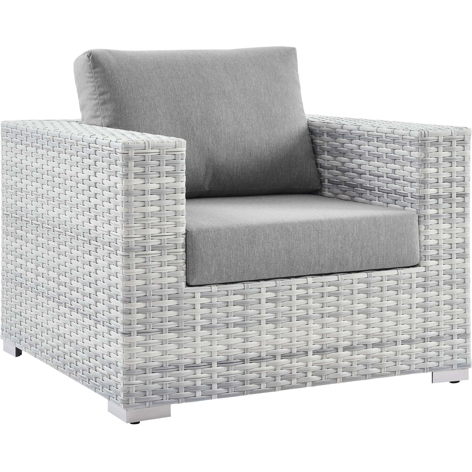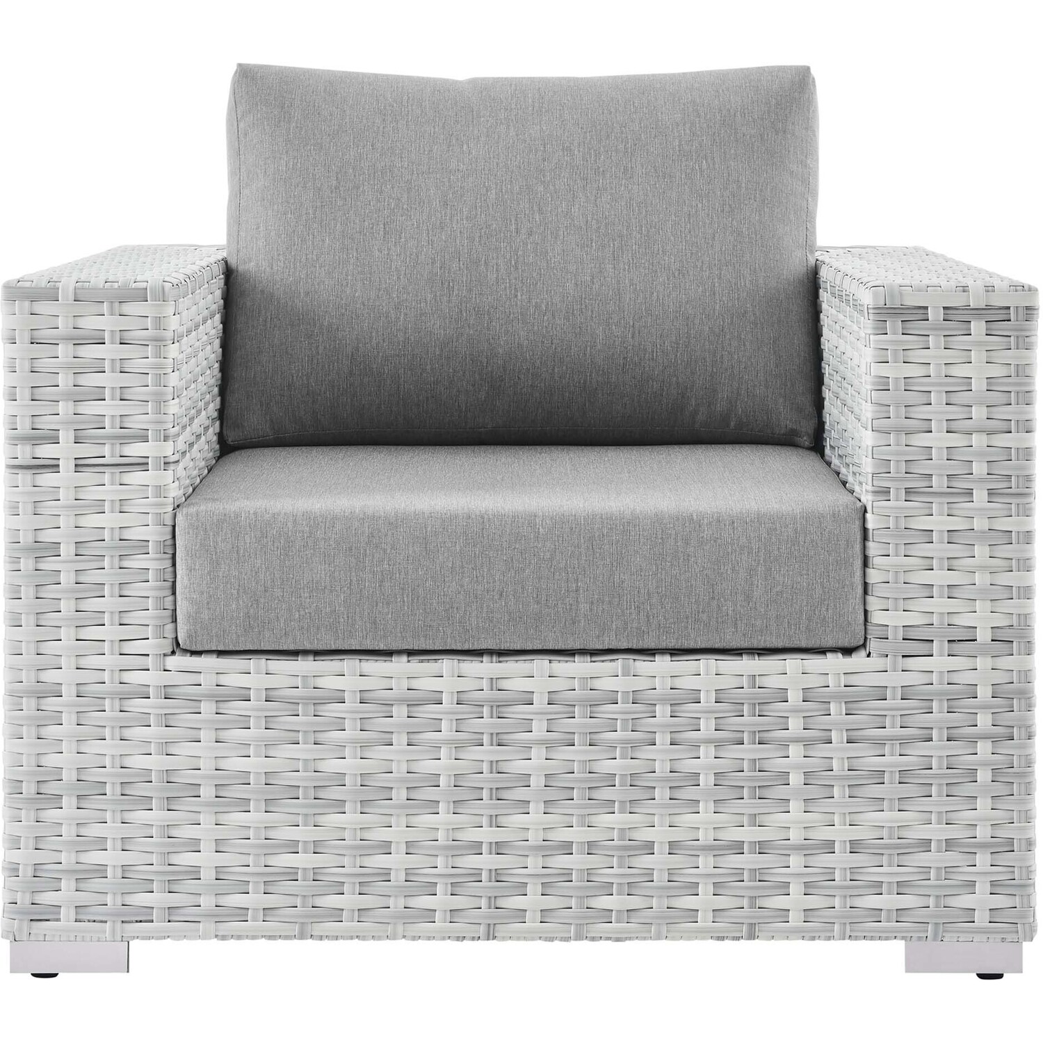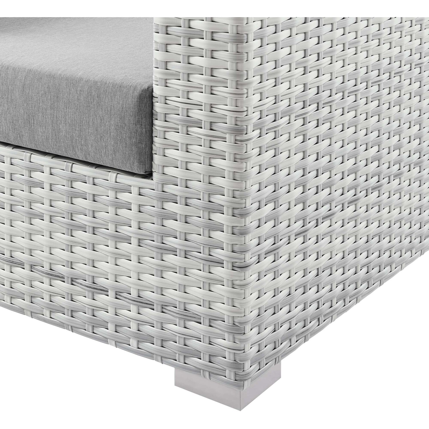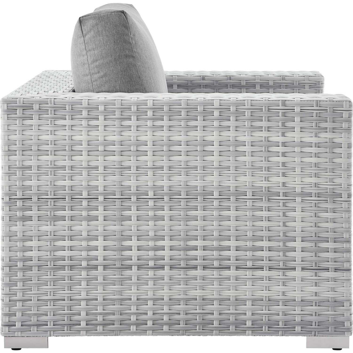Gather stages of sensitivity with the Convene Outdoor Sectional series. Made with a synthetic rattan weave and a powder-coated aluminum frame, Convene is a versatile patio armchair from an outdoor collection that shifts and combines according to the spontaneous needs of the moment. Outfitted with all-weather fabric cushions, the Convene Armchair leaves a positive impression on friends and family while enhancing your patio, backyard, or poolside retreat with palpable distinction.Synthetic Rattan Weave