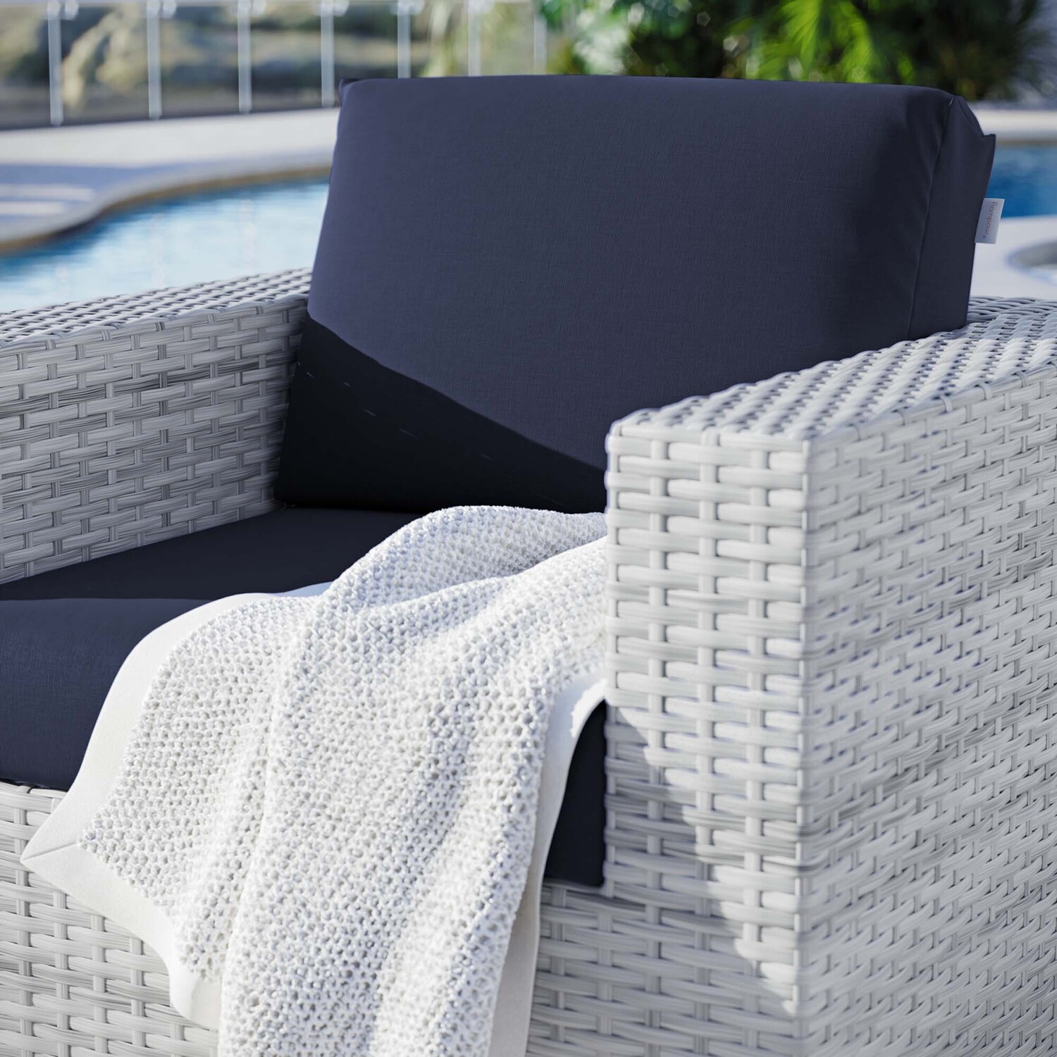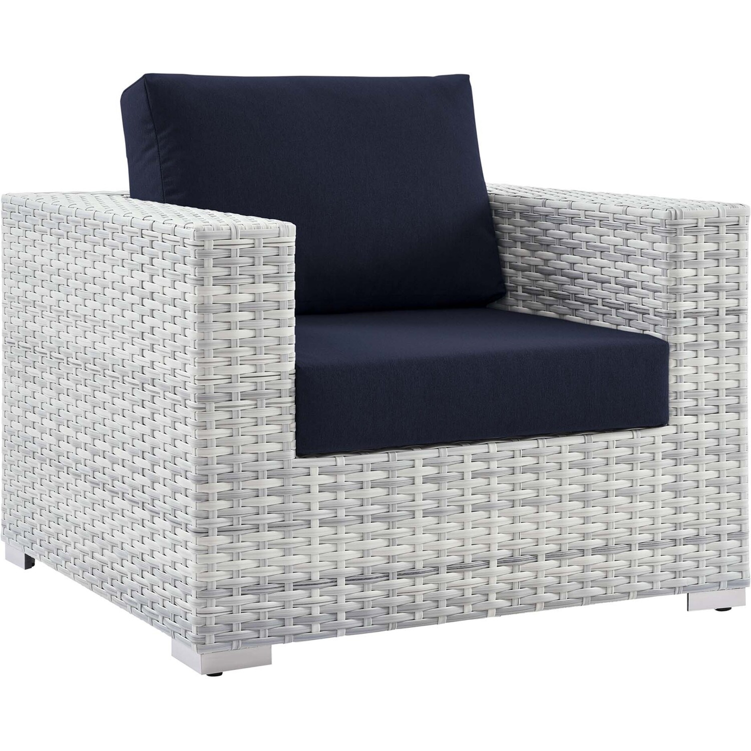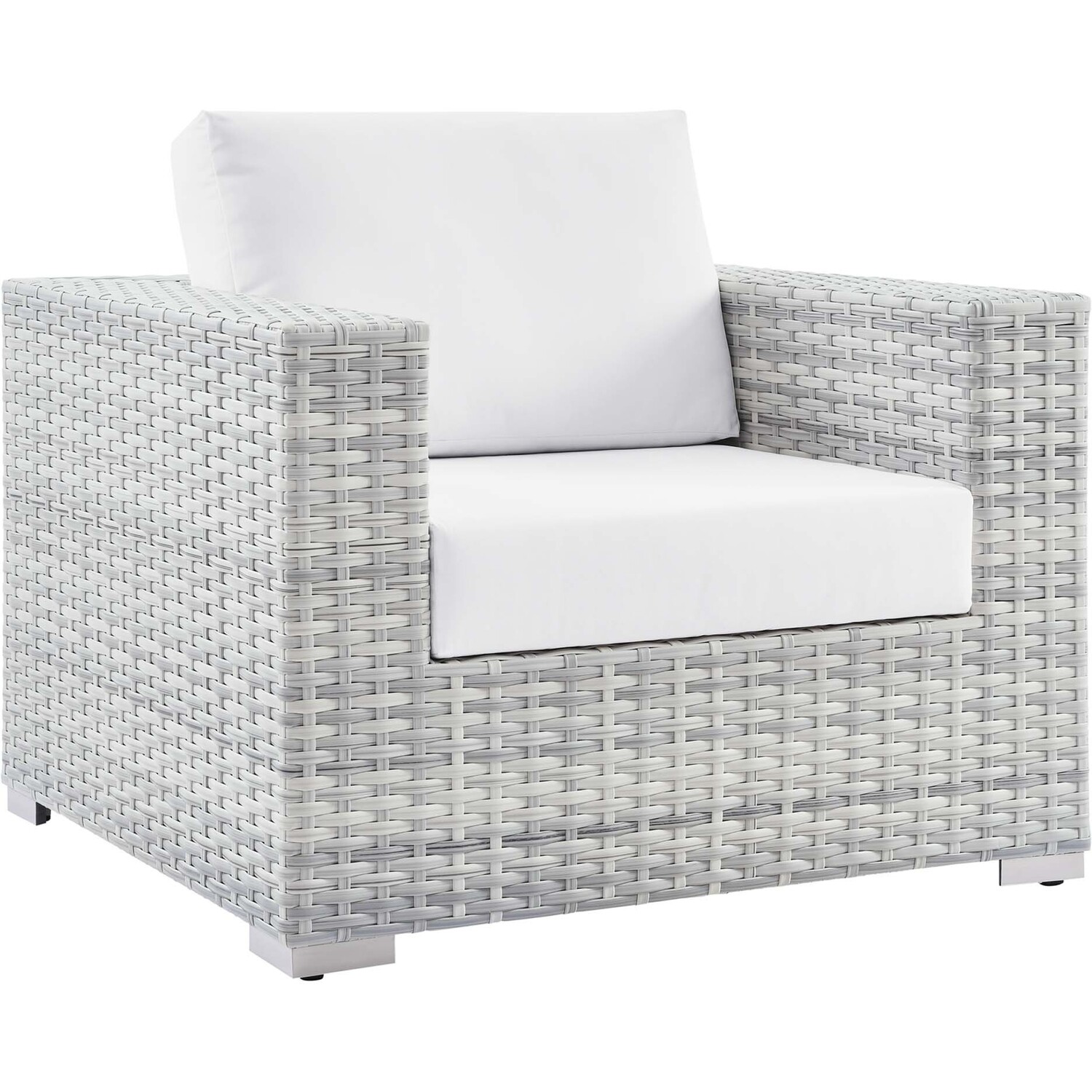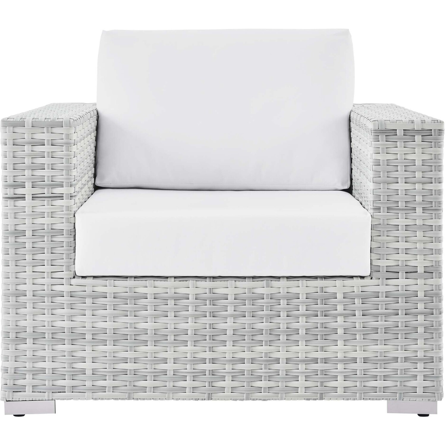 Gather stages of sensitivity with the Convene Outdoor Sectional series. Made with a synthetic rattan weave and a powder-coated aluminum frame, Convene is a versatile patio armchair from an outdoor collection that shifts and combines according to the spontaneous needs of the moment. Outfitted with all-weather fabric cushions, the Convene Armchair leaves a positive impression on friends and family while enhancing your patio, backyard, or poolside retreat with palpable distinction.Synthetic Rattan Weave