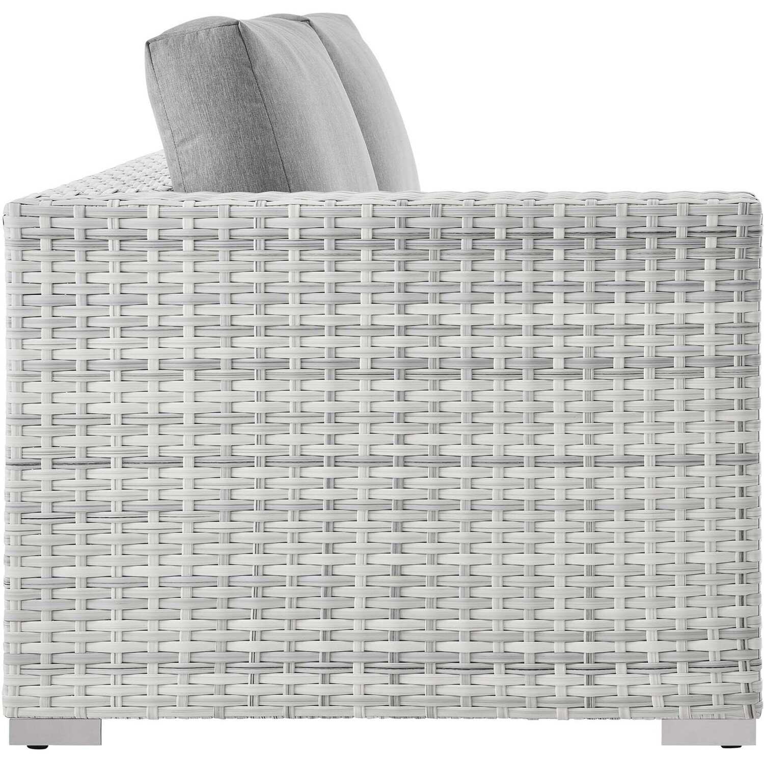 Gather stages of sensitivity with the Convene outdoor sectional series. Made with a synthetic rattan weave and a powder-coated aluminum frame, Convene is a versatile left-arm loveseat from an outdoor collection that shifts and combines according to the spontaneous needs of the moment. Outfitted with all-weather fabric cushions, the Convene Left-Arm Loveseat leaves a positive impression on friends and family while enhancing your patio, backyard, or poolside retreat with palpable distinction.Synthetic Rattan Weave