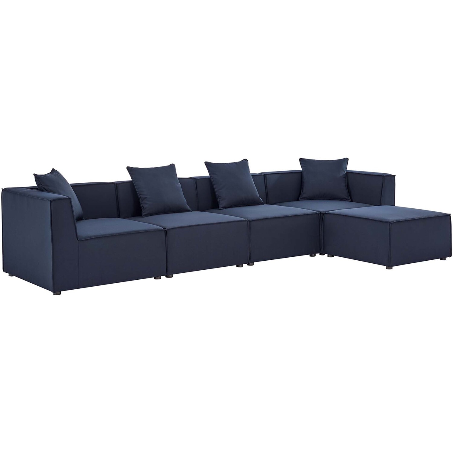 Bring relaxing comfort and modern style to your outdoor living space with the Outdoor Patio Saybrook Upholstered 5-Piece Sectional Sofa. Creating a custom seating area on your porch, deck, poolside, or patio, this all-weather patio sofa features a casual design accented by French piping details. This outdoor sectional sofa is complete with water and UV-resistant fabric upholstery, dense foam padding, and a sturdy aluminum frame with non-marking foot caps. Enjoy good weather and al fresco entertaining with the Saybrook Outdoor Patio Sectional Sofa Collection. Weight Capacity of Each Piece: 300 lbs.Outdoor Patio 5-Piece Sectional Sofa