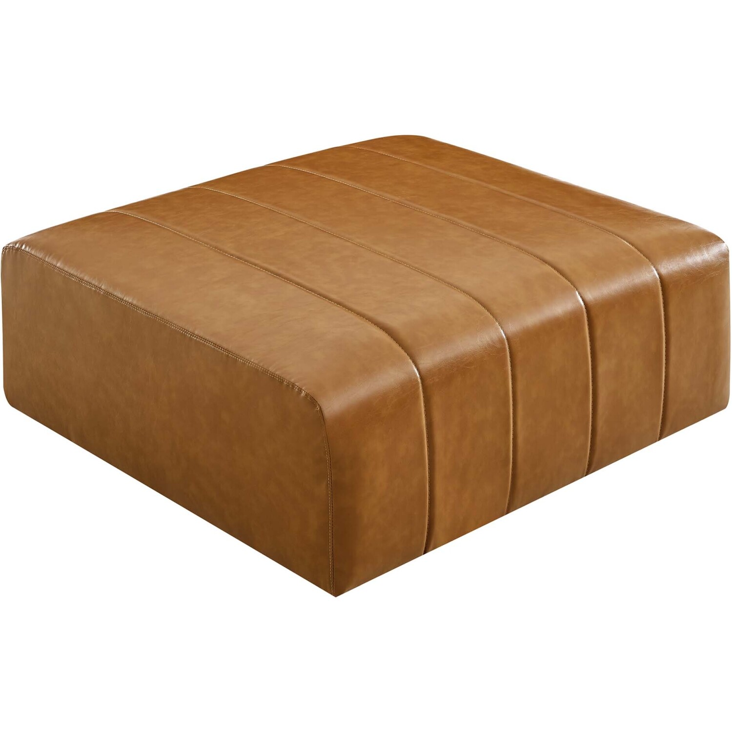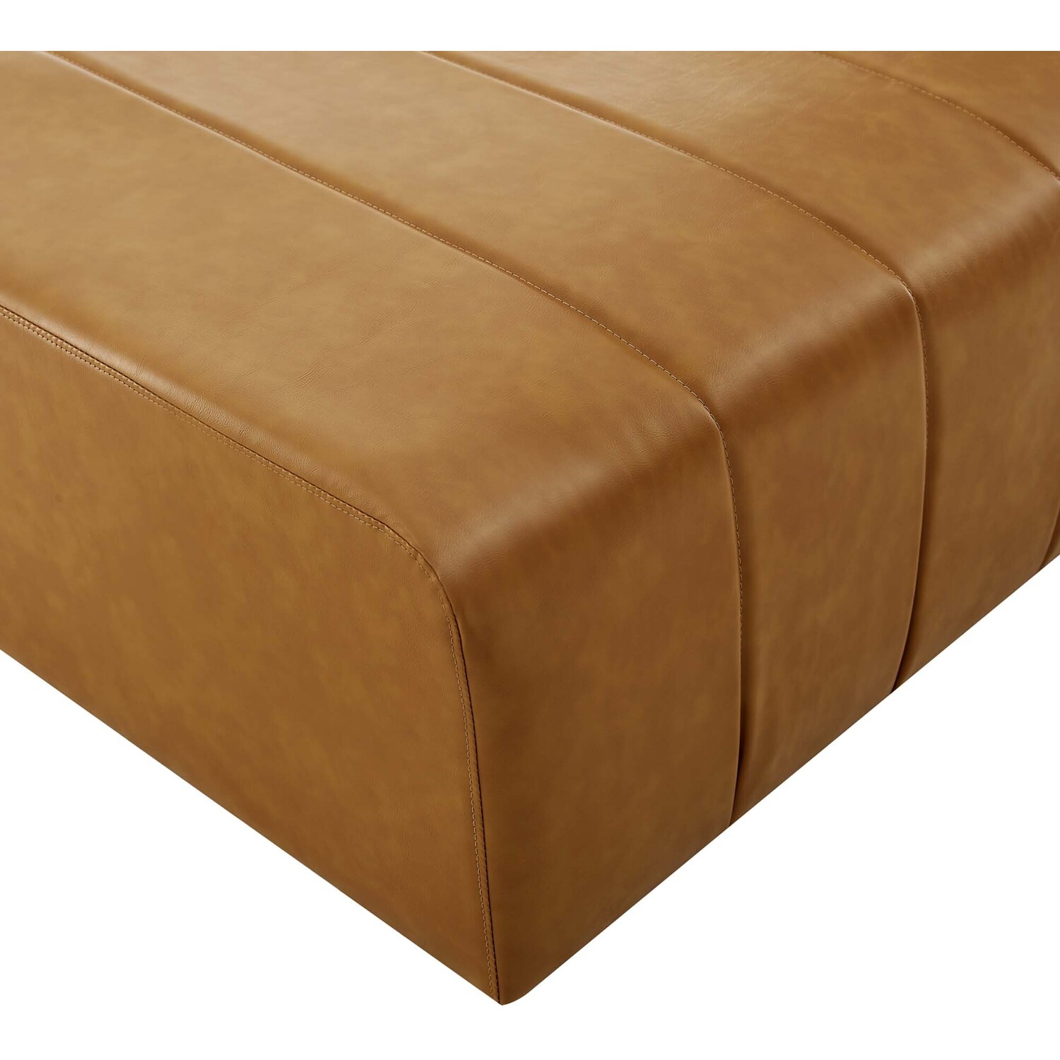 Indulge in comfort and relaxation by creating a custom living room and lounge area with the Bartlett Vegan Leather Ottoman. Featuring subtle channel tufting, rounded corners, and durable vegan leather upholstery, this ottoman brings retro modern style and contemporary allure to your living space. Dense foam padding and a pocket coil spring system in the cushions offer a luxe seating experience with premium support and comfort. With a sturdy frame crafted from solid wood and plywood, this living room ottoman features modular connectors to keep each sectional sofa piece secure and non-marking foot caps to protect flooring. Ottoman Weight Capacity: 331 lbs.Living Room Ottoman