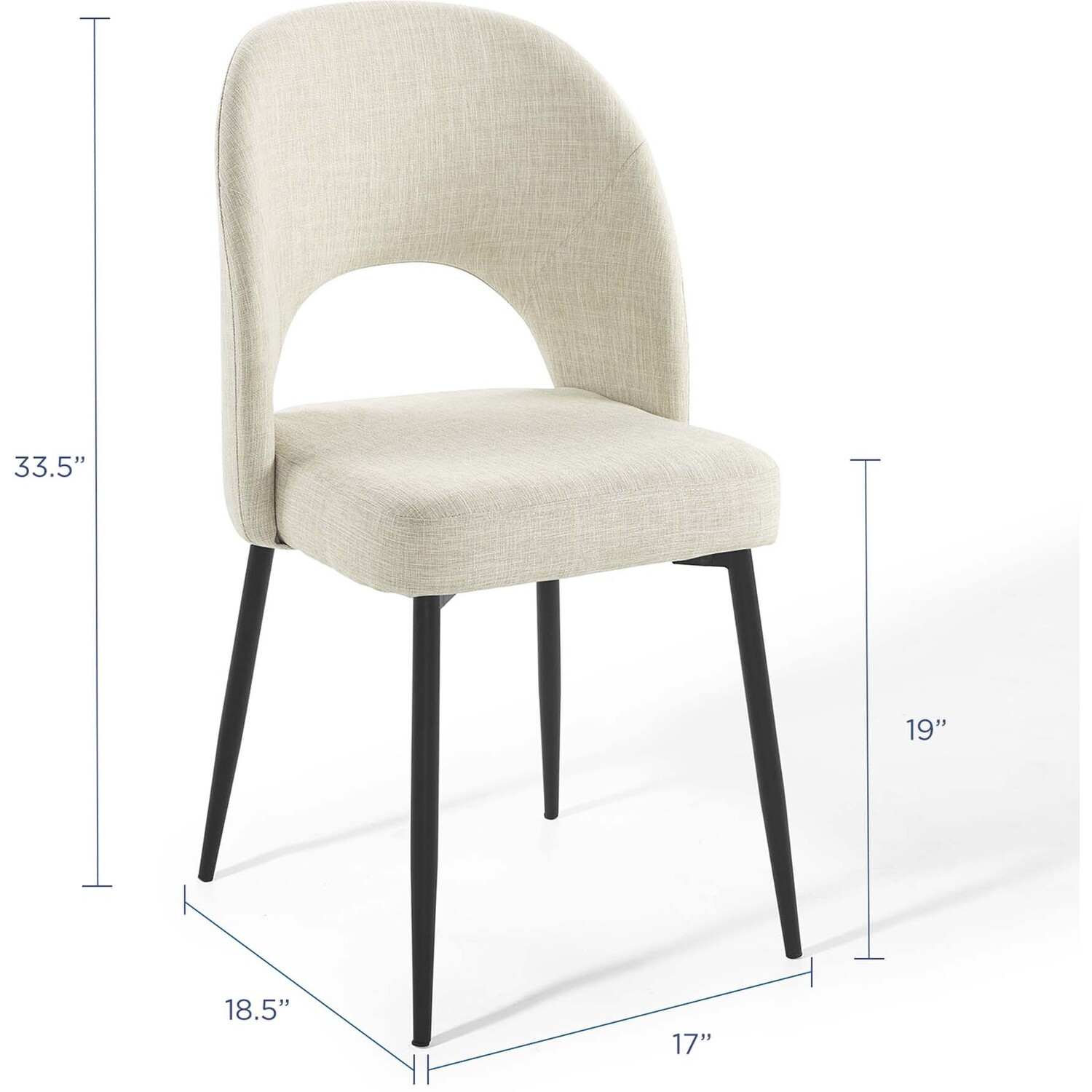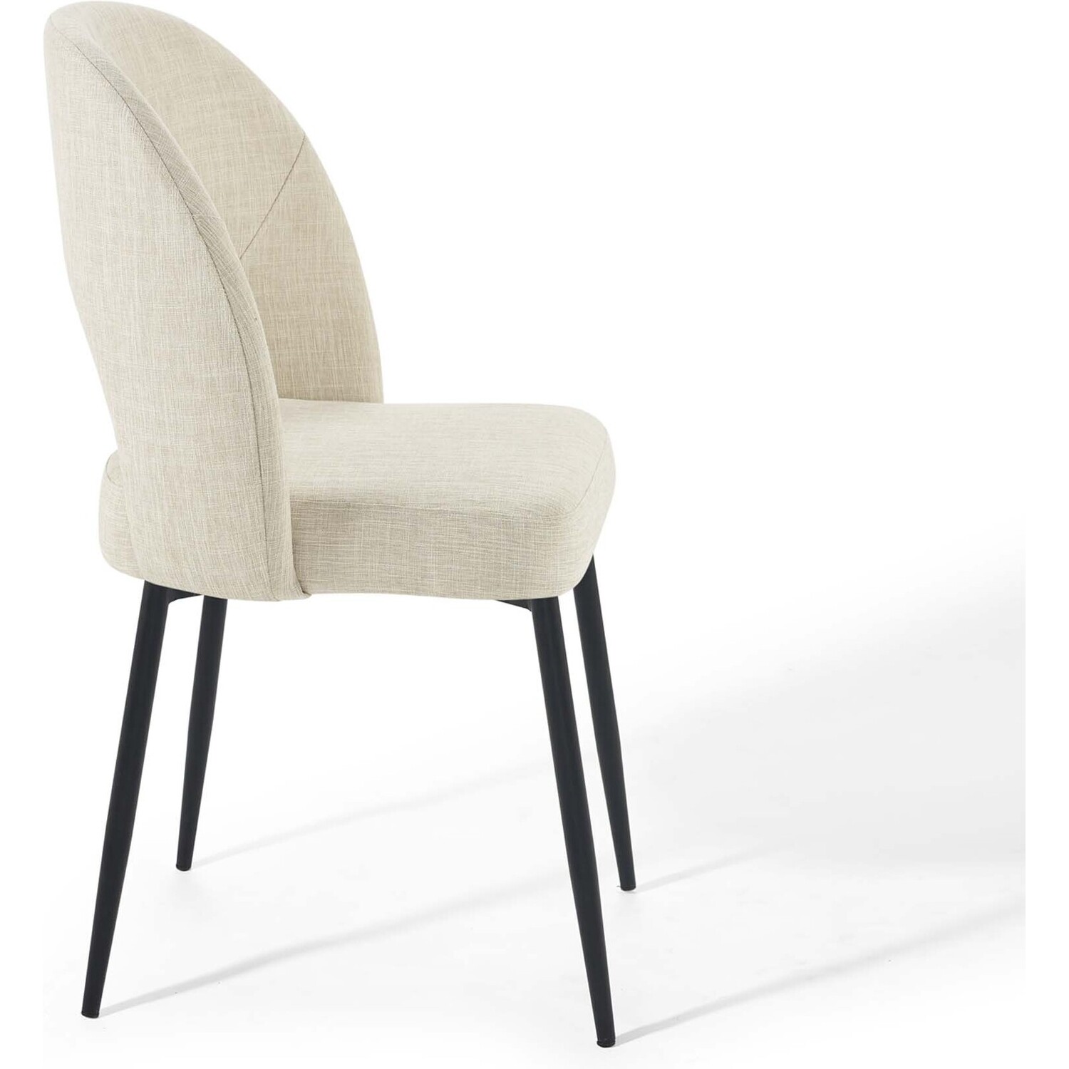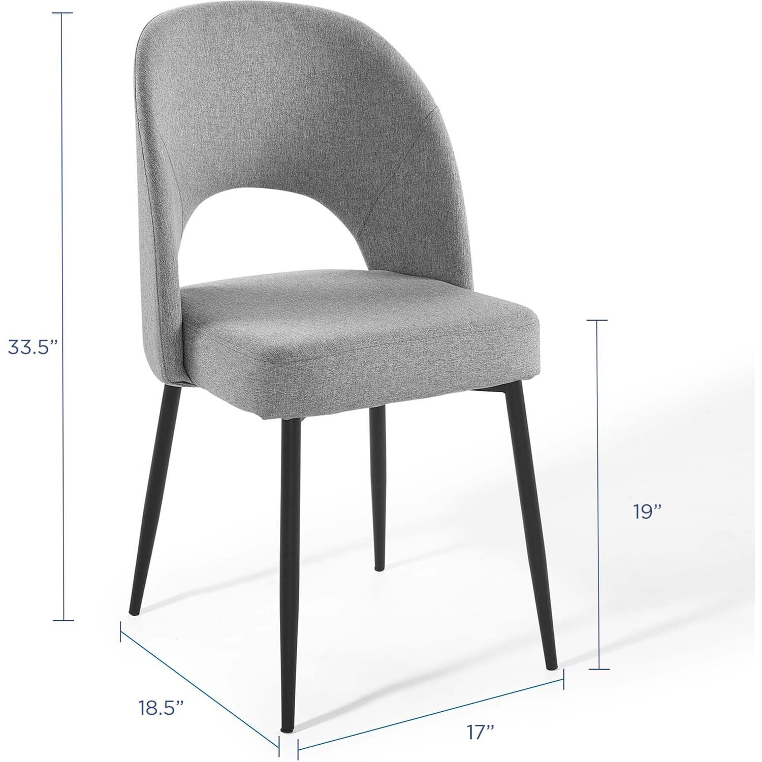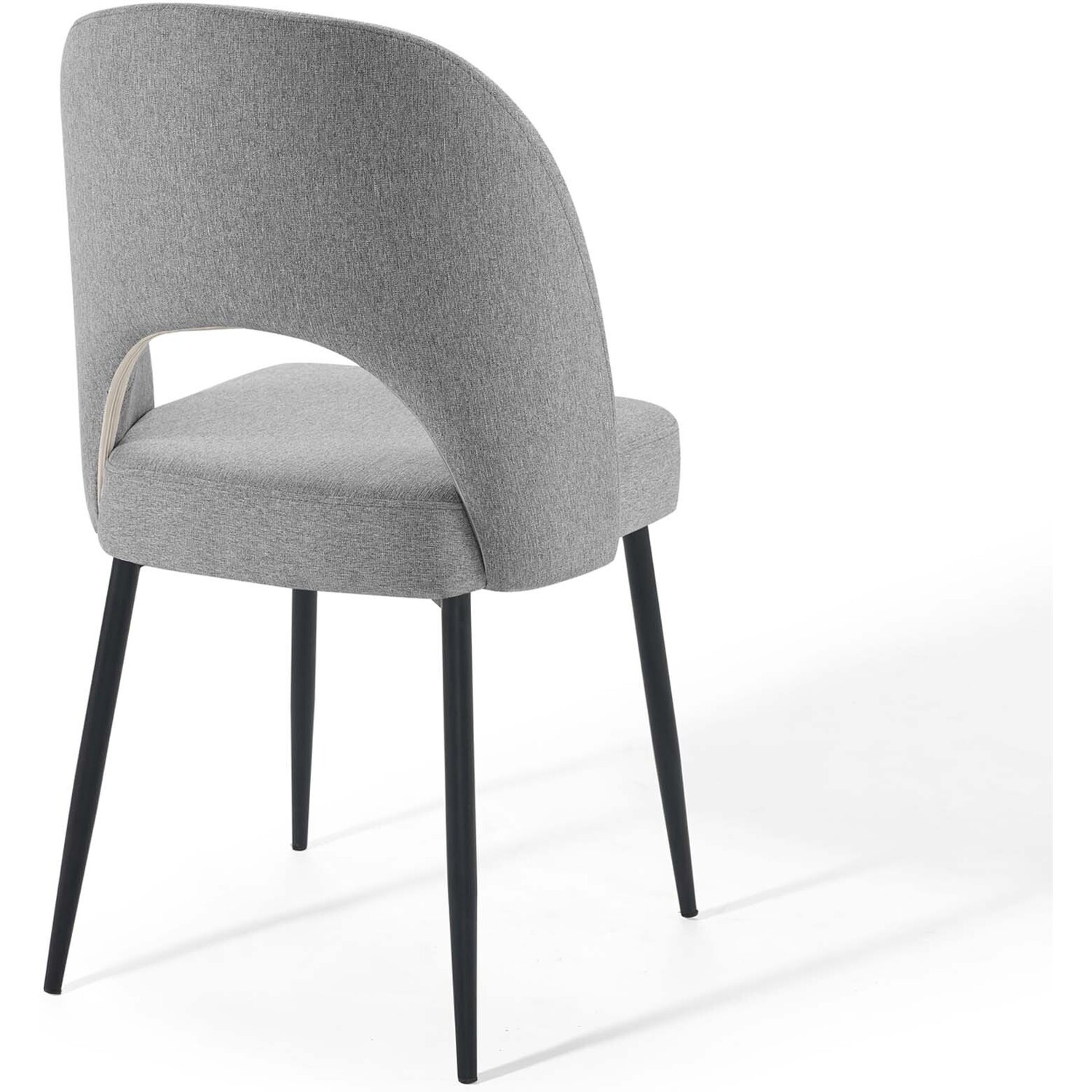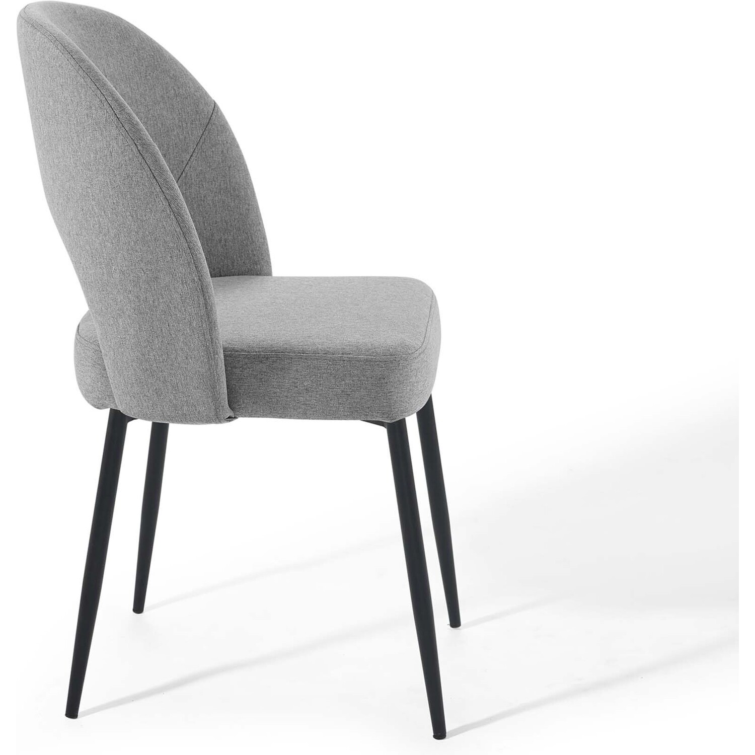 Revel in a stylish update on a classic design. Comprised of densely padded foam that supports the durable and soft fabric upholstery, the Rouse Upholstered Fabric Dining Side Chair offers a luxurious update to mid-century design. This glamorous dining chair is constructed from bentwood and sits atop four matte black stainless steel splayed and tapered legs. A comfortable fabric dining chair with open back design, experience the smooth curves and subtle embrace of this versatile dining room side chair. Chair Weight Capacity: 331 lbs.Dining Room Side Chair