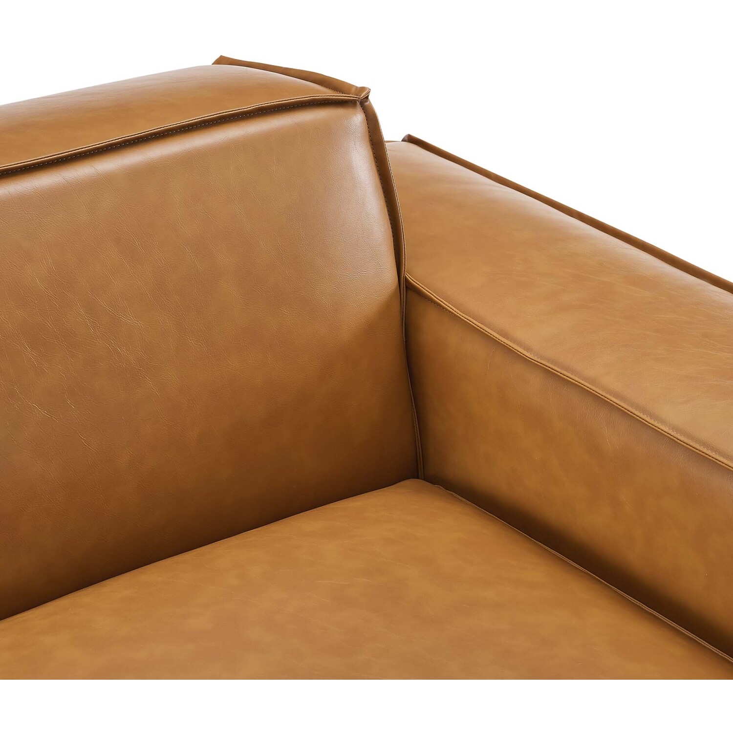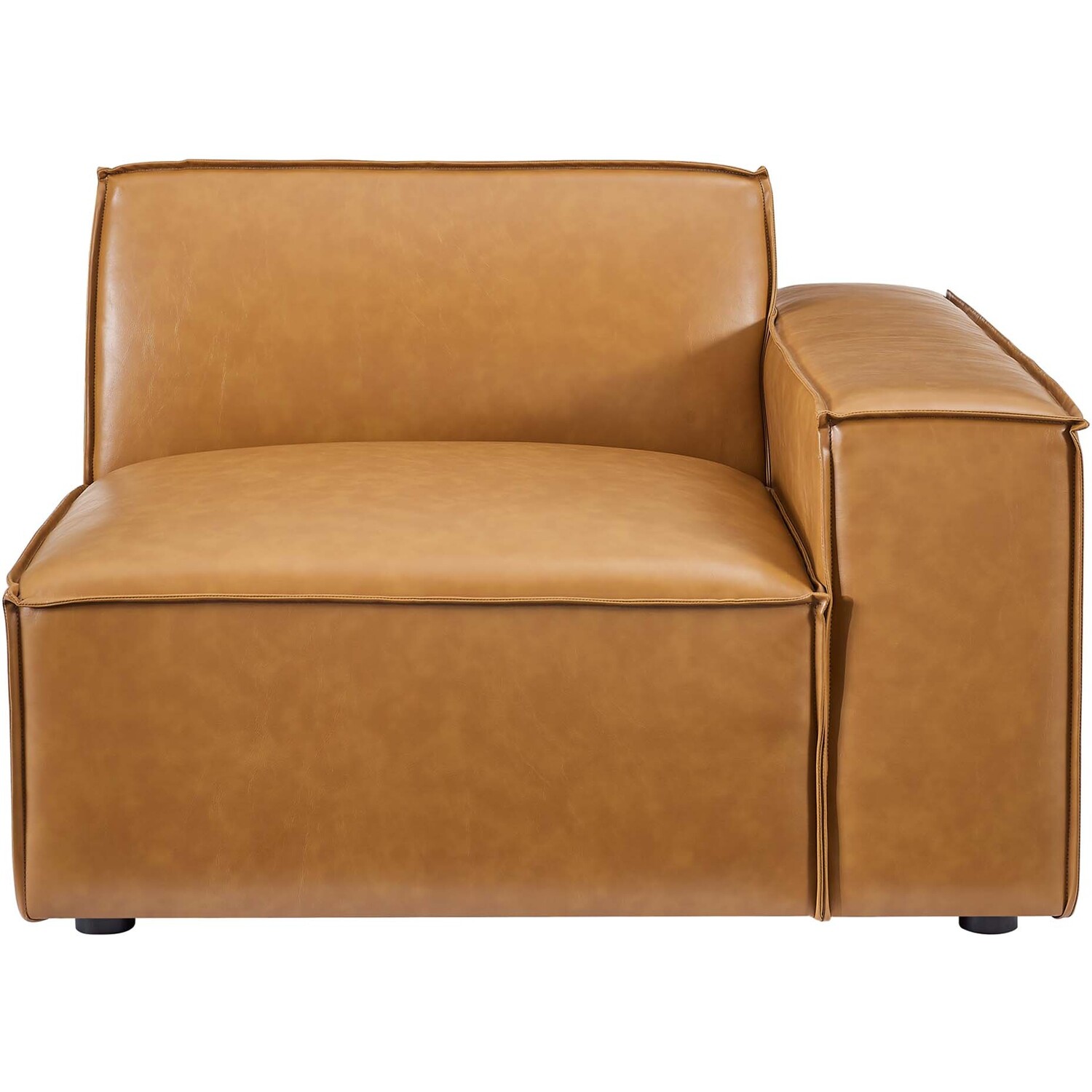 Create your custom living room and lounge area with the Restore Vegan Leather Right-Arm Sectional Sofa Chair. The Restore Right-Arm Chair appeals to minimalist elegance with a crisp design and broad lines accented with French piping details and vegan leather upholstery. Dense foam padding and a pocket coil spring system in the cushions offer a luxe seating experience for your living room and lounge. The Restore Living Room Sofa Chair is solidly constructed from plywood and wood with non-marking foot caps to protect flooring and connectors between modular pieces. Chair Weight Capacity: 440 lbs.Right-Arm Sofa Chair
