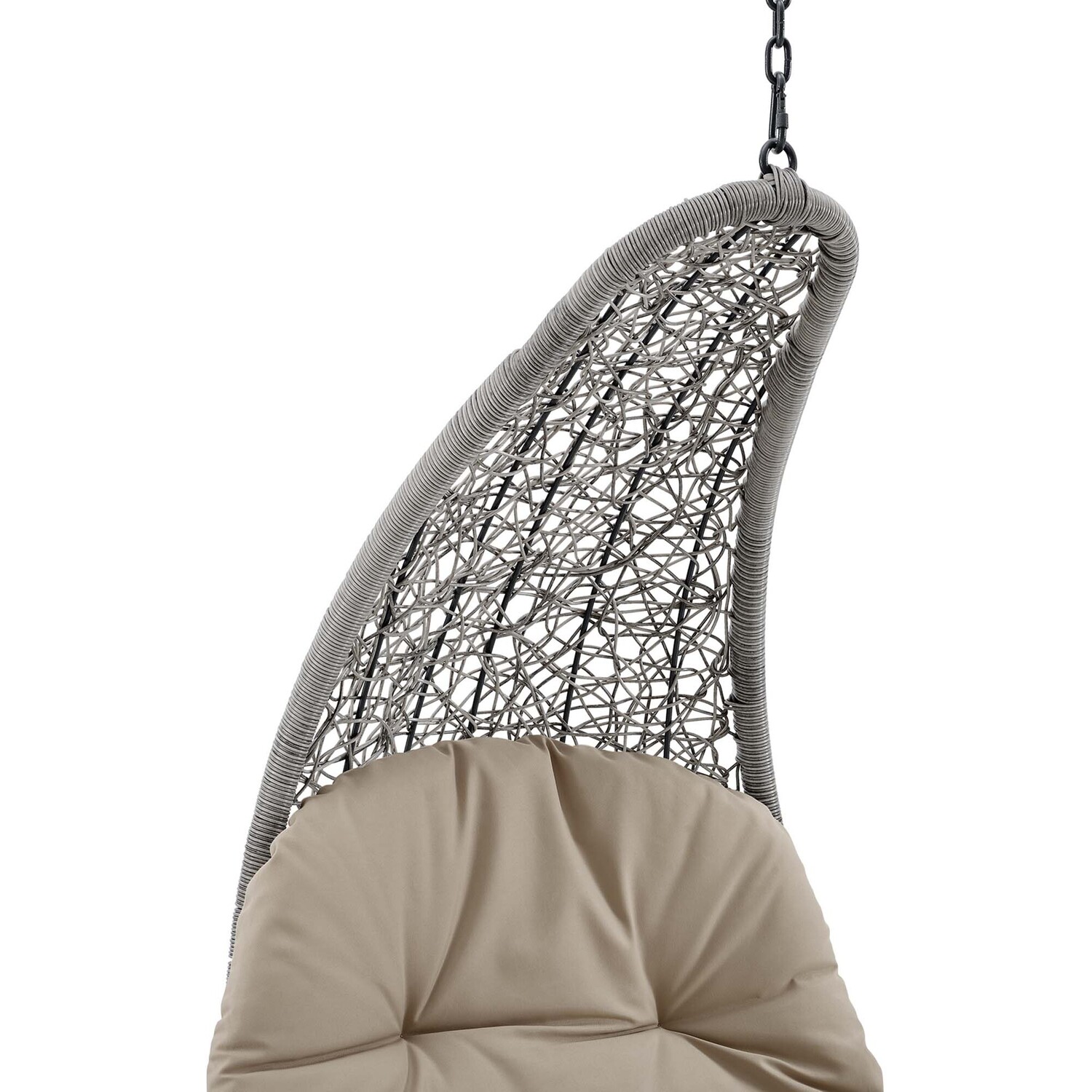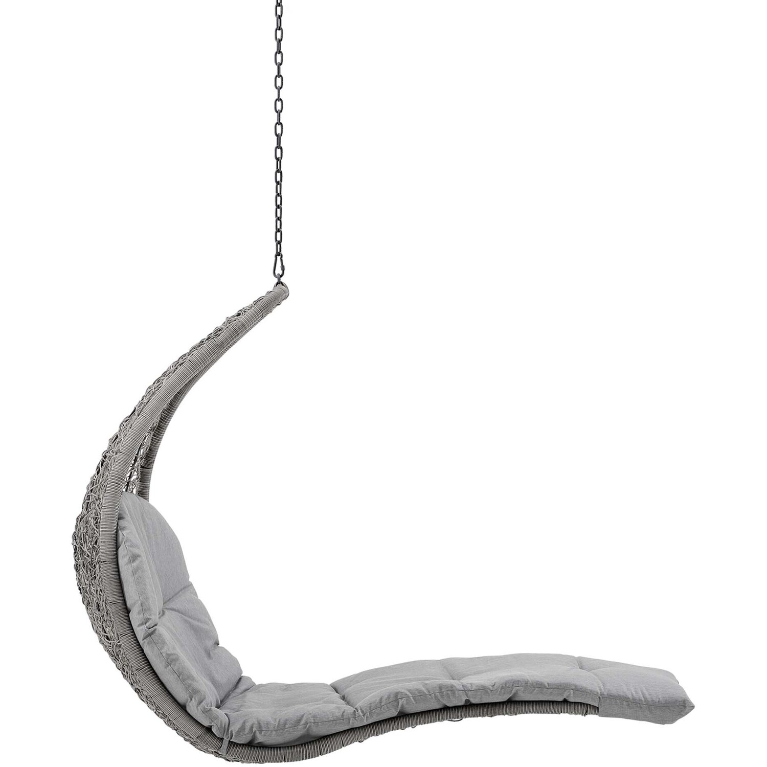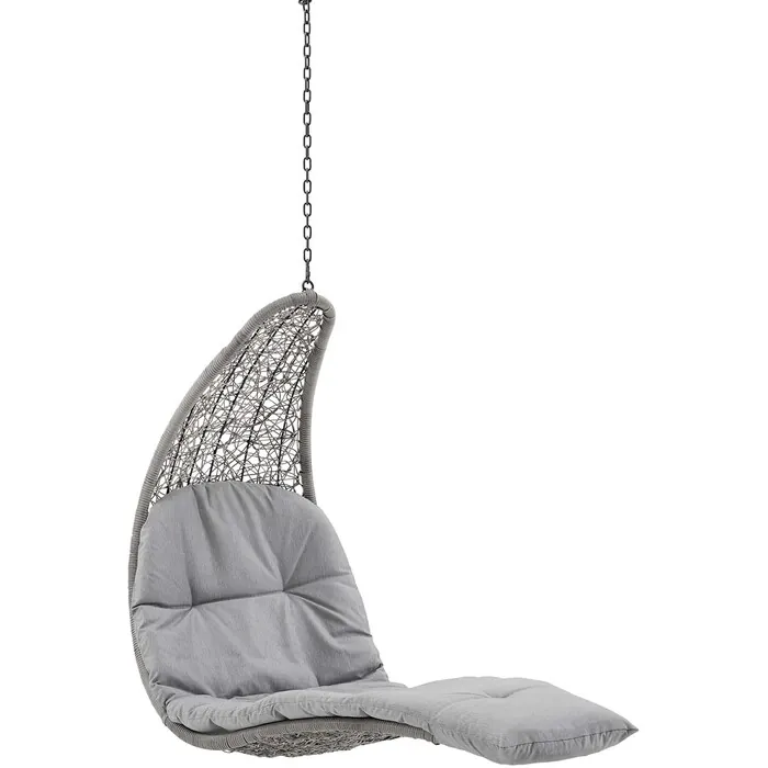Escape to a place of relaxation with the Landscape Outdoor Patio Hanging Chaise Lounge Swing Chair. Wrapped with a textured synthetic rattan light gray and tan weave, this outdoor chaise lounger features a plush padded cushion upholstered in all-weather polyester fabric for lasting comfort. With a sturdy metal hanging chain, Landscape's organic design and sleek profile bring contemporary style to your outdoor patio, backyard, porch, or poolside. Sit back and relax with your feet up while enjoying warm weather and the calming movement of this outdoor porch swing. Hanging Weight Capacity: 264 lbs.Outdoor Patio Chaise Lounge Swing Chair