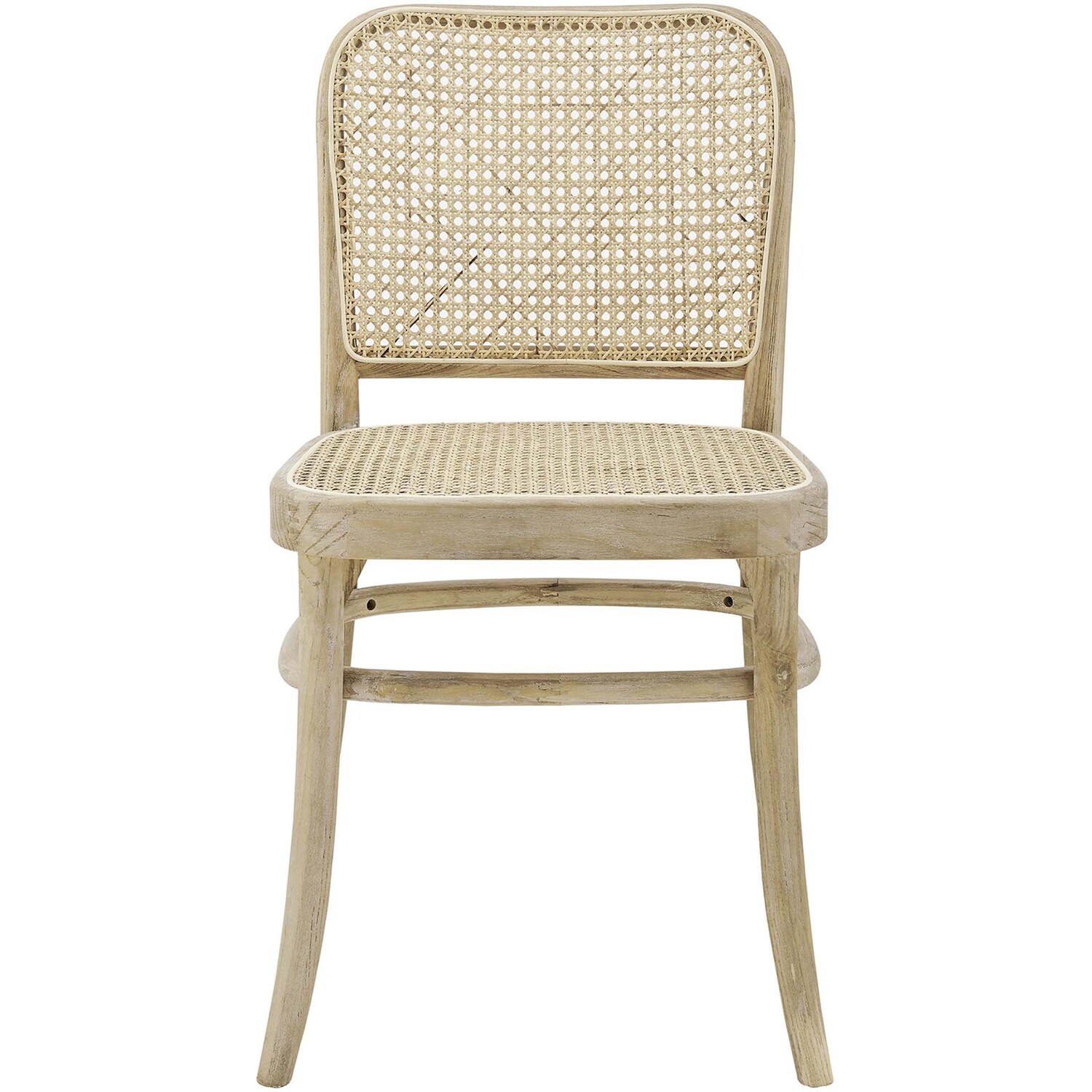Blend rustic farmhouse charm and coastal serenity in your dining space with the Winona Dining Side Chair. Featuring a woven rattan cane backrest and seat, this dining chair instills vintage modernity around your dining table or as an accent chair in your living space. This dining side chair is complete with a durable elm wood frame with rounded edges and a stretcher for added interest. Includes non-marking foot caps. Weight Capacity: 330 lbs.Modern Farmhouse Dining Side Chair
