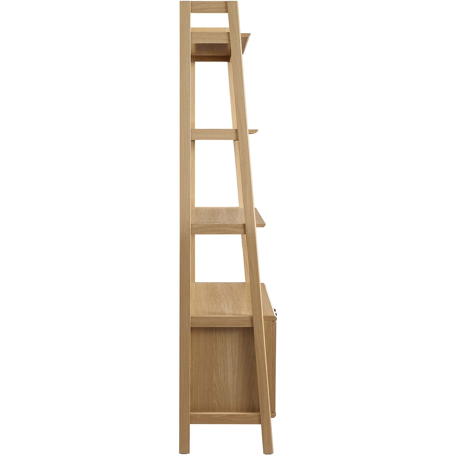 Stack your favorite reads and display home accessories with the Bixby 21" Bookshelf. Featuring a slim, tiered silhouette, this bookcase blends organic wood grain with the sleek lines of the shelves to create beautiful contrast. With plenty of room for storage and display, this bookshelf is complete with three spacious shelves and a concealed storage area on the bottom to keep living room or home office essentials out of sight. This display stand is crafted with particleboard and MDF for a sturdy construction that's built to last.Tiered Bookshelf