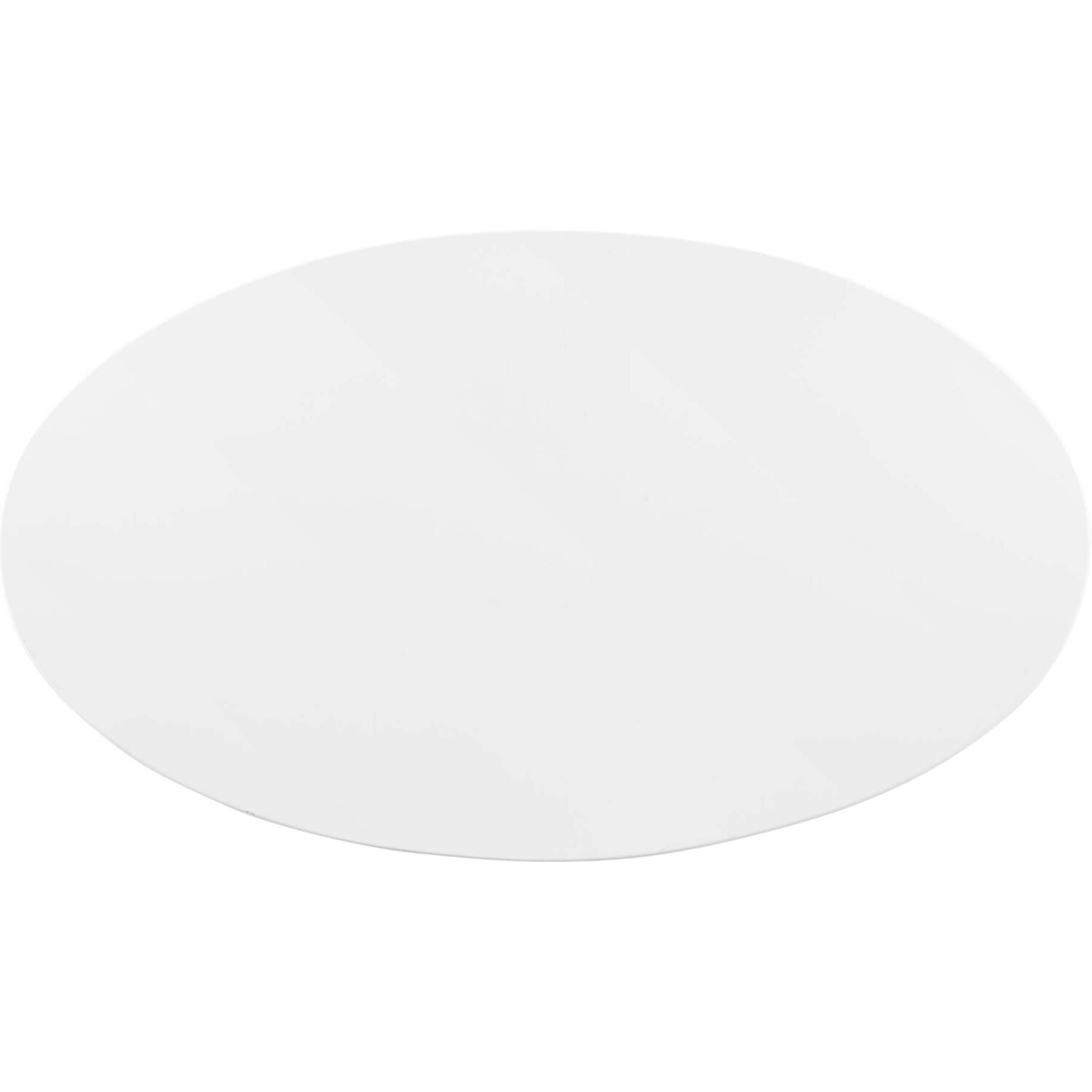 Gather family and friends for good food and conversation around the Verne Dining Table. Bringing modern influence and mid-century inspiration to your dining space, this pedestal table reflects an organic shape. Perfect for entertaining or everyday dining, this dining table rests on a polished gold metal pedestal base and features a 48" oval tabletop crafted with MDF and an easy-to-clean white coating. Non-marking foot ring to protect flooring. Assembly required.Modern Dining Table