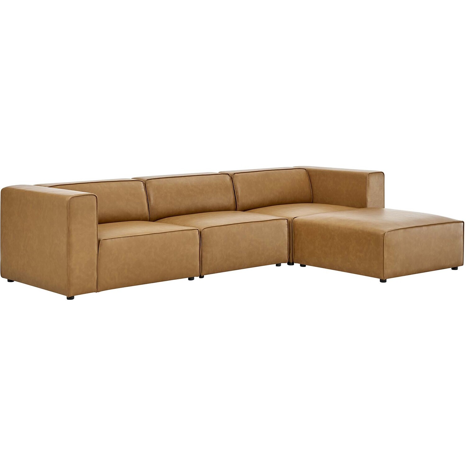 Kick back and relax with the Mingle Vegan Leather Sofa and Ottoman Set. Designed to wash away the hindrances that obstruct visual space, this three-seater sofa and ottoman come expansively designed with generous seating and dense foam padding that allows for just the right amount of giving. Mingle easily positions according to the needs of the moment and features rich vegan leather upholstery with elegant piping and plastic legs for steady support. Host animated living or lounge room get-togethers with a modular sectional seating assortment perfect for contemporary modern décors.Contemporary Modern Sofa and Ottoman