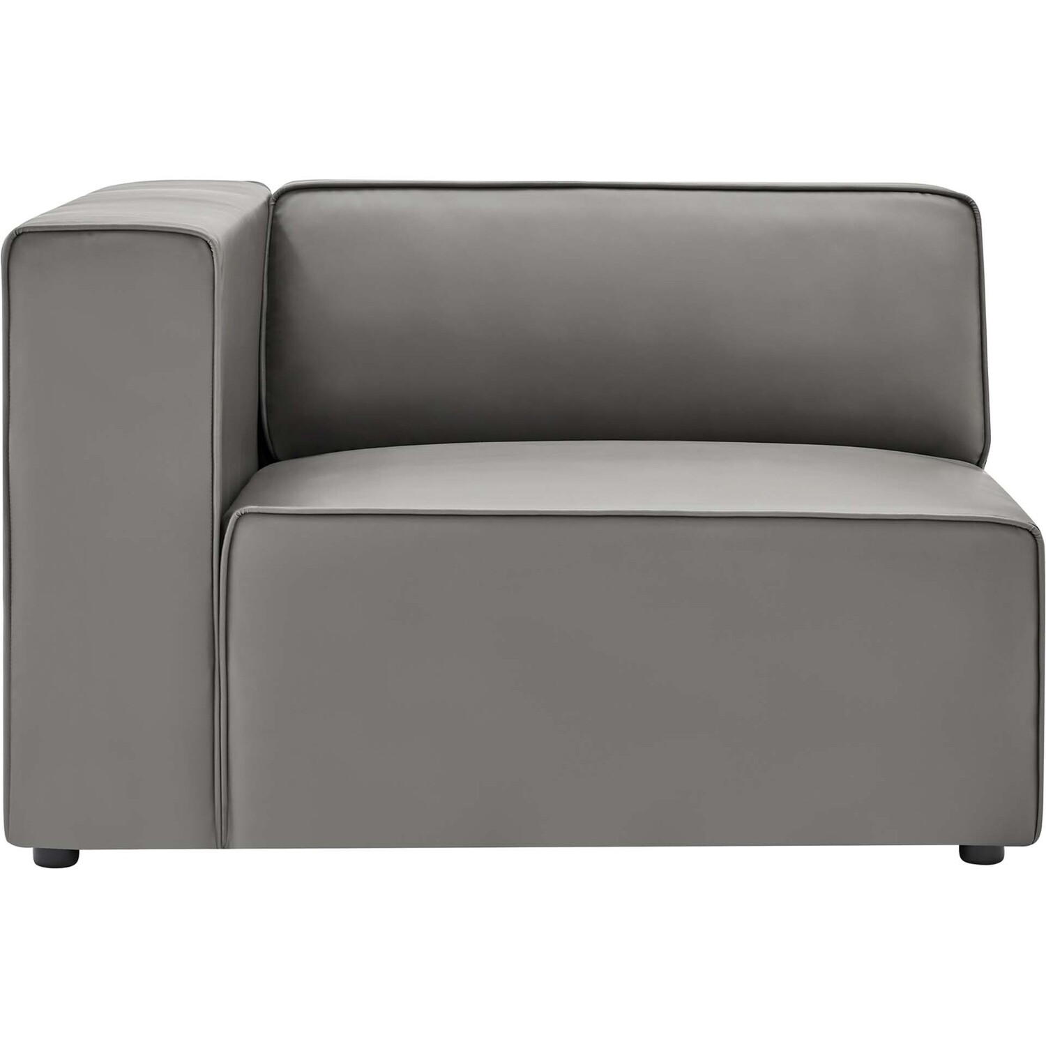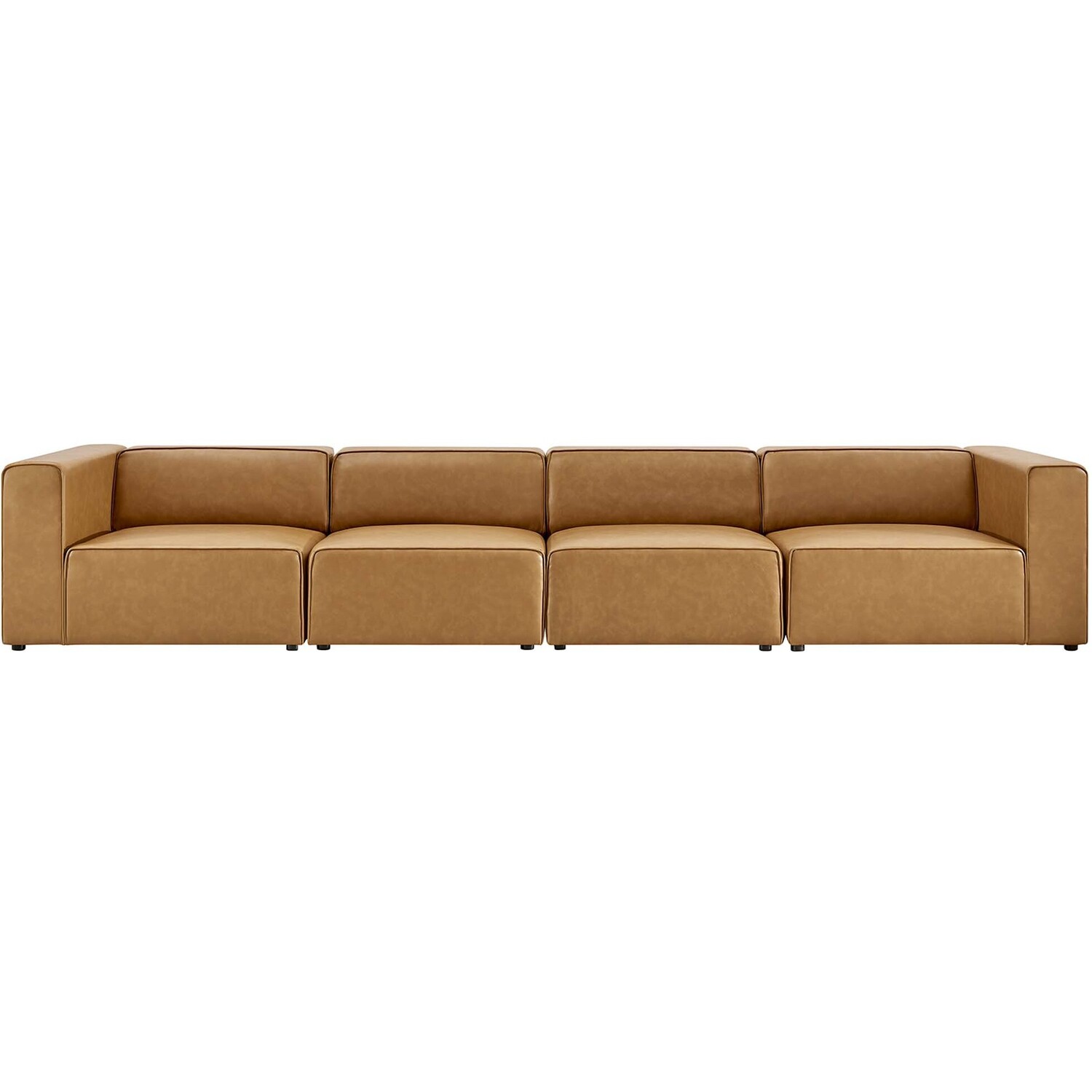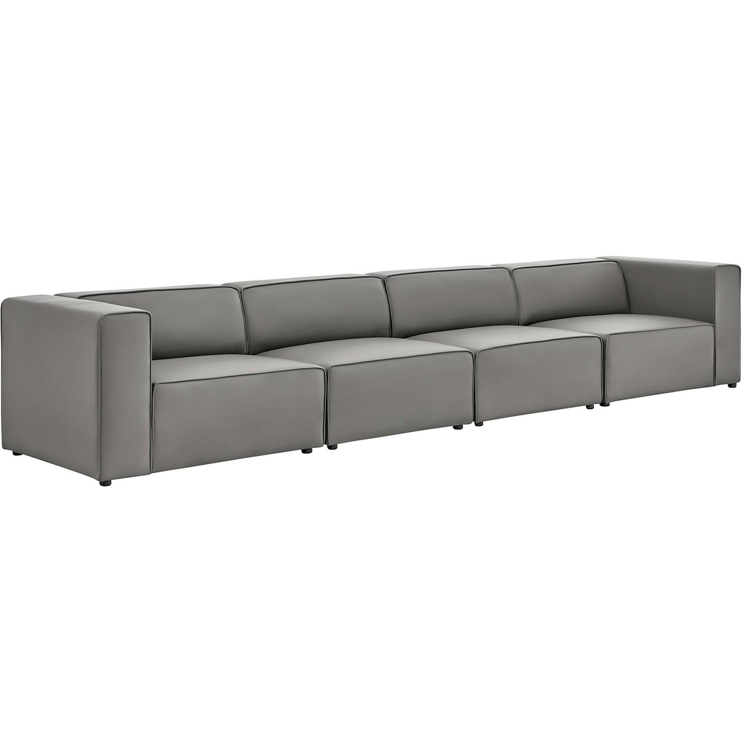 Kick back and relax with the Mingle Vegan Leather 4-Piece Sectional Sofa. Designed to wash away the hindrances that obstruct visual space, this four-seat sofa comes expansively designed with generous seating and dense foam padding that allows for just the right amount of giving. Mingle easily positions according to the needs of the moment and features rich vegan leather upholstery with elegant piping and plastic legs for steady support. Host animated living or lounge room get-togethers with a modular sectional seating assortment perfect for contemporary modern décors.Contemporary Modern Sofa