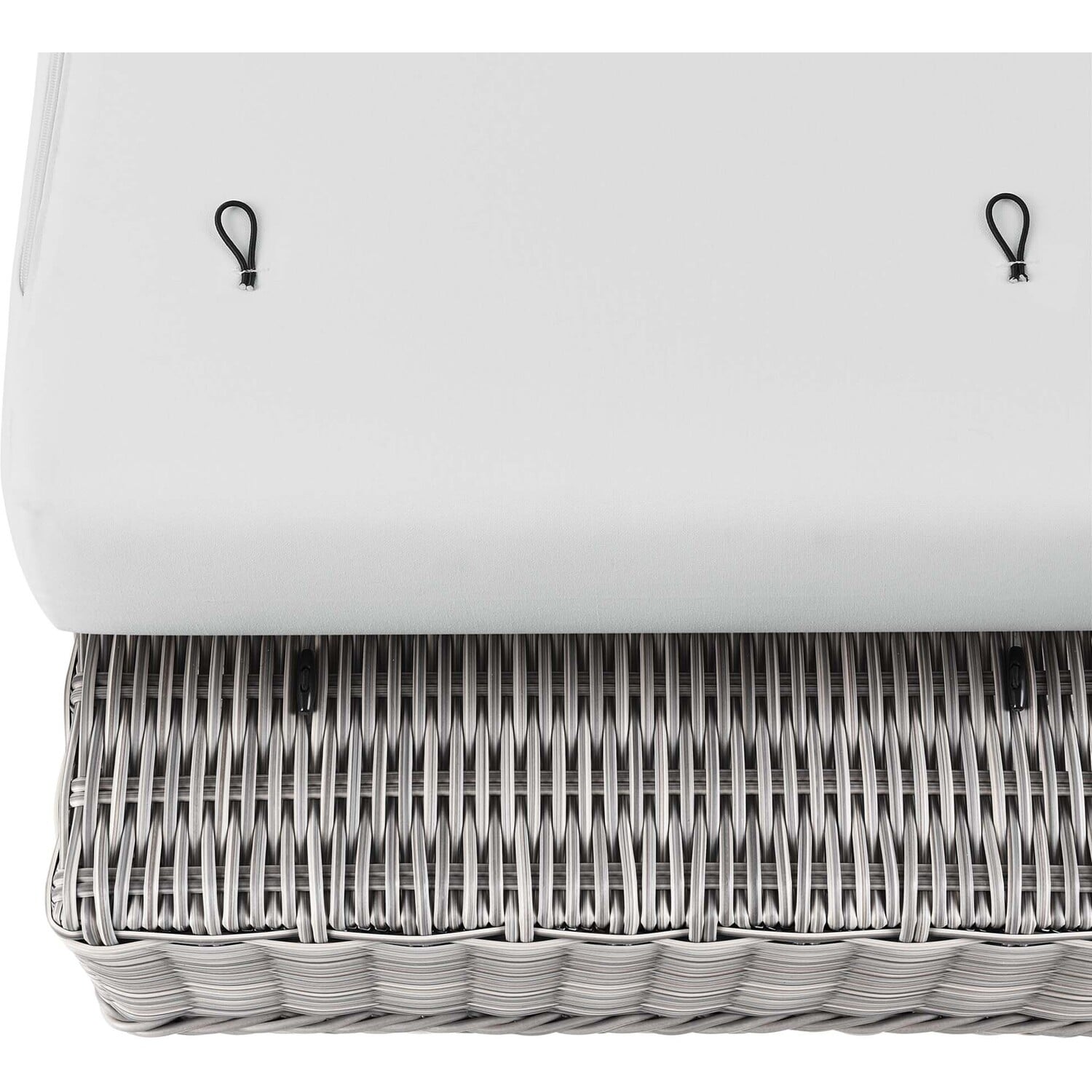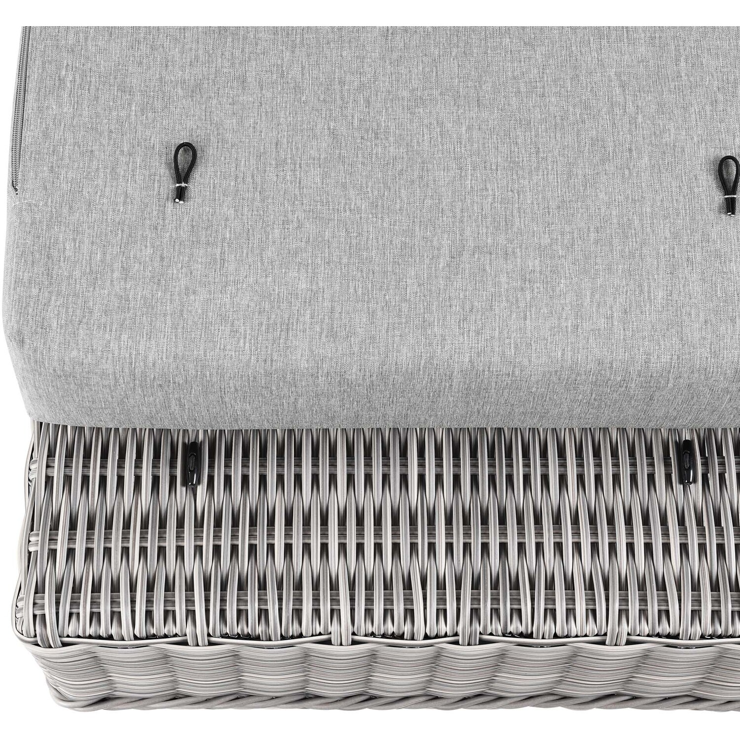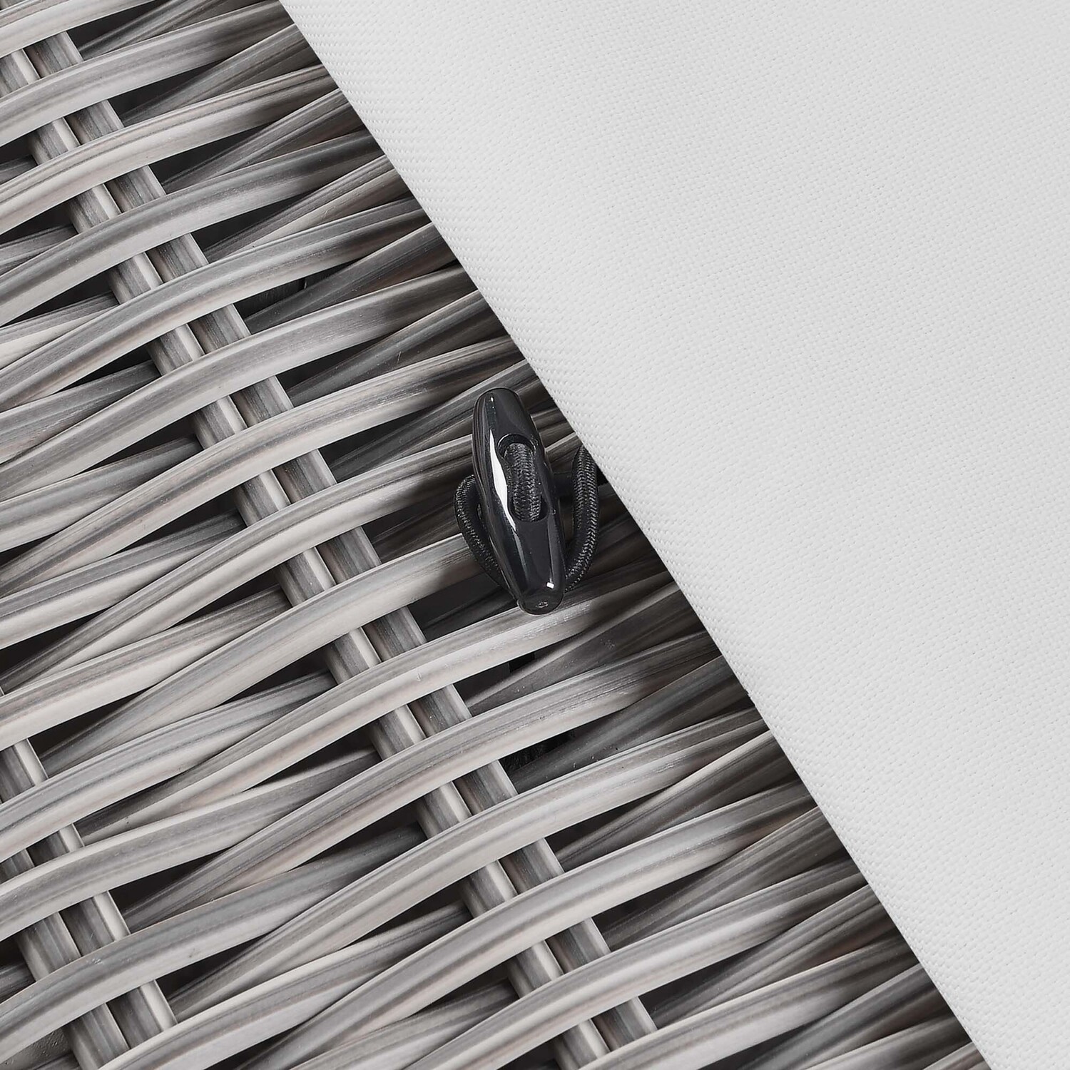Enjoy fresh air and alfresco relaxation with the Conway Outdoor Patio Wicker Rattan Ottoman. Wrapped in UV-resistant light gray synthetic wicker rattan, this patio ottoman boasts organic texture and a neutral hue that brings a calming presence to your outdoor space. The frame of this outdoor ottoman is crafted with durable powder-coated aluminum and rests on L-shaped legs with plastic foot glides. A thick foam padded cushion covered with a removable, water-resistant polyester cover offers a comfortable seat and affixes securely to the ottoman with a cord tension attachment. Trending aesthetics and a classic design define this outdoor patio furniture collection making it a beautiful addition to any outdoor space including the backyard, patio, porch, balcony, or poolside. Assembly required. Patio Ottoman Weight Capacity: 300 lbs.Outdoor Patio Ottoman