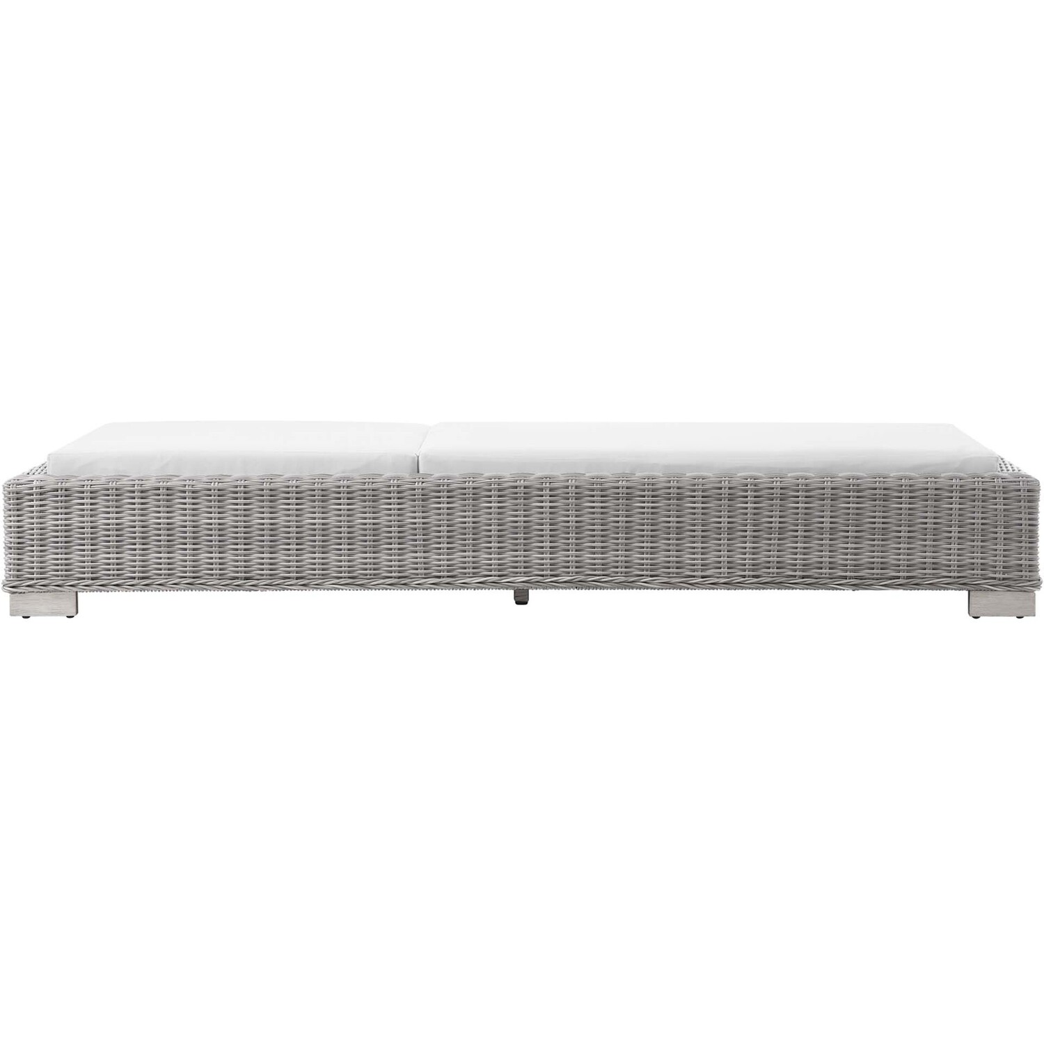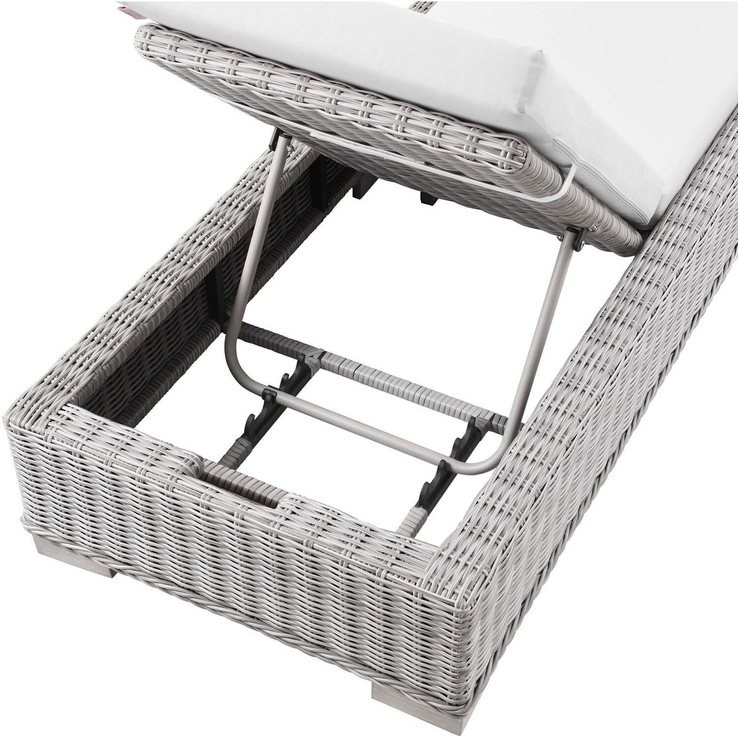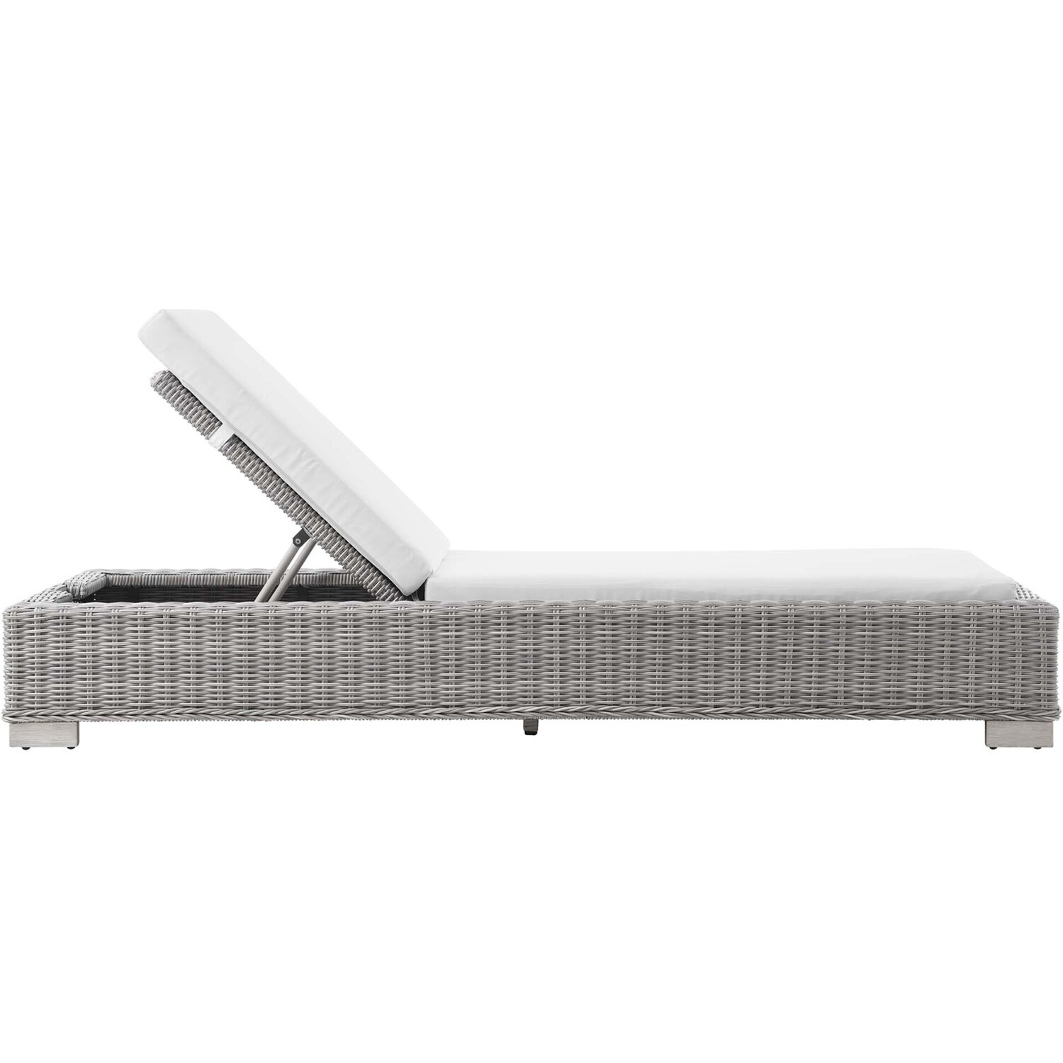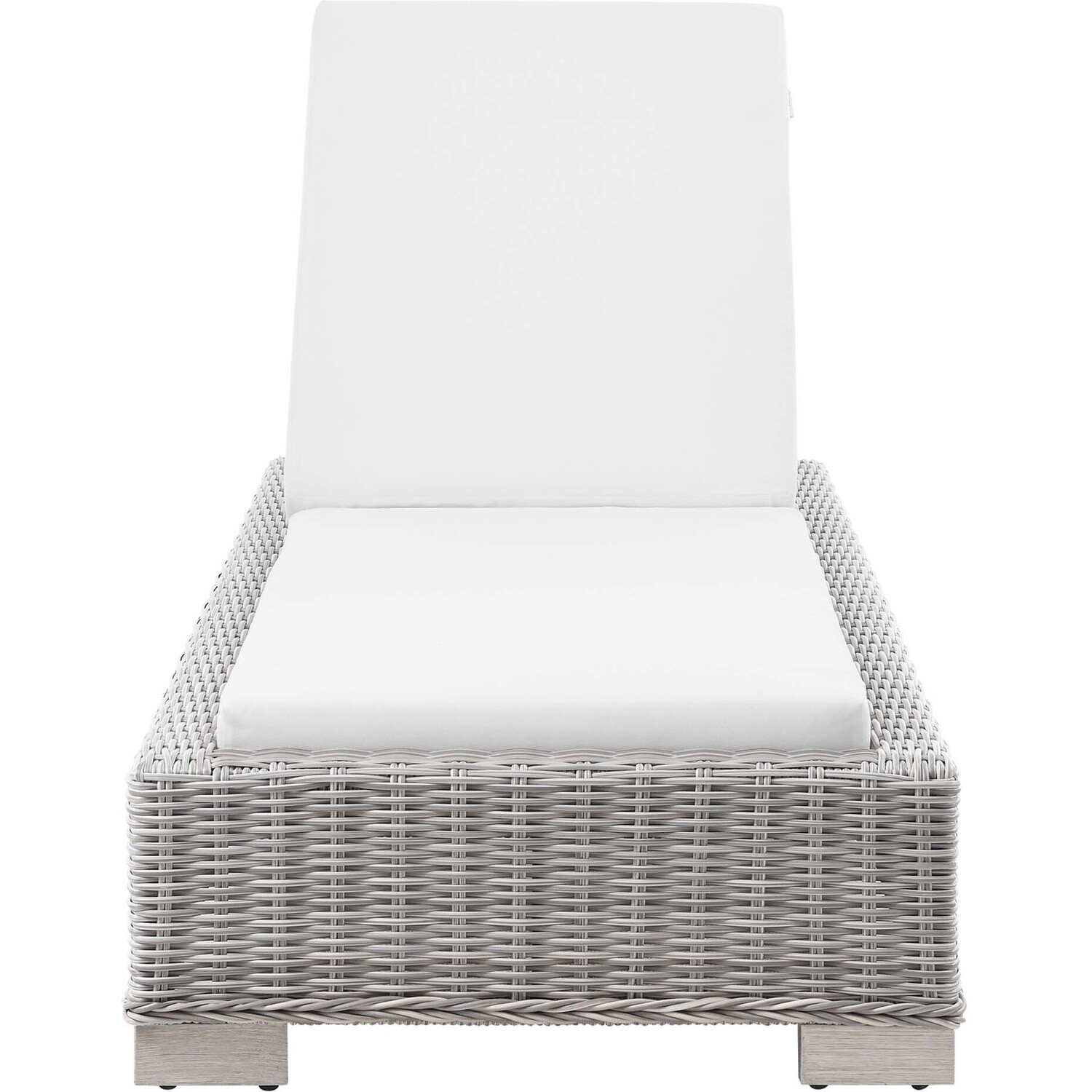 Enjoy fresh air and alfresco relaxation with the Conway Outdoor Patio Wicker Rattan Chaise Lounge Chair. Wrapped in UV-resistant light gray synthetic wicker rattan, this lounge chair boasts organic texture and a neutral hue that brings a calming presence to your outdoor space. With four different reclining positions, the frame of this outdoor chaise lounge is crafted with durable powder-coated aluminum and rests on L-shaped legs with plastic foot glides. Thick foam padded cushions covered with removable, water-resistant polyester covers offer a comfortable seat and affix securely to the lounge chair with cord tension attachments. Trending aesthetics and a classic design define this outdoor patio furniture collection making it a beautiful addition to any outdoor space including the backyard, patio, porch, balcony, or poolside. Assembly required. Chaise Lounge Weight Capacity: 600 lbs.Outdoor Patio Chaise Lounge