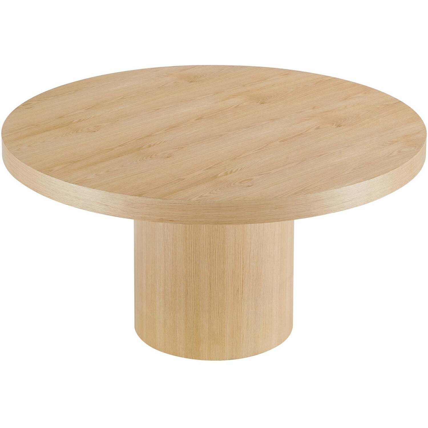 Embrace warm memories and genuine connection while gathered around the Gratify 60" Dining Table. Commanding a bold presence in your dining room, this round table features a sturdy MDF construction with beautiful wood grain veneer to complement its strikingly simplistic modern design. This 60" dining table comfortably accommodates up to 6 people. Includes non-marking foot pads to protect flooring. Assembly required. Weight Capacity: 330 lbs.Modern Dining Table