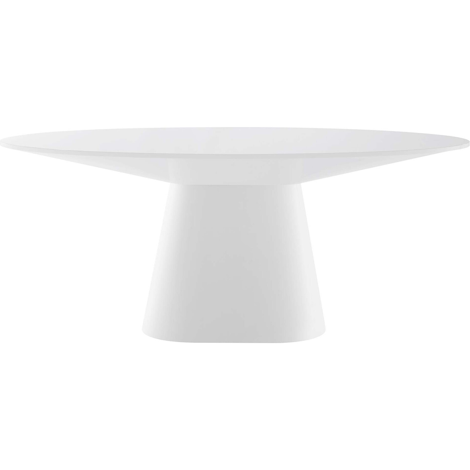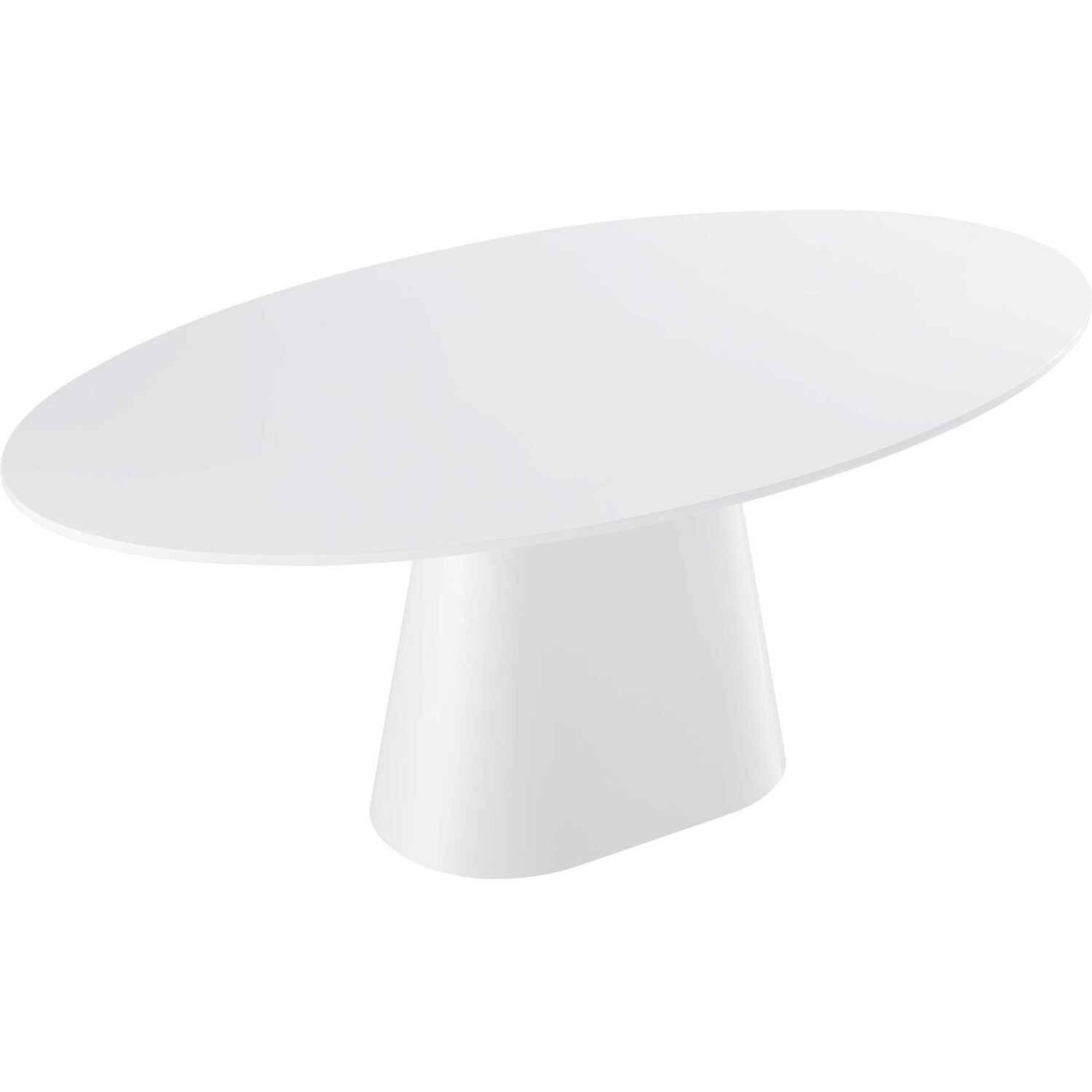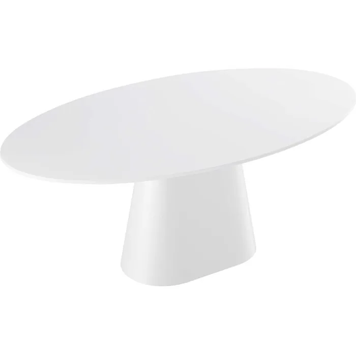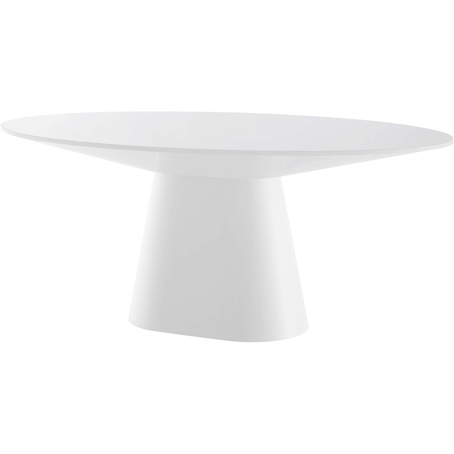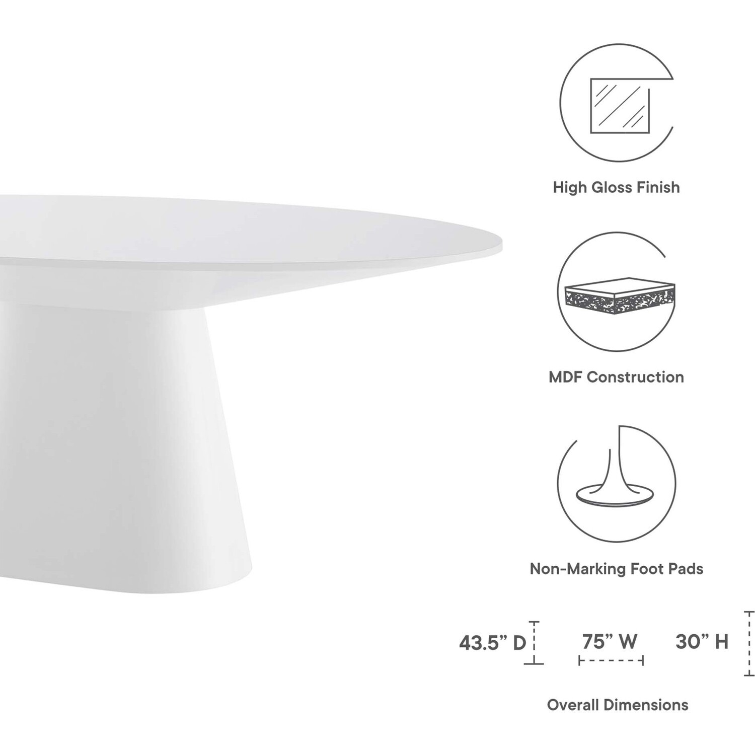 Gather around the Provision 75" Dining Table to enjoy good food and conversation with friends and loved ones. Make a striking statement in your dining space with this bold yet simplistic modern design. This oval table features a sturdy MDF construction with a beautiful high gloss finish. This 75" dining table comfortably accommodates six dining chairs. Includes a non-marking felt mat to protect flooring. Assembly required. Weight Capacity: 330 lbs.Modern Dining Table