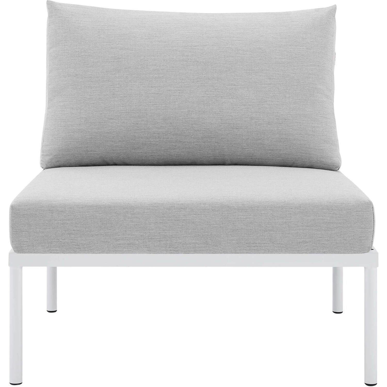 Engage life with Harmony Outdoor Patio Armless Chair. Enjoy casual conversation under the open sky with an all-weather waterproof outdoor chair from a versatile furniture set that delivers an exceptional outdoor porch, patio, balcony or garden experience. An exceptional modern outdoor furniture set that exceeds expectations, Harmony Patio Armless Chair comes with synthetic rattan seat back weave, square powder coated aluminum bases, Sunbrella® cushions, and non-marking foot caps. An outside sectional armless chair that arranges according to the spontaneous needs of your guests, set your sights on open and inspired moments with the Harmony Outdoor Patio Collection.All-Weather Sunbrella® Fabric