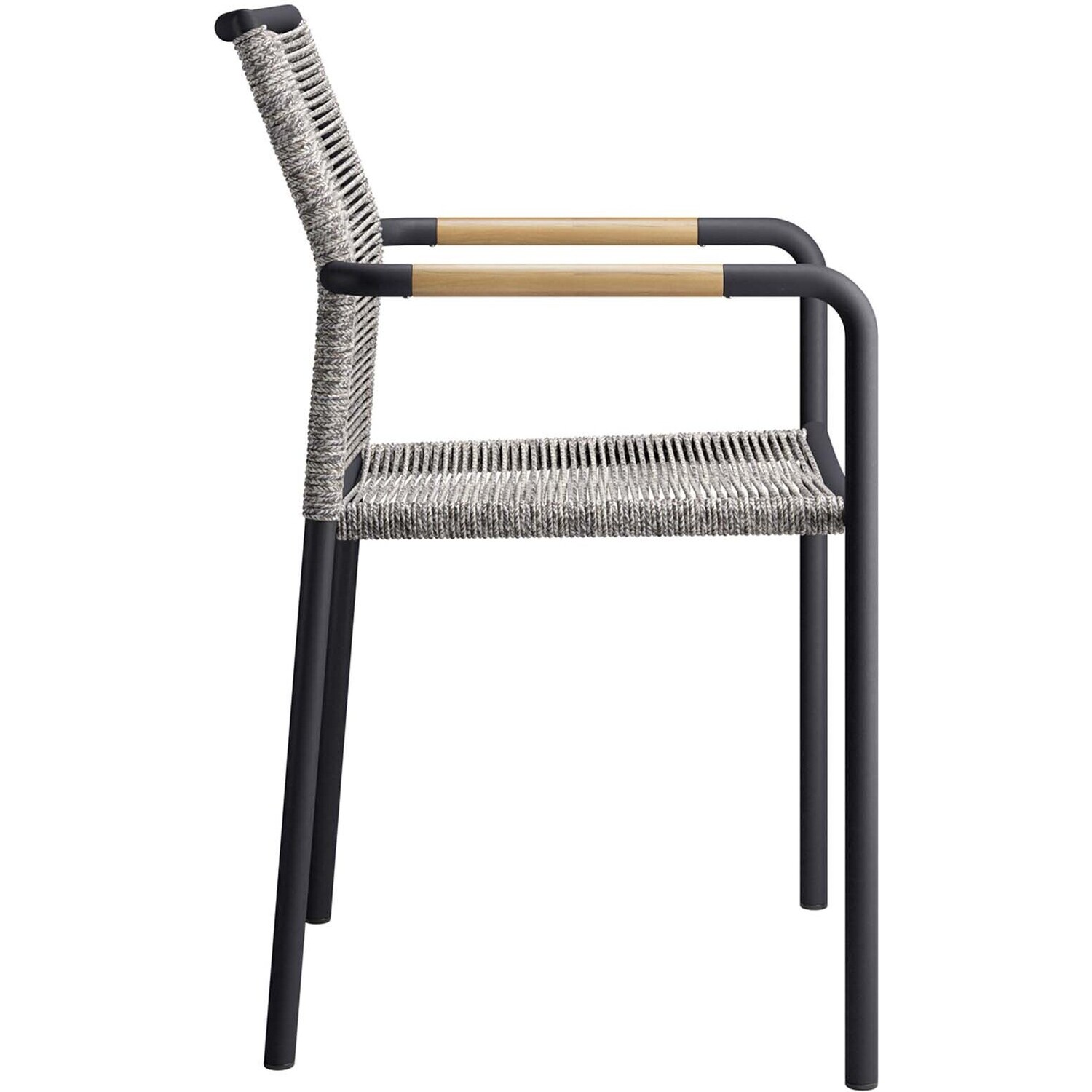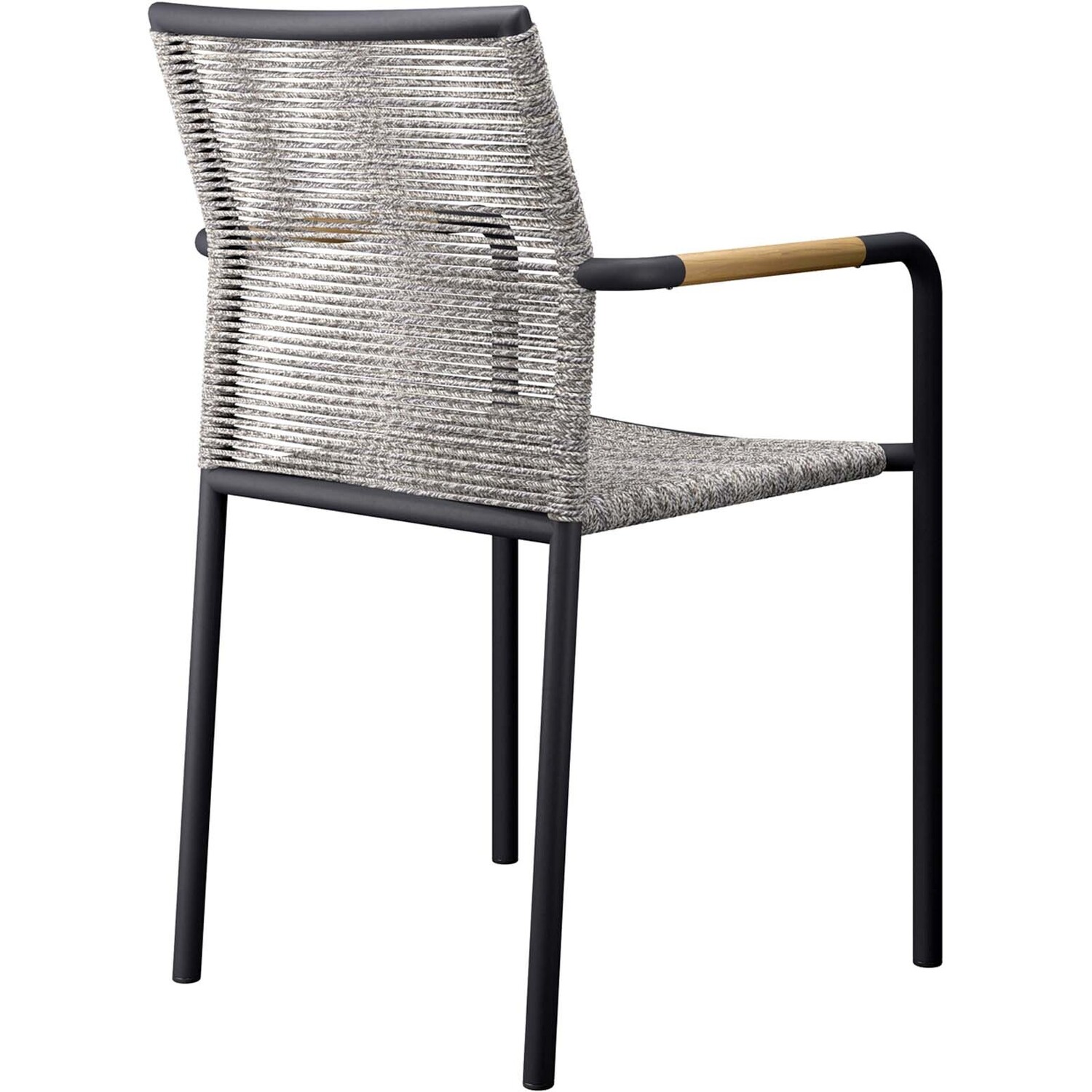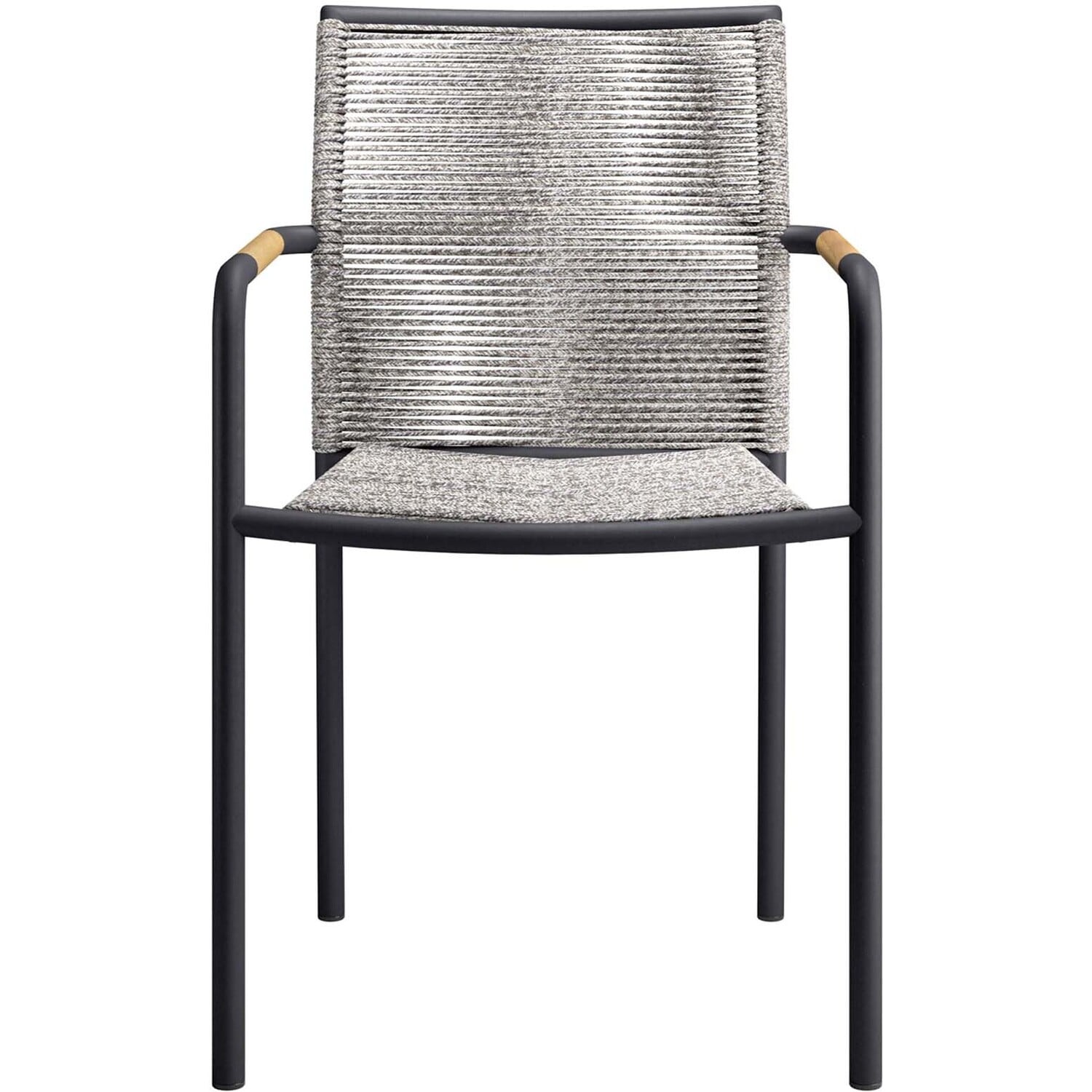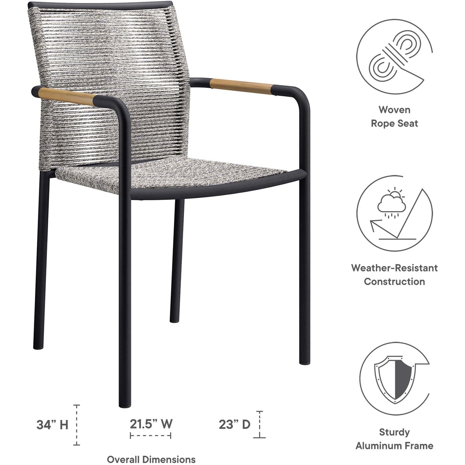 Enjoy al fresco dining on your patio, deck, or in the backyard with the Serenity Outdoor Patio Aluminum Set of Two Dining Armchairs. This contemporary patio armchair set, constructed from powder-coated aluminum, is the picture of strength and resilience at your outdoor dining table. The sleek silhouette and tightly woven rope create a supportive and comfortable seat and backrest for lingering summer suppers. With straight legs that have non-marking foot pins to protect your deck or patio floors, these UV and water-resistant armchairs are easy to maneuver and place poolside or in the backyard shade. Weight Limit: 500 lbs.Outdoor Patio Armchairs - Set of 2