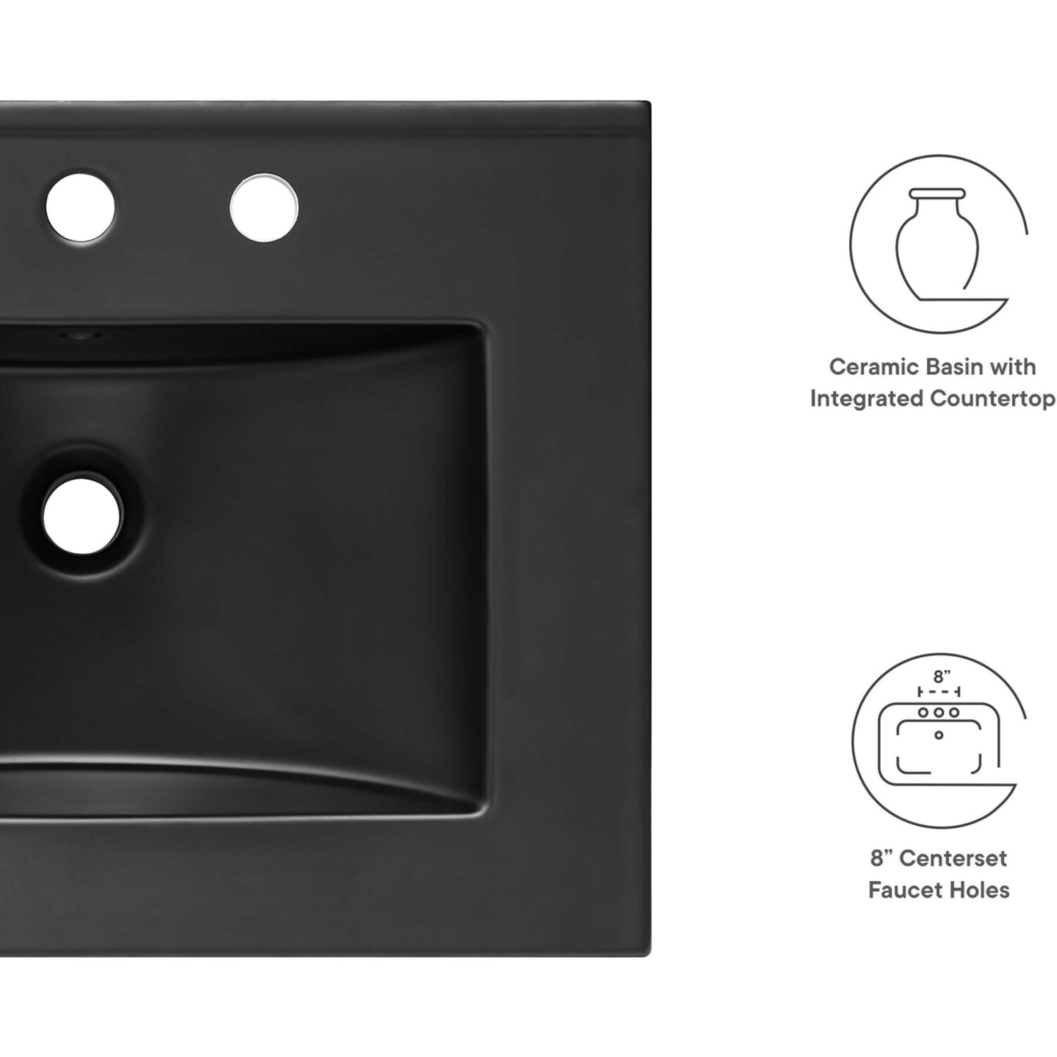 Wash, rinse, and brush in modern style with the Cayman 24" Sink. This ceramic sink boasts 8-inch centerset faucet holes, a narrow integrated countertop, and a rectangular basin design, all coming together to create a modern and sophisticated look for your bathroom space. Elevate your daily routine with this contemporary sink that combines functionality and aesthetic appeal flawlessly.Modern 24" Bathroom Sink