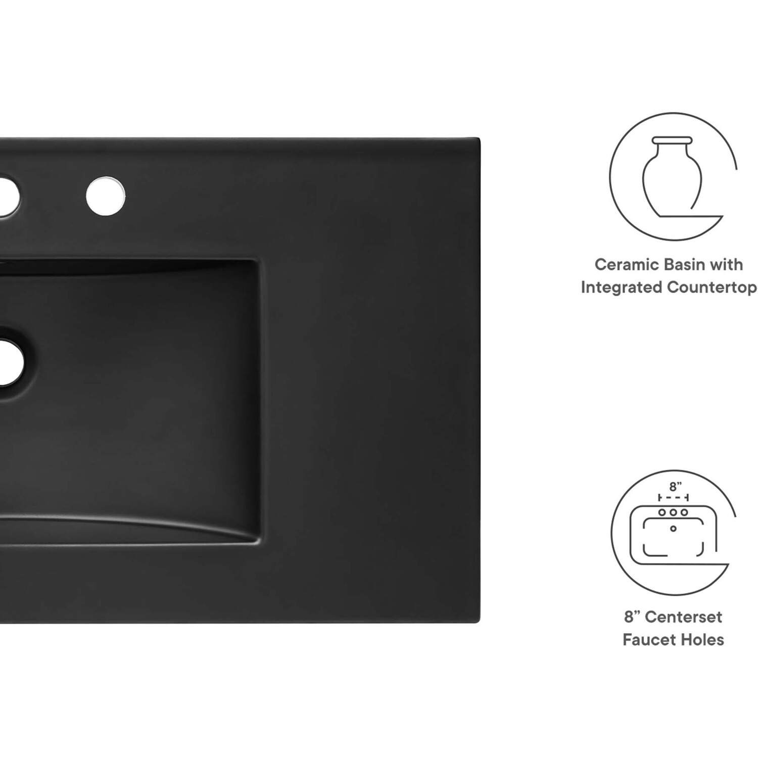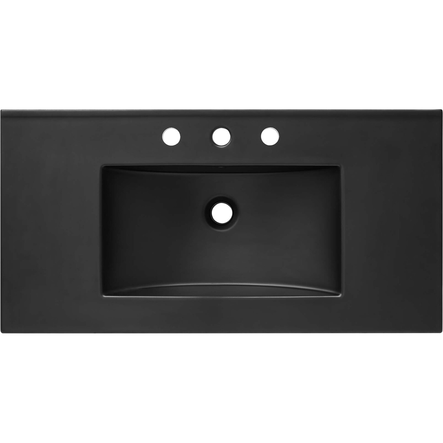 Wash, rinse, and brush in modern style with the Cayman 36" Sink. This ceramic sink boasts 8-inch centerset faucet holes, an integrated countertop, and a rectangular basin design, all coming together to create a modern and sophisticated look for your bathroom space. Elevate your daily routine with this contemporary sink that combines functionality and aesthetic appeal flawlessly.Modern 36" Bathroom Sink