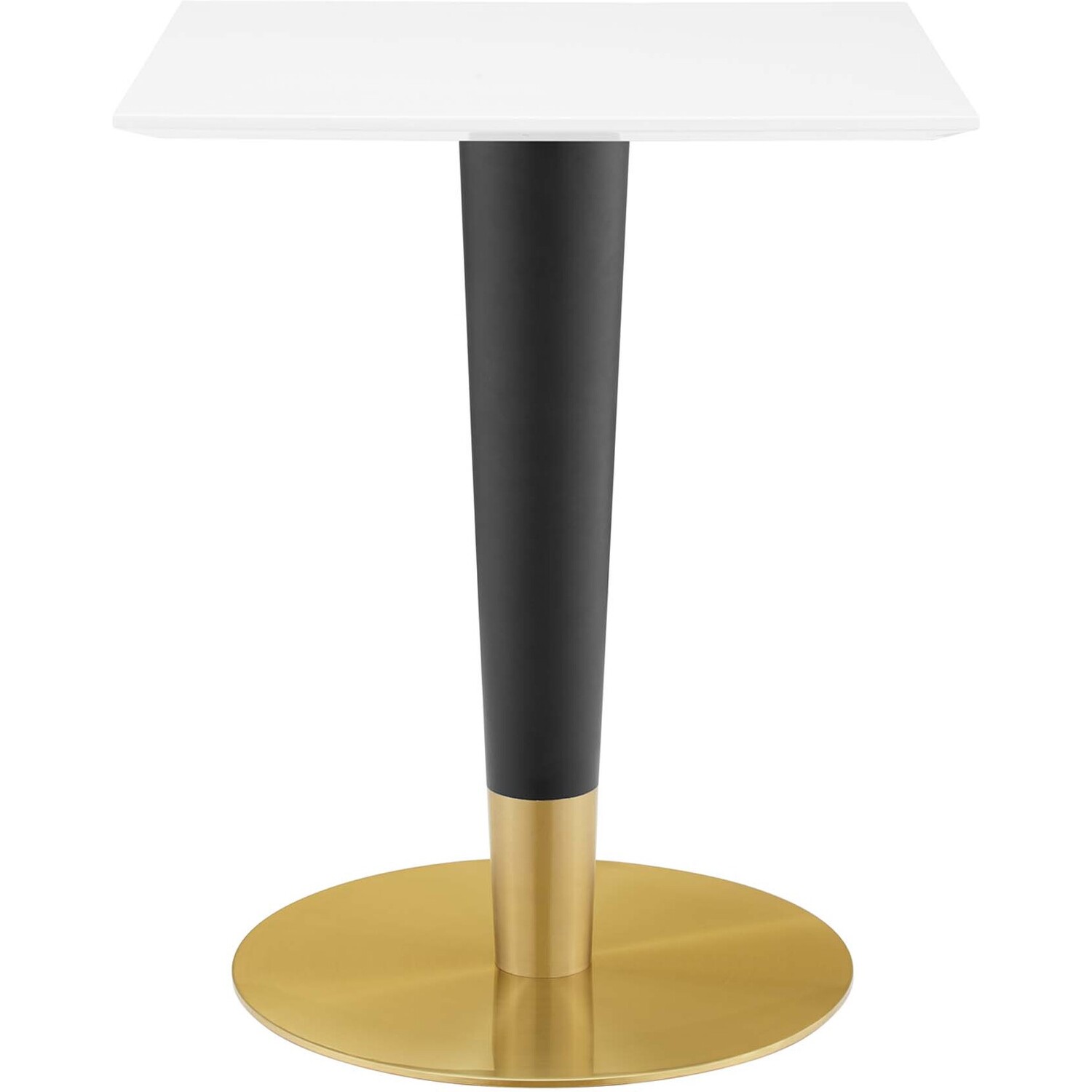Gather family and friends for good food and conversation around the Zinque Dining Table. Bringing modern influence and mid-century inspiration to your dining space, this pedestal table reflects an organic shape. Perfect for entertaining or everyday dining, this dining table rests on a black and polished gold tapered base and features a square 24" tabletop crafted with MDF and an easy-to-clean white coating. Non-marking ring to protect flooring. Assembly required.Modern Dining Table