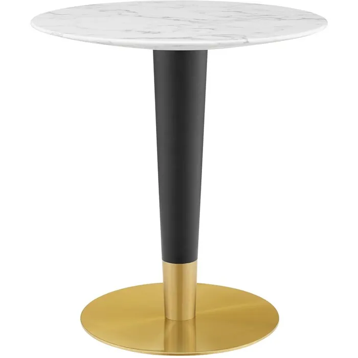 Gather family and friends for good food and conversation around the Zinque Dining Table. Bringing modern influence and mid-century inspiration to your dining space, this pedestal table reflects an organic shape. Perfect for entertaining or everyday dining, this dining table rests on a black and polished gold tapered base and features a 28" artificial marble tabletop with an easy-to-clean coating. Non-marking ring to protect flooring. Assembly required.Modern Dining Table