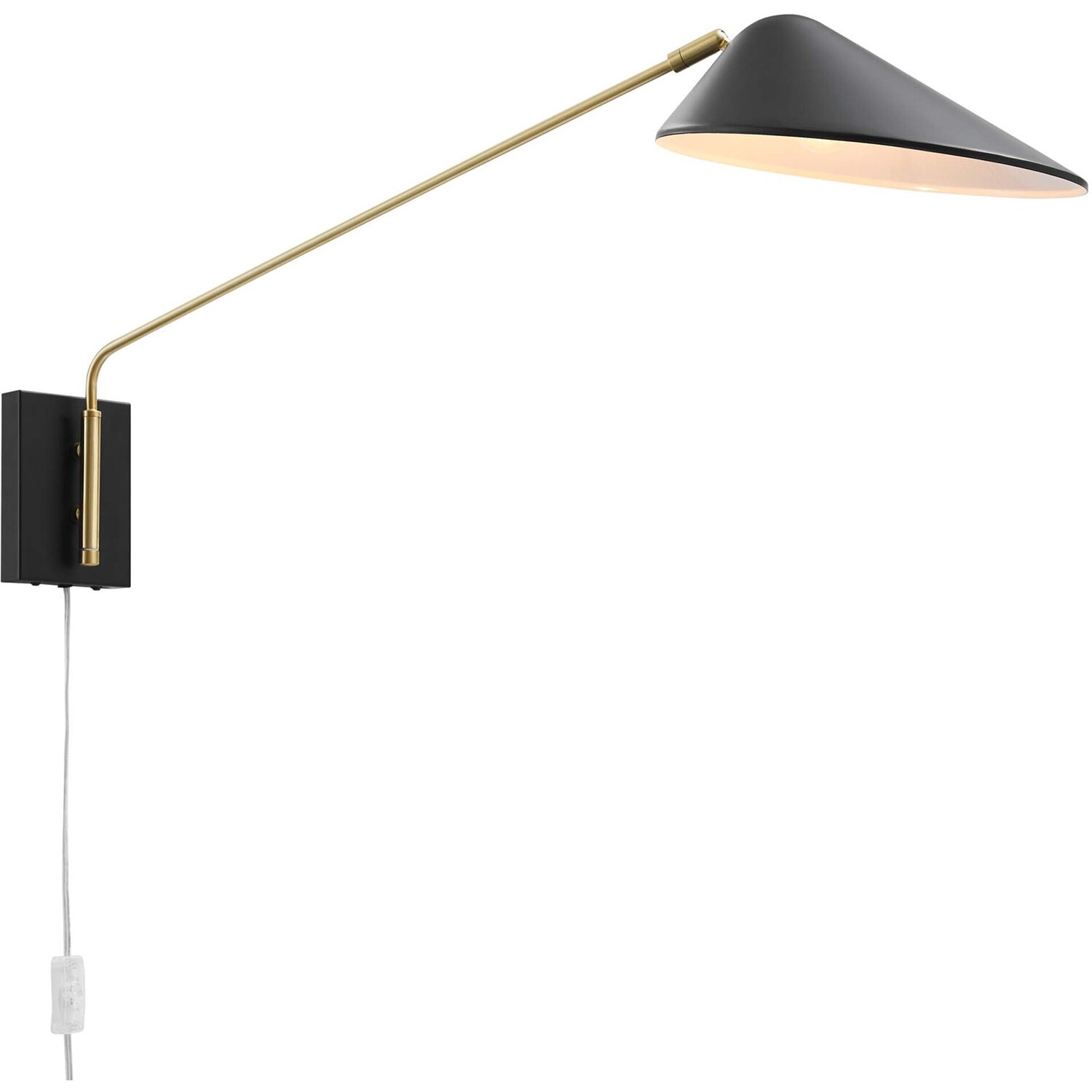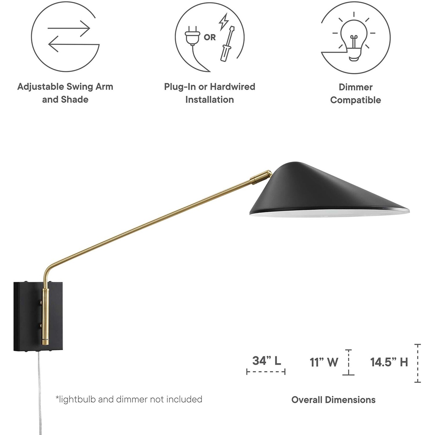 Experience visual comfort and pleasant reflections in your living room, bedroom, or hallway with the Journey 24" Swing Arm Plug-In or Hardwire Wall Sconce. This mid-century modern wall lamp features a compact powder-coated metal backplate and a sleek matte shade anchored on a satin brass rod. With a left-right adjustable swing arm and a complete swivel lampshade, the Journey 24" Swing Arm Wall Sconce is a multi-directional luminary. Journey features an innovative 2-in-1 design allowing you to plug your wall sconce anywhere in your home or create a sleek cordless look with the hardwire option, professional installation required. Clear power cord with an On/Off switch. Requires 1 E26 bulb, 40W max, or LED equivalent (not included). Compatible with dimmer switches (not included).Swing Arm Wall Sconce