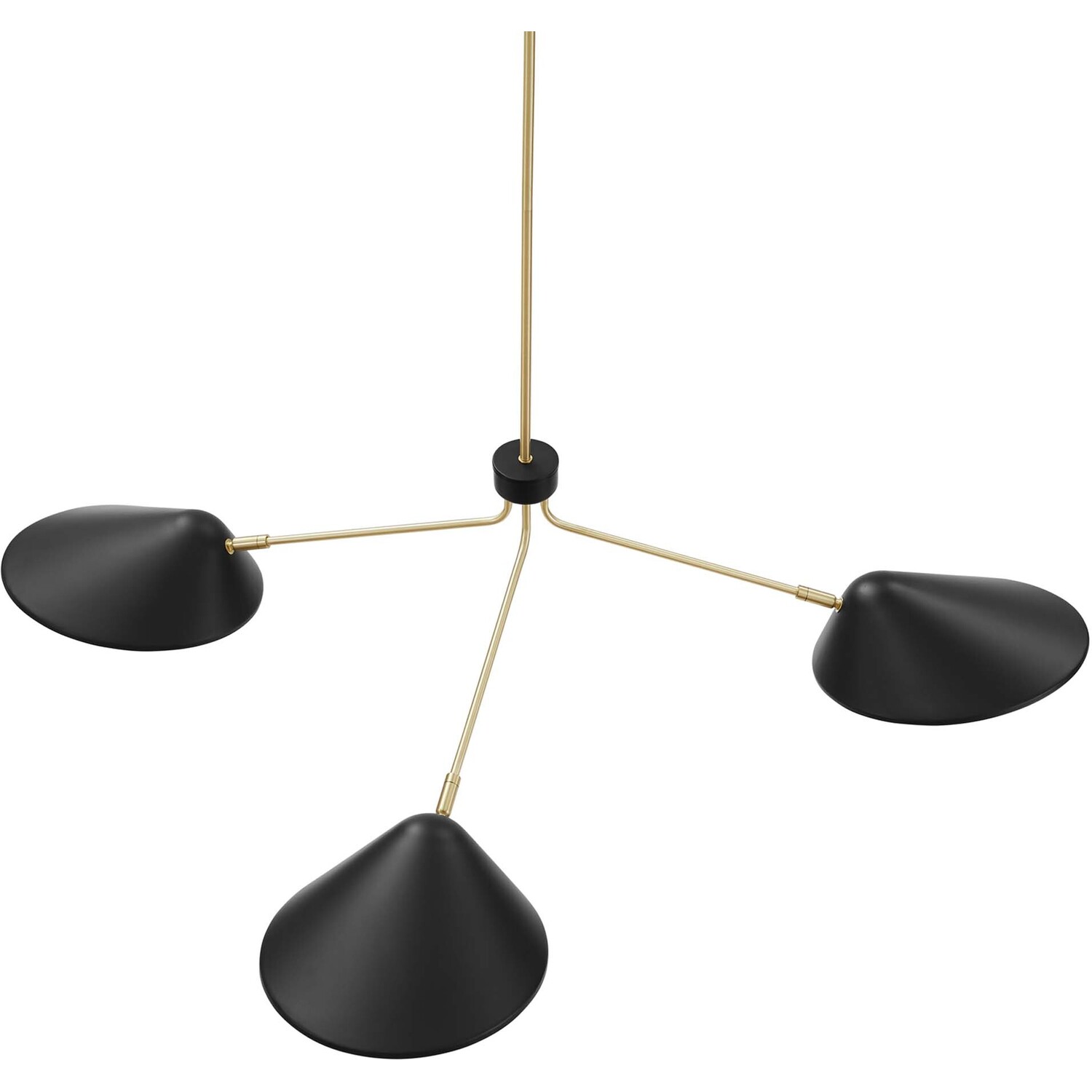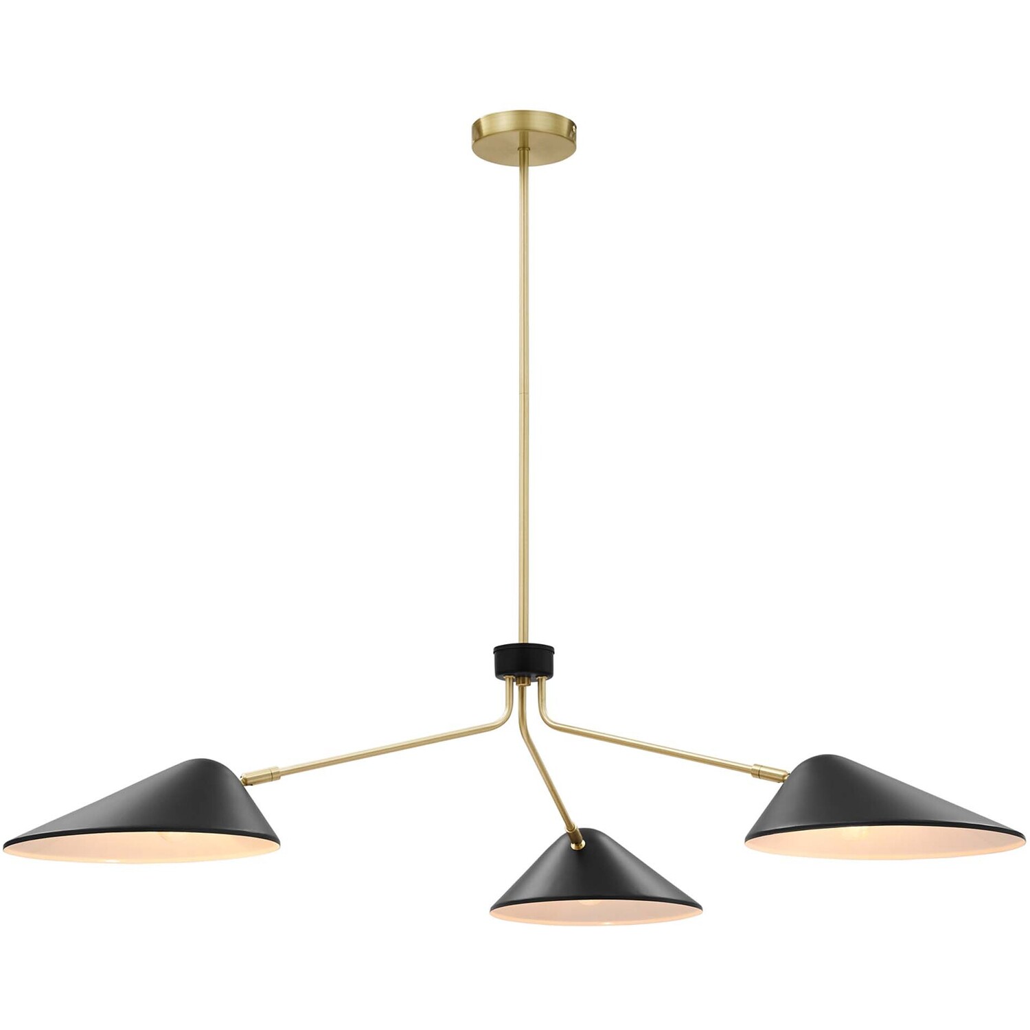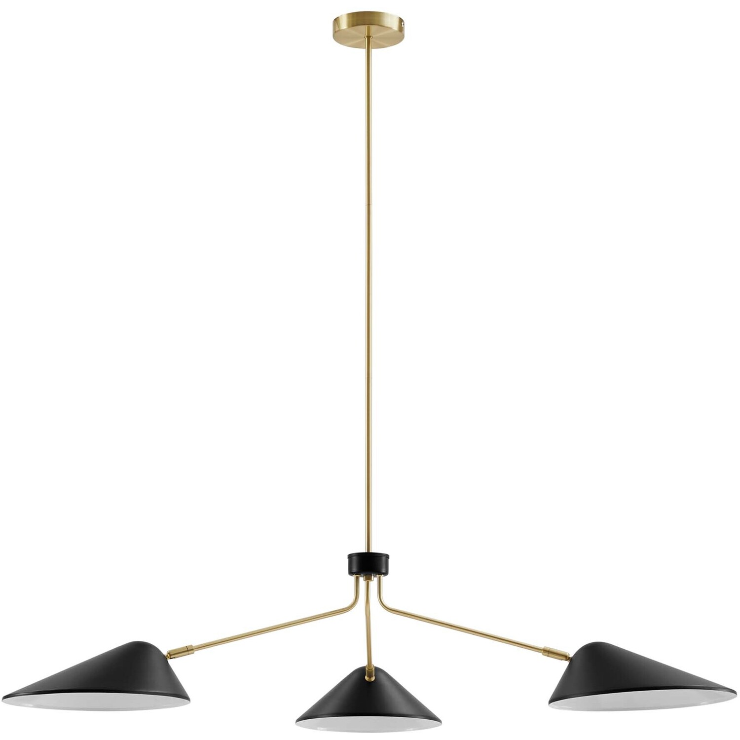 The design integrity of the Journey 3-Light 14" Arm Pendant assures artful and functional illumination in your dining room, living room, or bedroom. Create kitchen task lighting with the sleek swing-arm powder-coated metal shades. This streamlined triple-light pendant compliments a variety of decors, from mid-century modern to minimalist contemporary. A satin brass ceiling canopy and height-adjustable hanging rods enhance the radiating essence of this elegant pendant light fixture. The Journey Pendant Light is compatible with dimmer switches (not included). Requires 3 E26 bulbs, 40W max or LED equivalent (not included). Professional installation required.3-Light Pendant