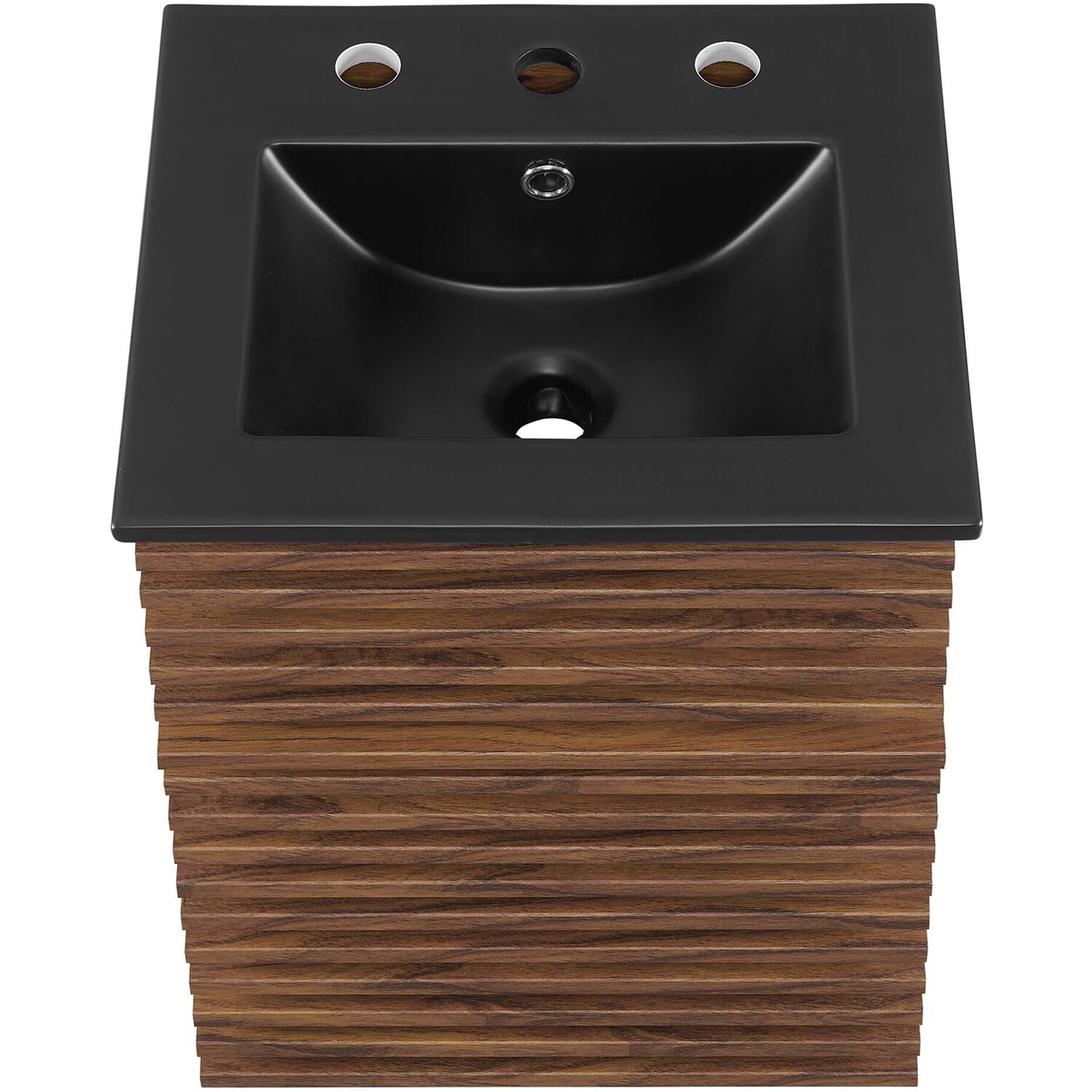 Tap into mid-century aesthetics with the Render Vanity. The Render 18" Bathroom Vanity features a durable MDF and particleboard frame with smooth walnut grain laminate, ample storage space in a full-extension drawer, and space-saving wall-mount design. Crafted with ceramic, a single sink with an integrated countertop, 8" centerset faucet holes, and rectangular sink basin continues the sleek look of this retro modern vanity. Clean lines and crisp design align for an edgy style designed to meet your needs. Boasting a mid-century modern style this vanity features a solid construction with a pleasing look and practical functionality. Assembly required and fixtures not included.Mid-Century Modern Vanity