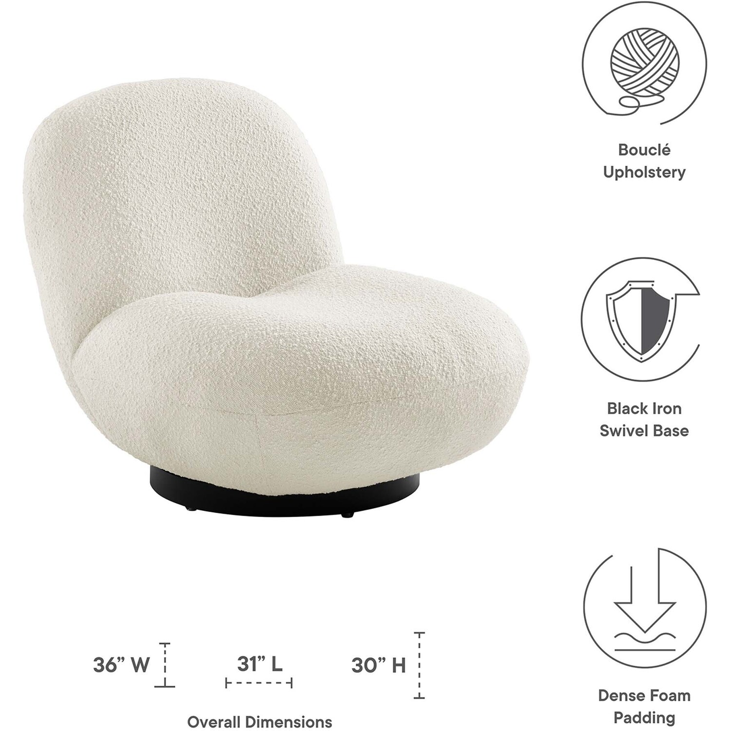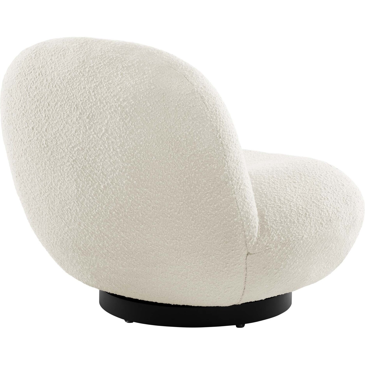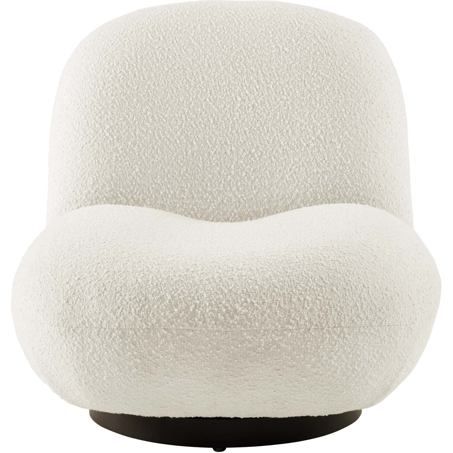 Invite on-trend style to your living space with the organic curves and nubby texture of the Kindred Boucle Upholstered Swivel Chair. Covered in a beautiful boucle fabric made with looped yarn, this swivel chair brings appreciated interest to a living room, office, bedroom, or lounge area. Dense foam padding and a webbed support system create a premium seating experience. Resting on a matte black iron swivel base, this accent chair effortlessly rotates to take in your surroundings. Weight Capacity: 331 lbs.Swivel Accent Chair