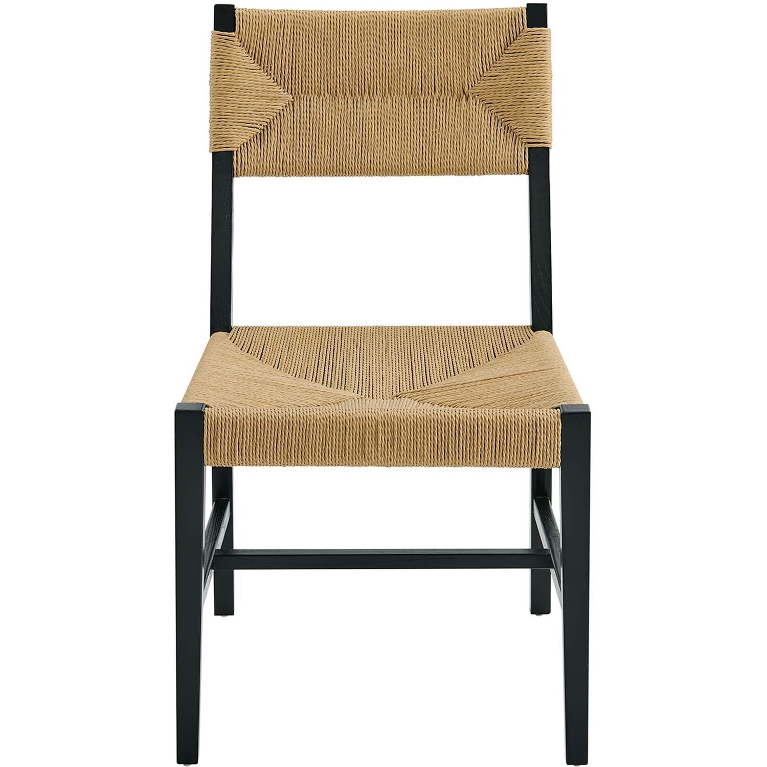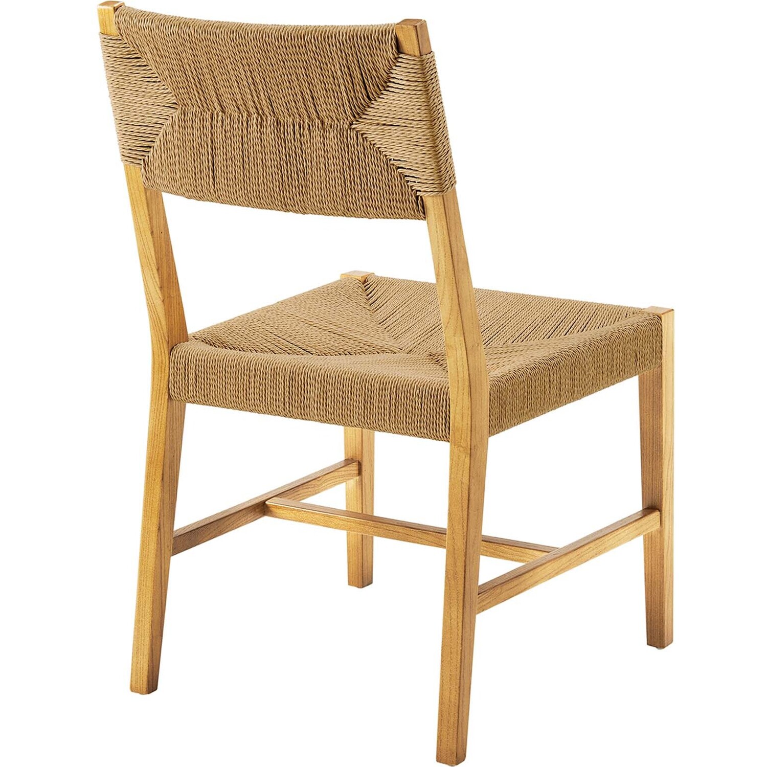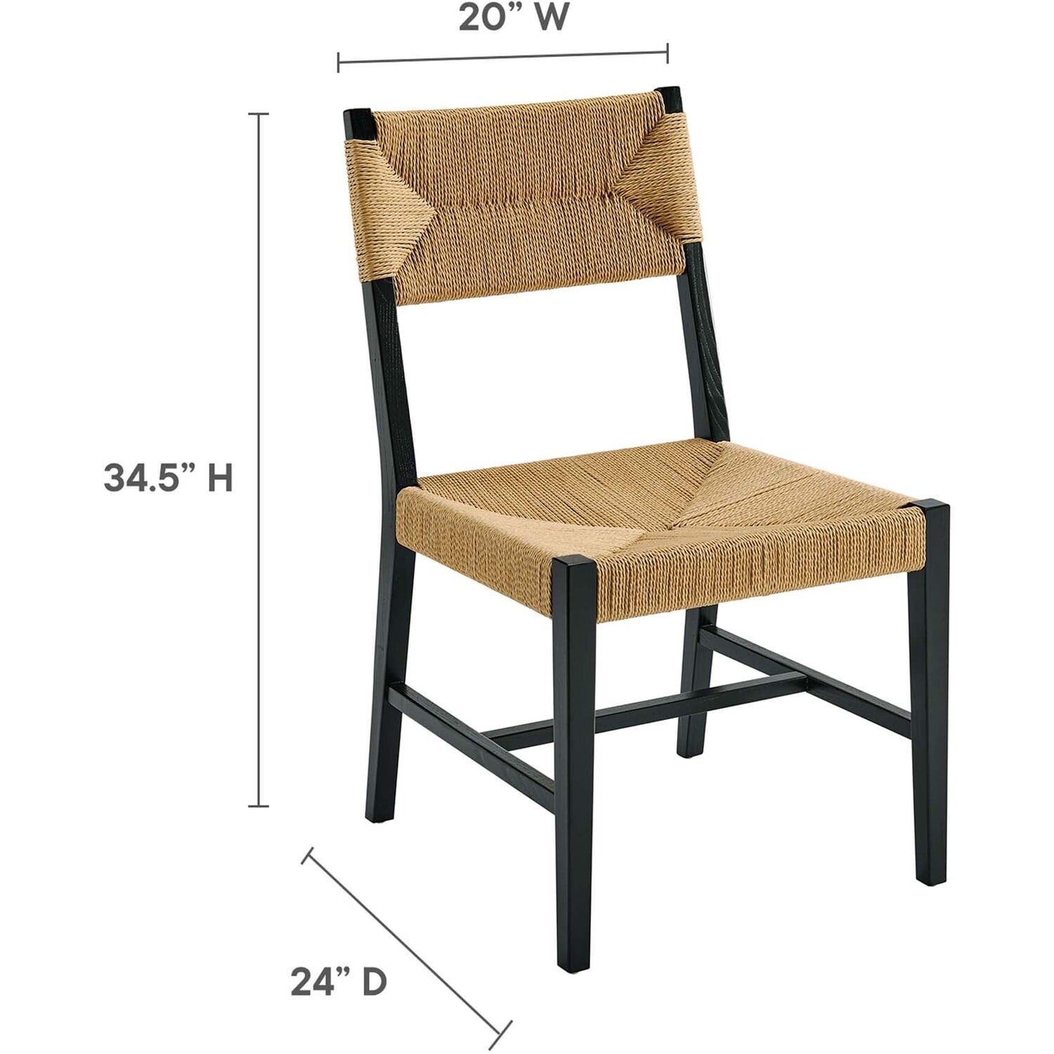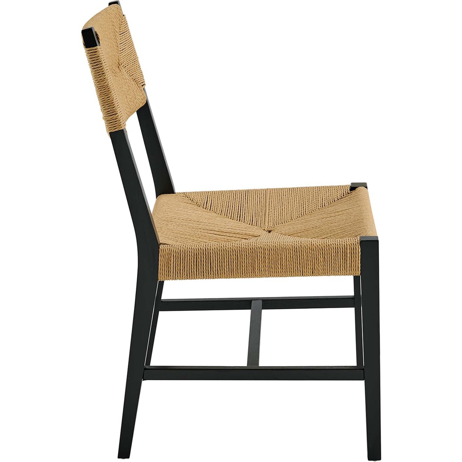 Introduce calm coastal style and modern farmhouse charm to your dining space with the Bodie Dining Side Chair. Featuring a woven paper rope backrest and seat, this dining chair brings alluring texture to a dining table or to the living room as an accent chair. This side chair is crafted with a durable elm wood frame with stretchers connecting the legs for added interest. Includes plastic foot glides to protect flooring. Weight Capacity: 330 lbs.Modern Farmhouse Dining Side Chair