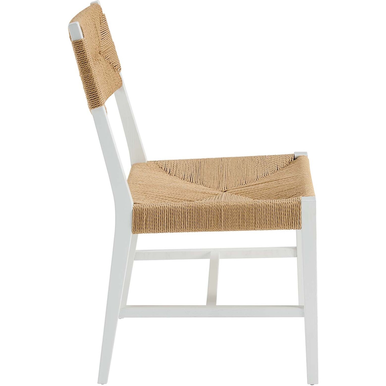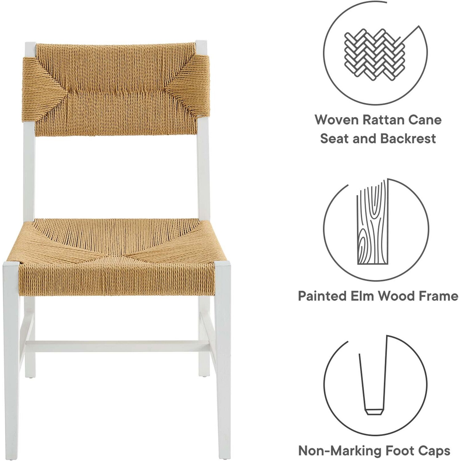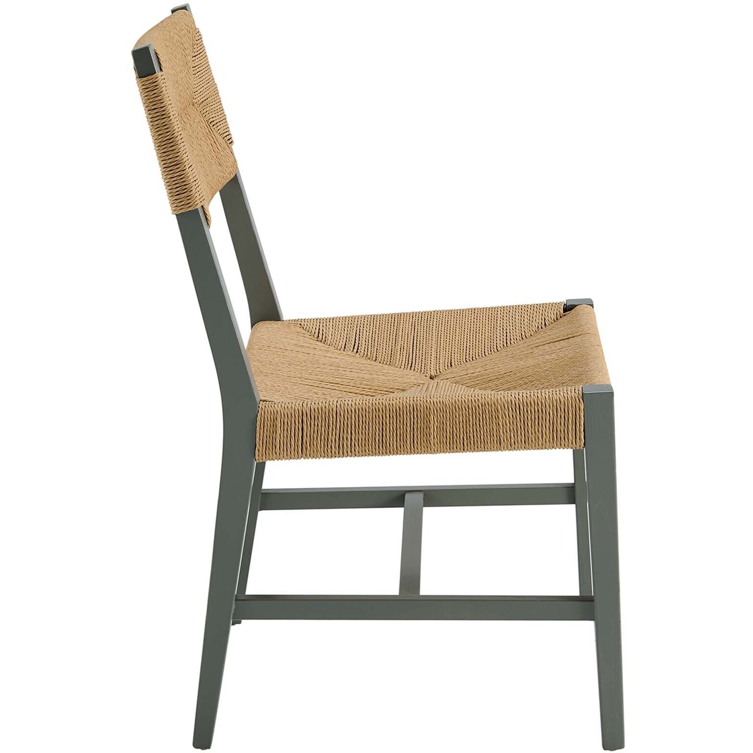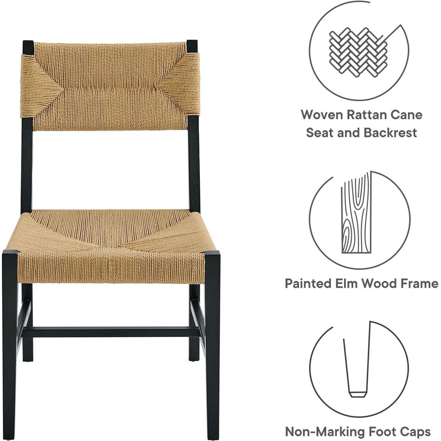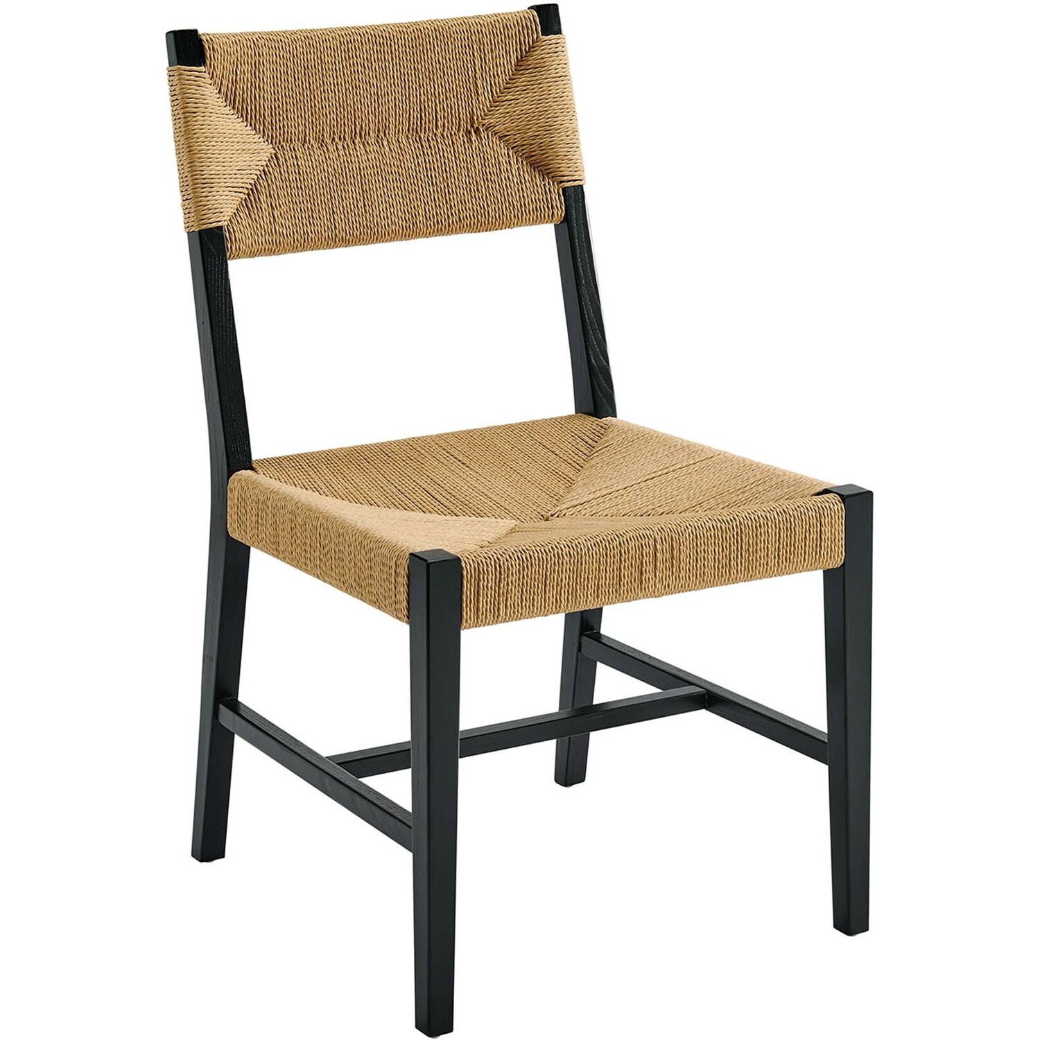 Introduce calm coastal style and modern farmhouse charm to your dining space with the Bodie Dining Side Chair. Featuring a woven paper rope backrest and seat, this dining chair brings alluring texture to a dining table or to the living room as an accent chair. This side chair is crafted with a durable elm wood frame with stretchers connecting the legs for added interest. Includes plastic foot glides to protect flooring. Weight Capacity: 330 lbs.Modern Farmhouse Dining Side Chair