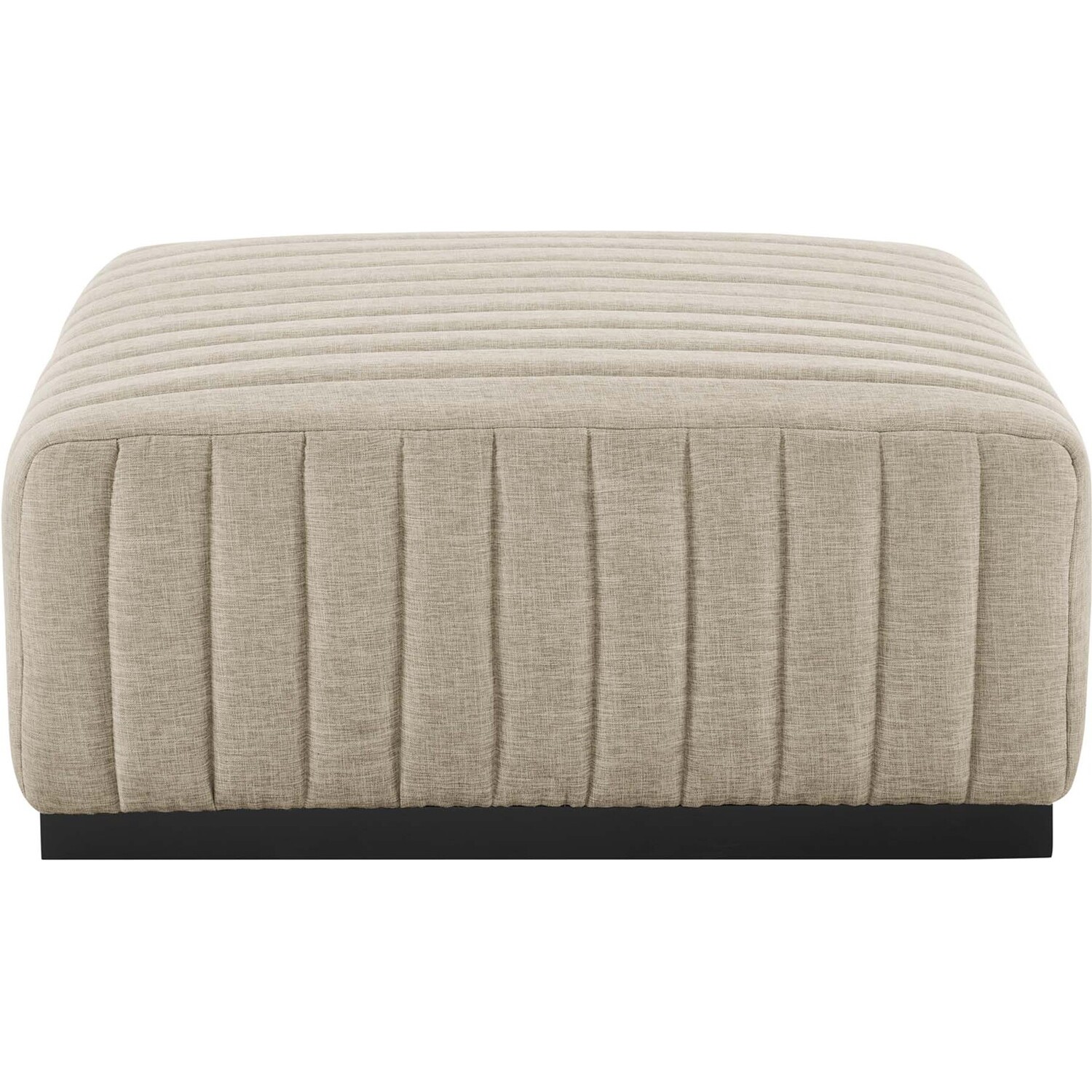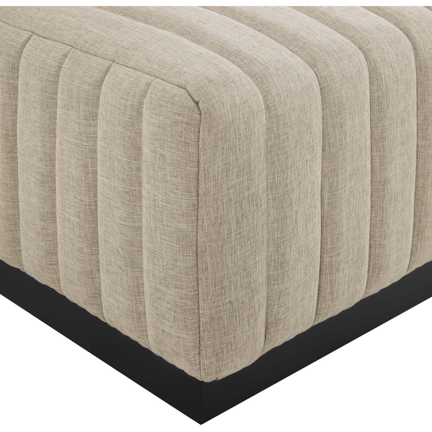 Modern appeal surrounds the Conjure Channel Tufted Upholstered Fabric Ottoman. Soft and durable fabric upholstery covers dense foam padding and an individually wrapped spring coil system for a supportive living room ottoman that will become the go-to lounge spot for family and friends. Vertical channel tufting and subtle French piping adds depth to this vintage inspired sectional piece that effortlessly becomes the focal point in your living room. Solidly constructed from wood and plywood, this ottoman features non-marking foot caps and boasts a matte black base. Versatile and elegant, this sectional sofa piece is ideally suited for a variety of decor styles in your living room, lounge, or home office. Weight Capacity: 331 lbs.Channel Tufting Details