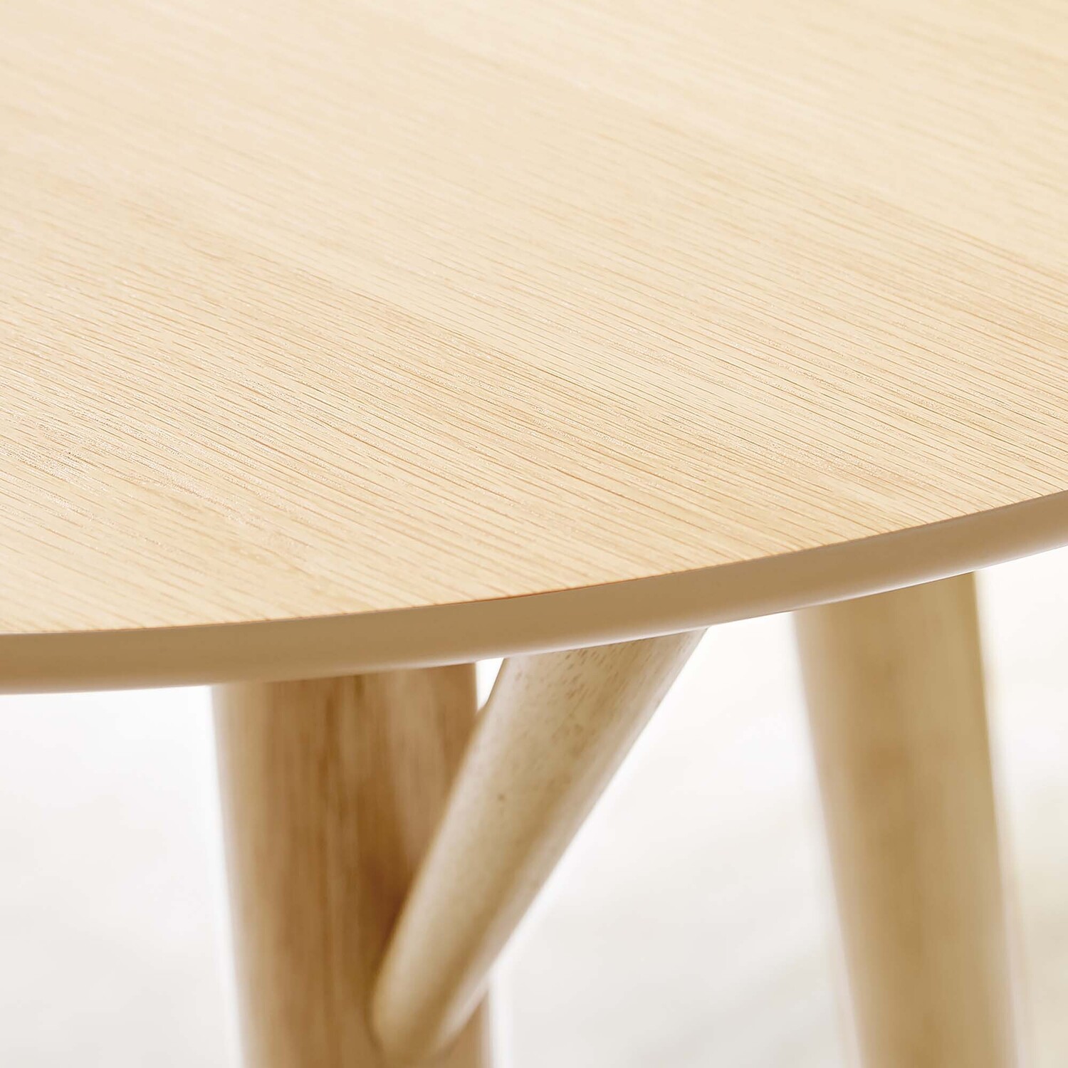 Enjoy dinner with friends or daily mealtime amidst geometric detail and modern style with the Gallant Dining Table. With a seamless organic shape, this round dining table rests atop splayed and tapered legs crafted from solid rubberwood with angular accents for added interest. This kitchen table is complete with a smooth, durable MDF tabletop that is easy to clean and maintain. A striking addition to the modern home, Gallant emboldens decor in the dining room or kitchen. Assembly required.Modern Dining Table